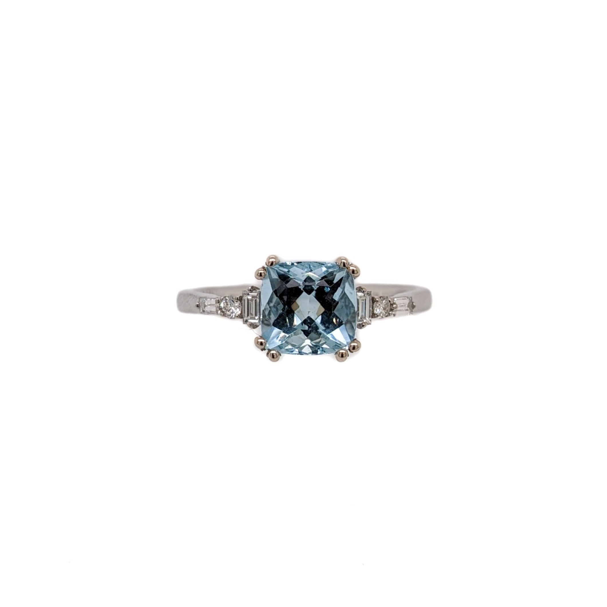 The mesmerizing color of aquamarine is attributed to the presence of iron traces within its crystal structure. The value of an aquamarine is dependent on it’s depth of color and clarity rather than it’s carat weight.