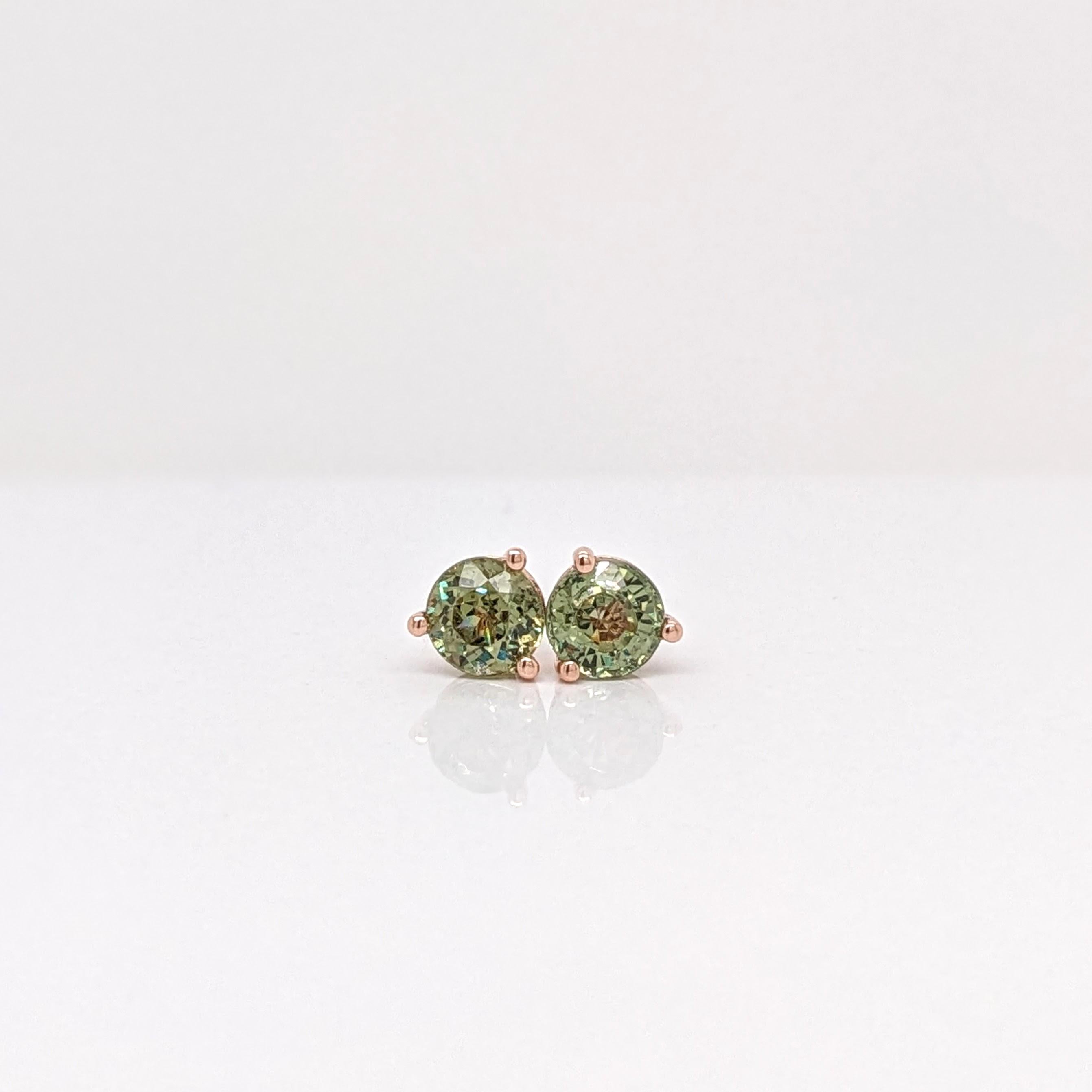Sunniva 14K Solid Gold Namibian Demantoid Martini Solitaire Studs - Round 4mm