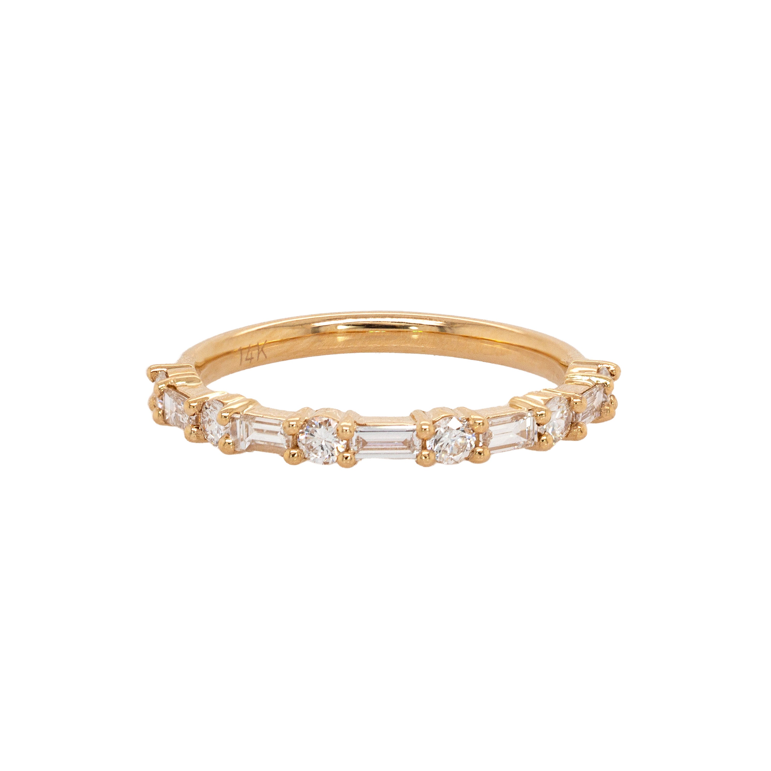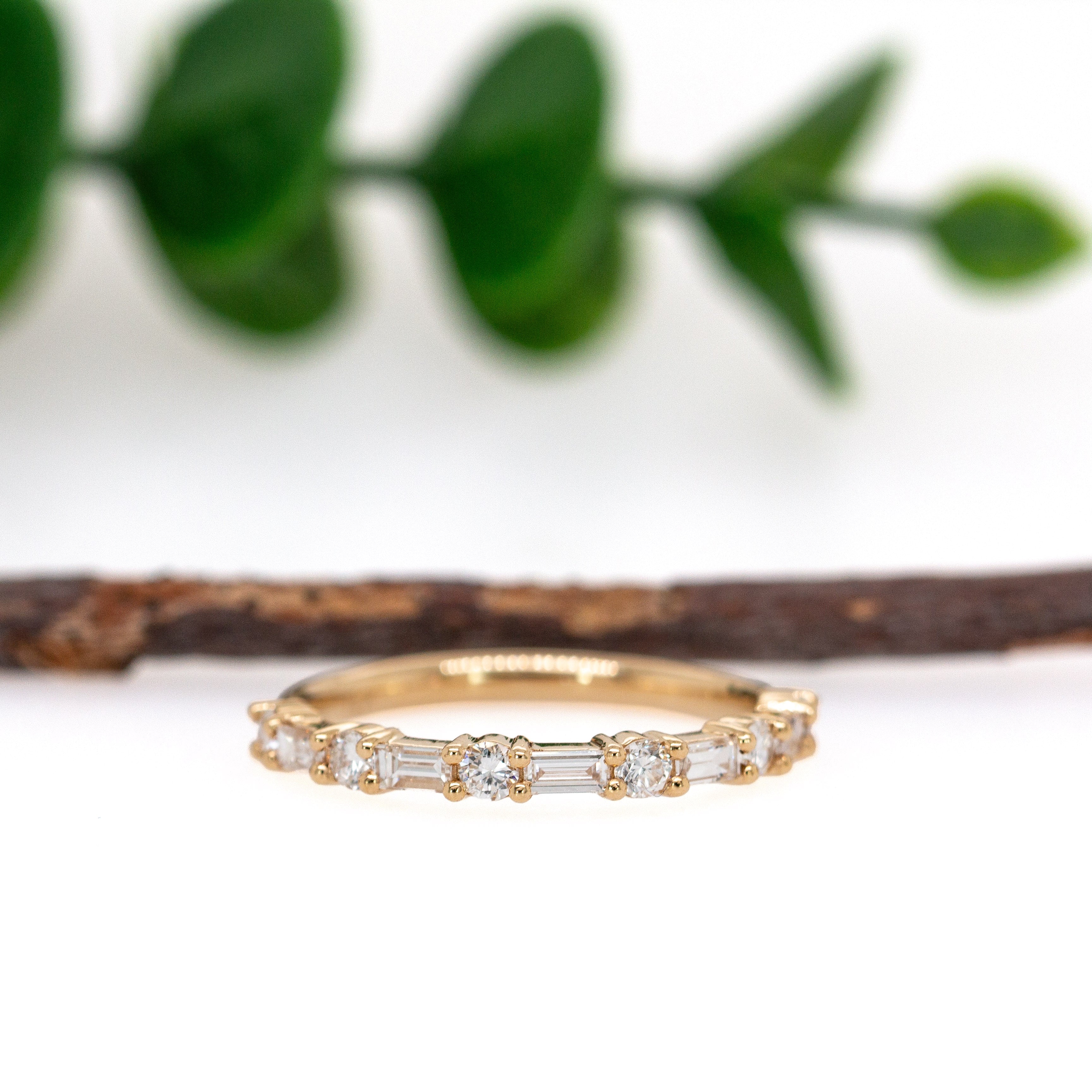 Baguette & Round Diamond Wedding Band 14k Solid Gold | Stackable | Nesting Band | Promise Band | April Birthstone | Art Deco Band | Custom