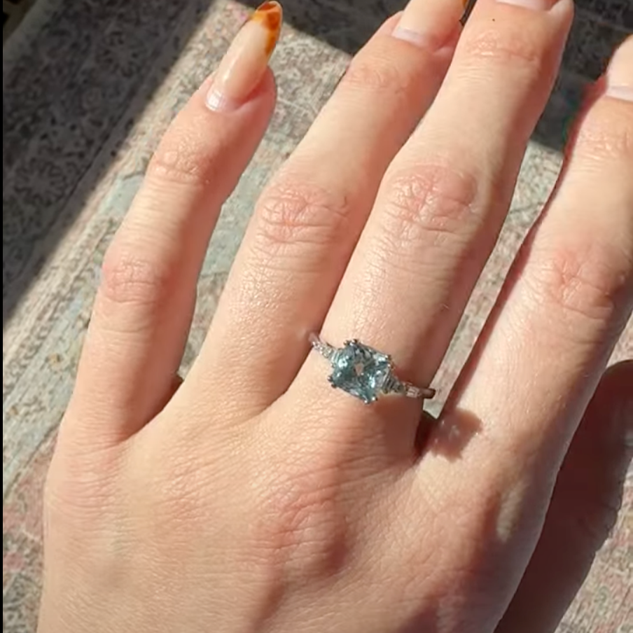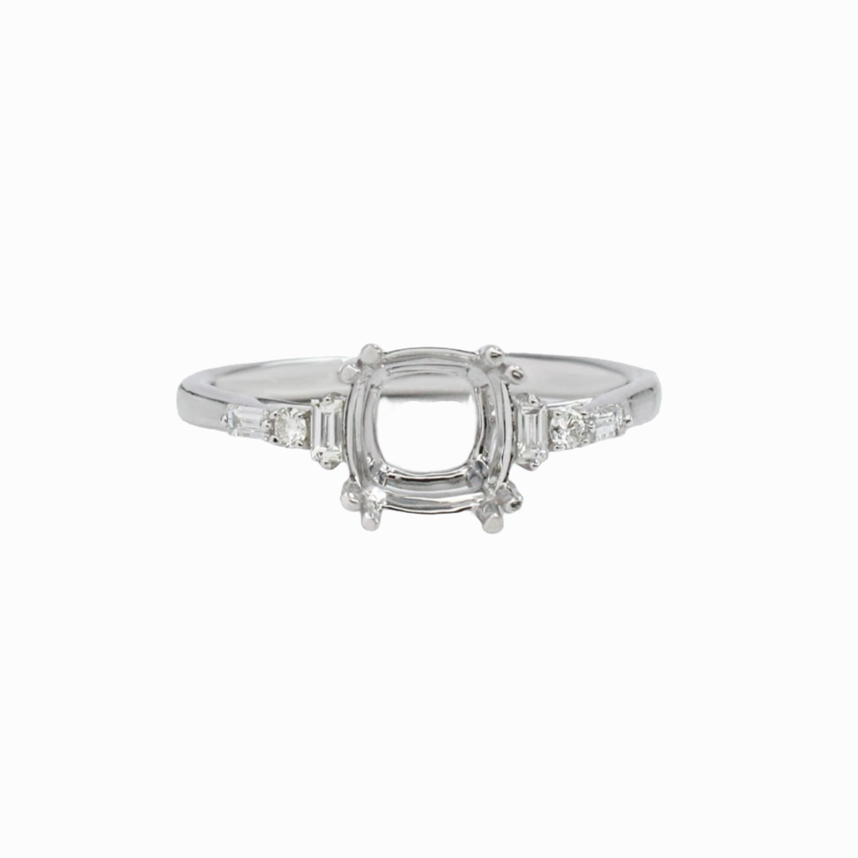 Cushion Ring Setting w Baguette & Round Diamond Accents in Solid 14K Gold