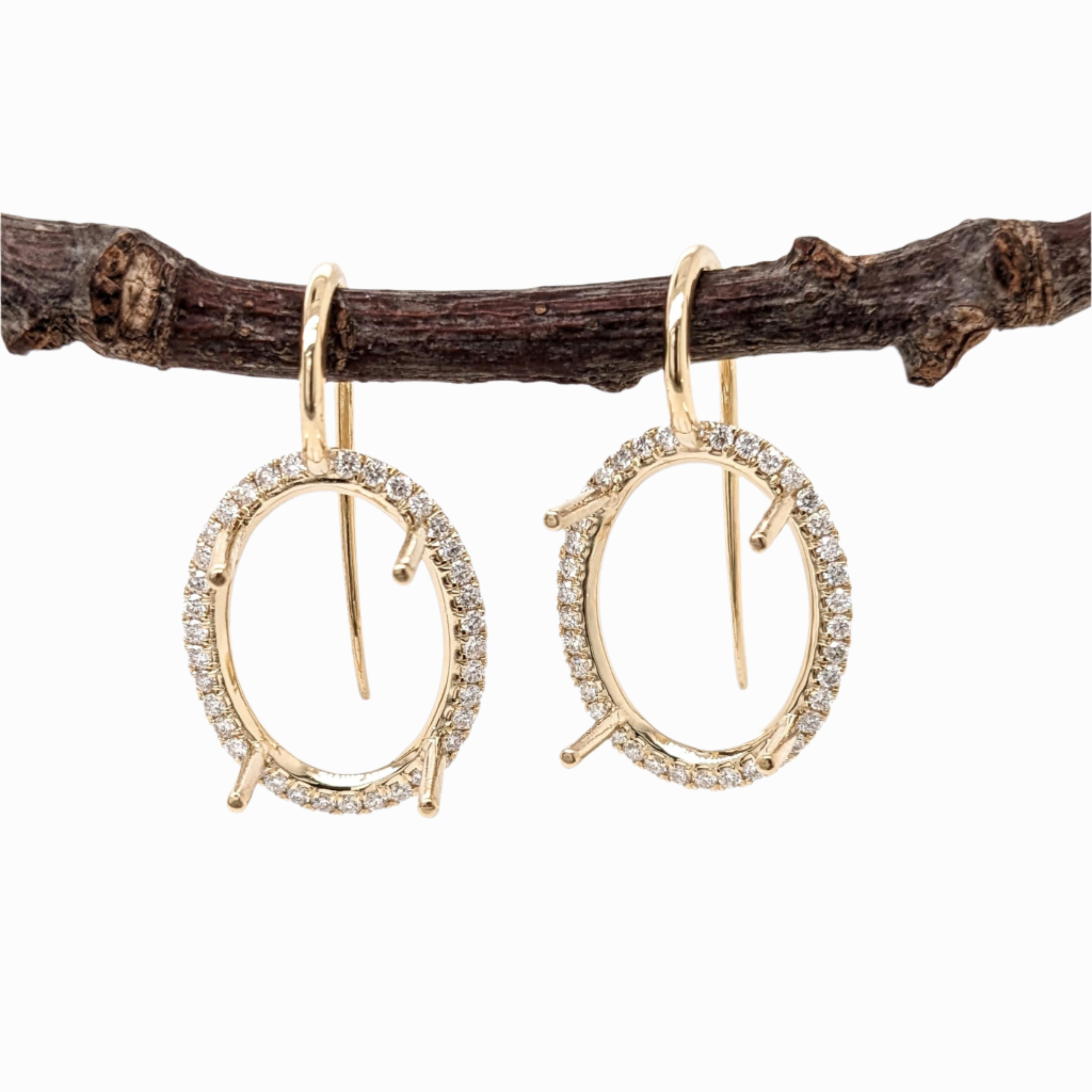 Angel Oval Shape Earrings Semi Mount w Diamond Halo