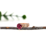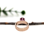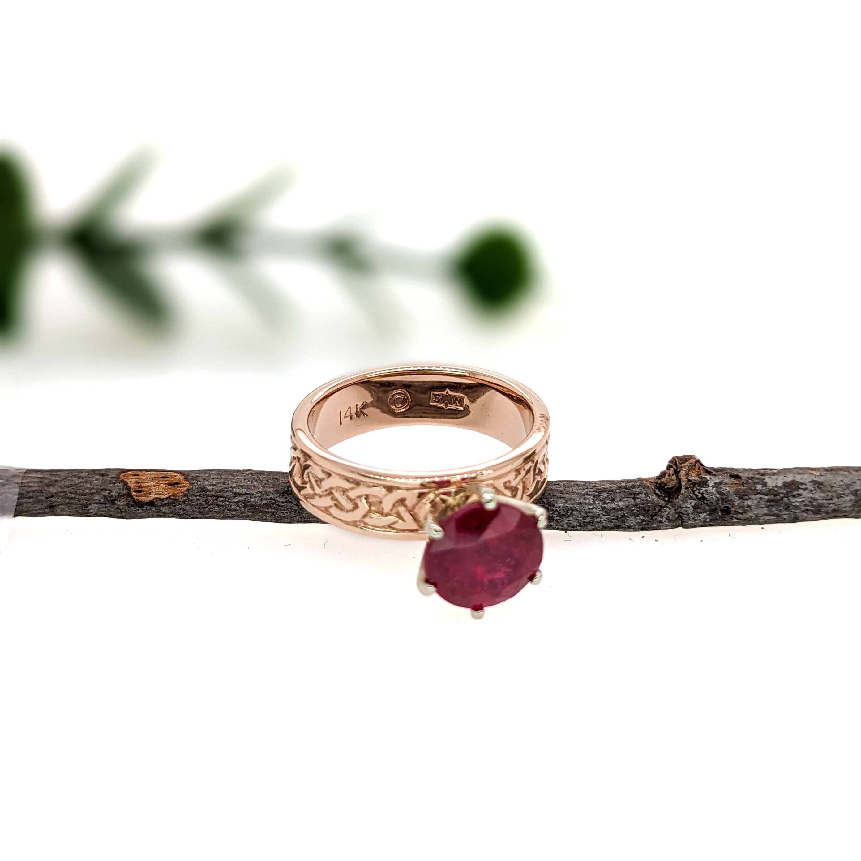Previously Loved Ruby Ring with Celtic Knot Band Etching in 14K Yellow Gold