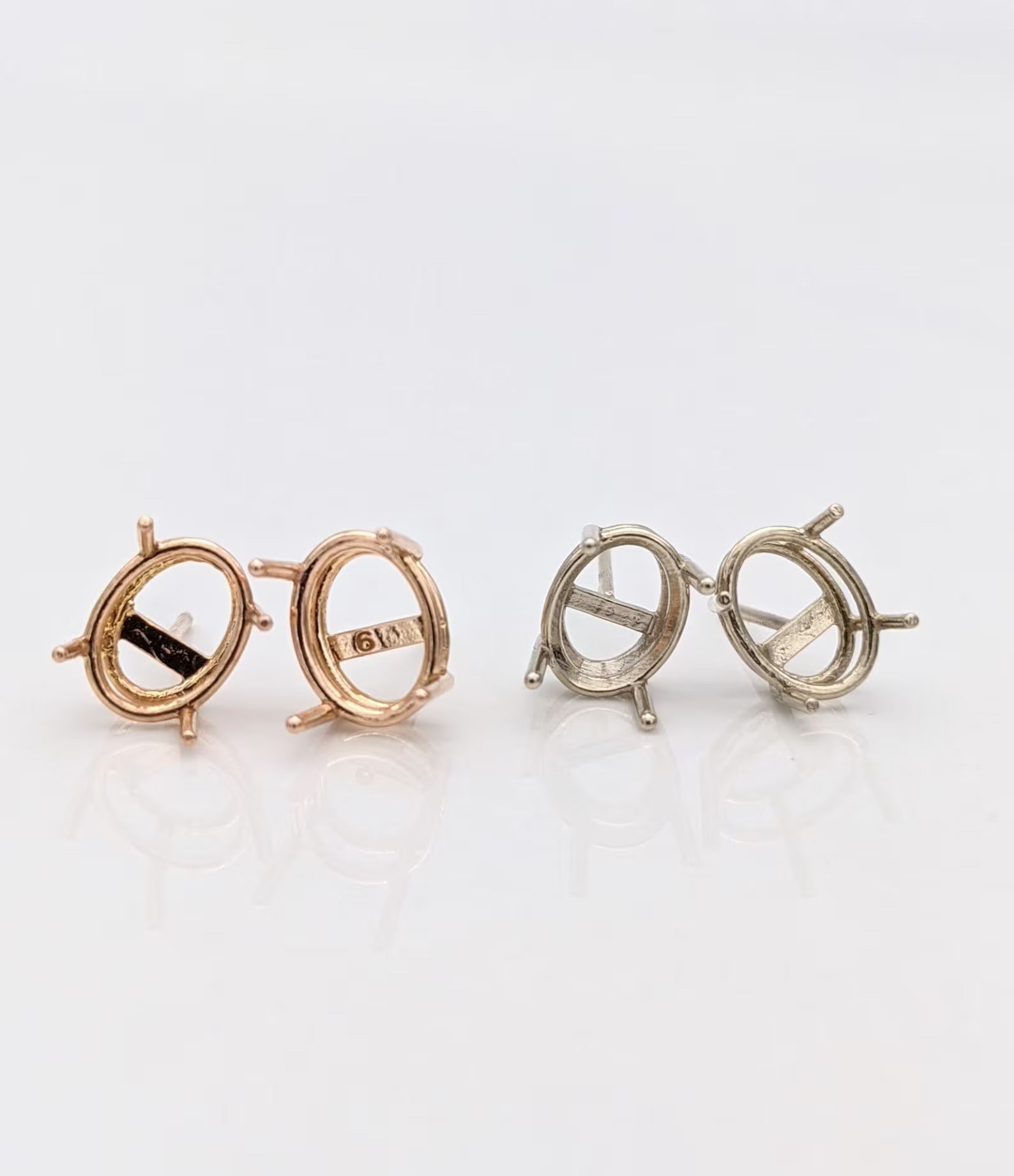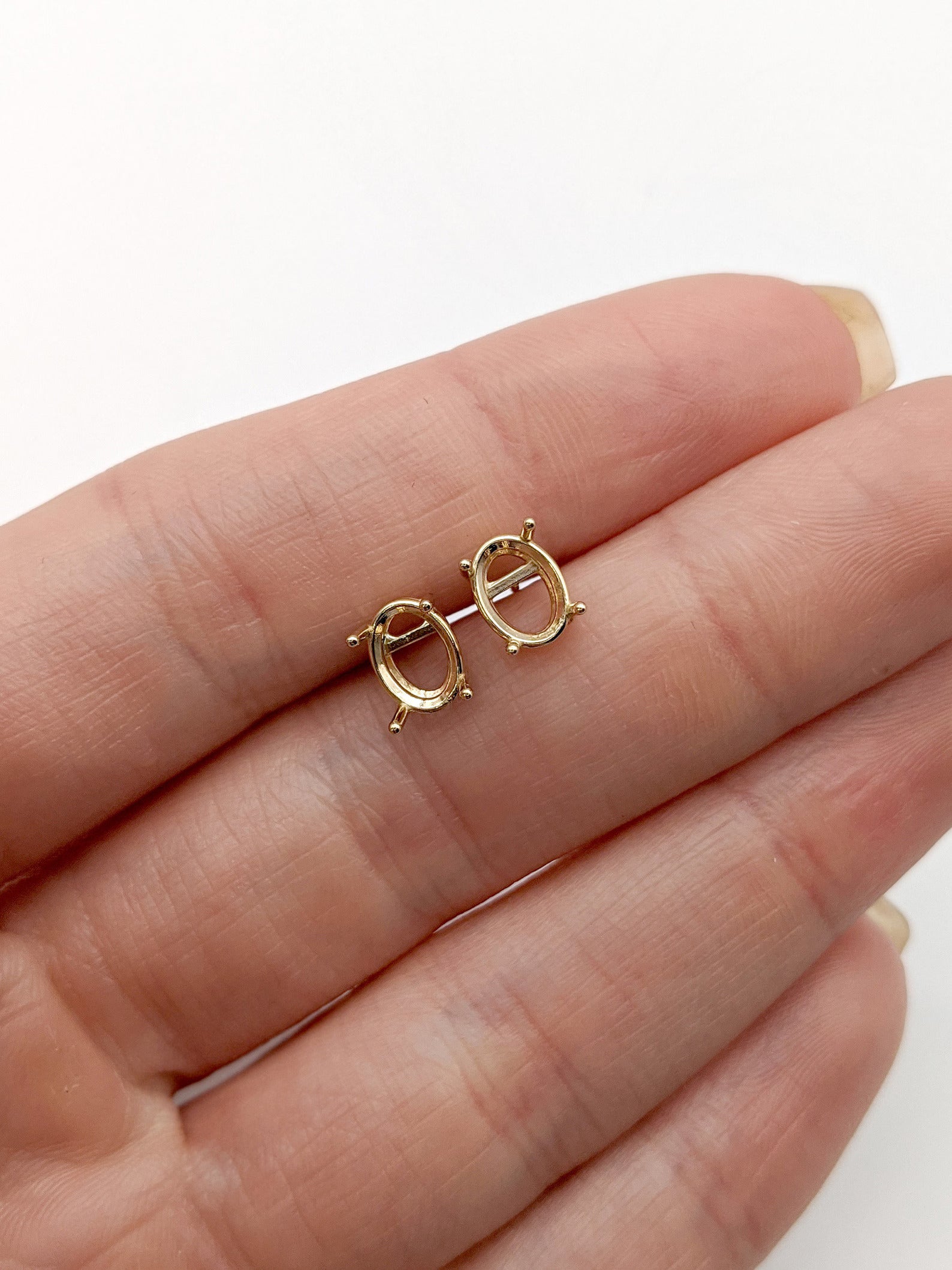These 14k Gold Oval Solitaire Stud Earring Findings offer a timeless and customizable base for your earrings. Crafted from premium 14k gold, available in yellow, white, and rose gold, these findings are designed to hold your chosen gemstone securely. The earrings come with both push-back and screw-back mounting options, ensuring that they stay in place comfortably. You can select the gemstone that best fits your style, or use your own stone to create a truly personalized piece. Available in various sizes, these findings are ideal for crafting elegant, custom stud earrings that will elevate any jewelry collection.