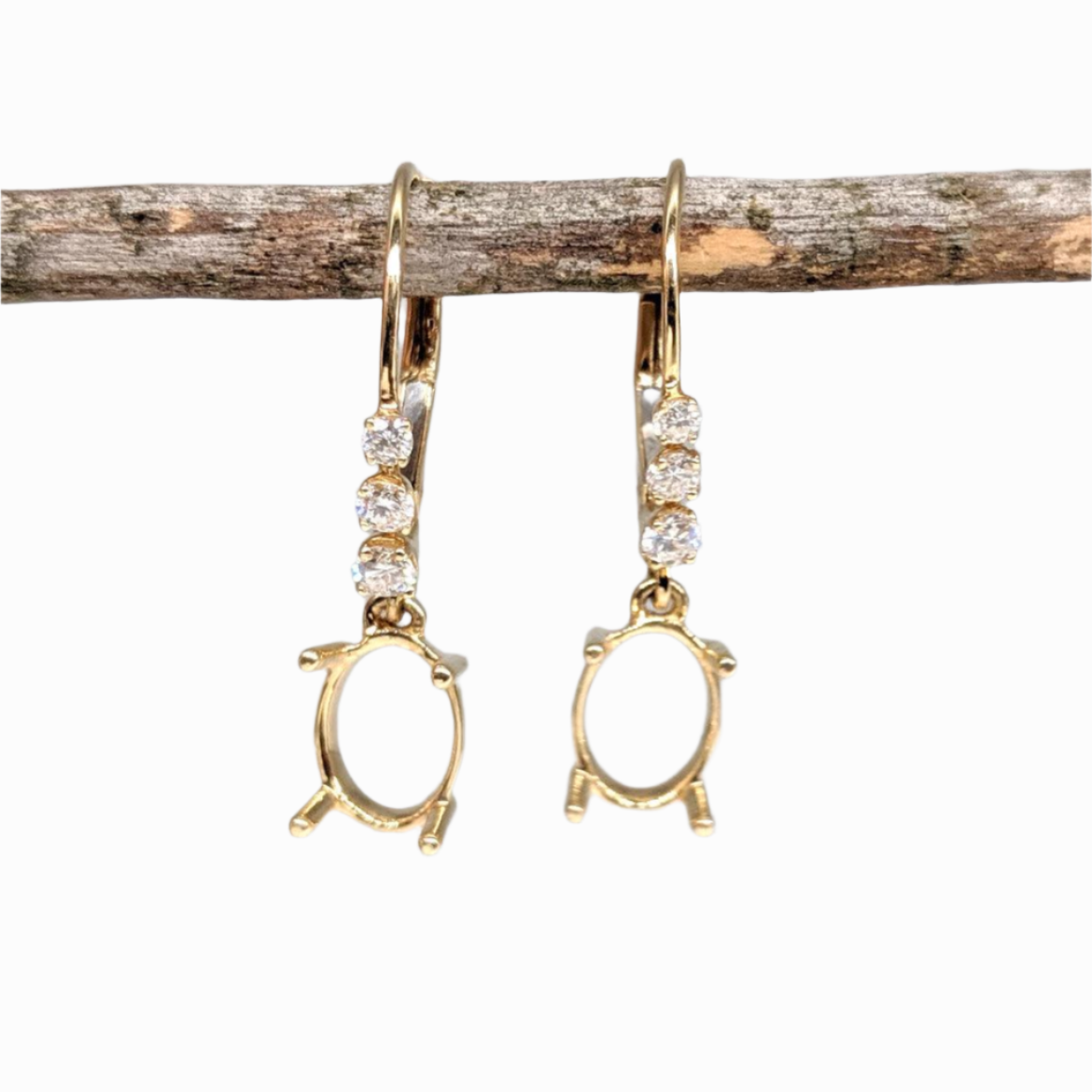 Lever Back Dangle Earring Setting W Natural Graduated Diamond Accents in 14K Solid Gold | Oval Shape