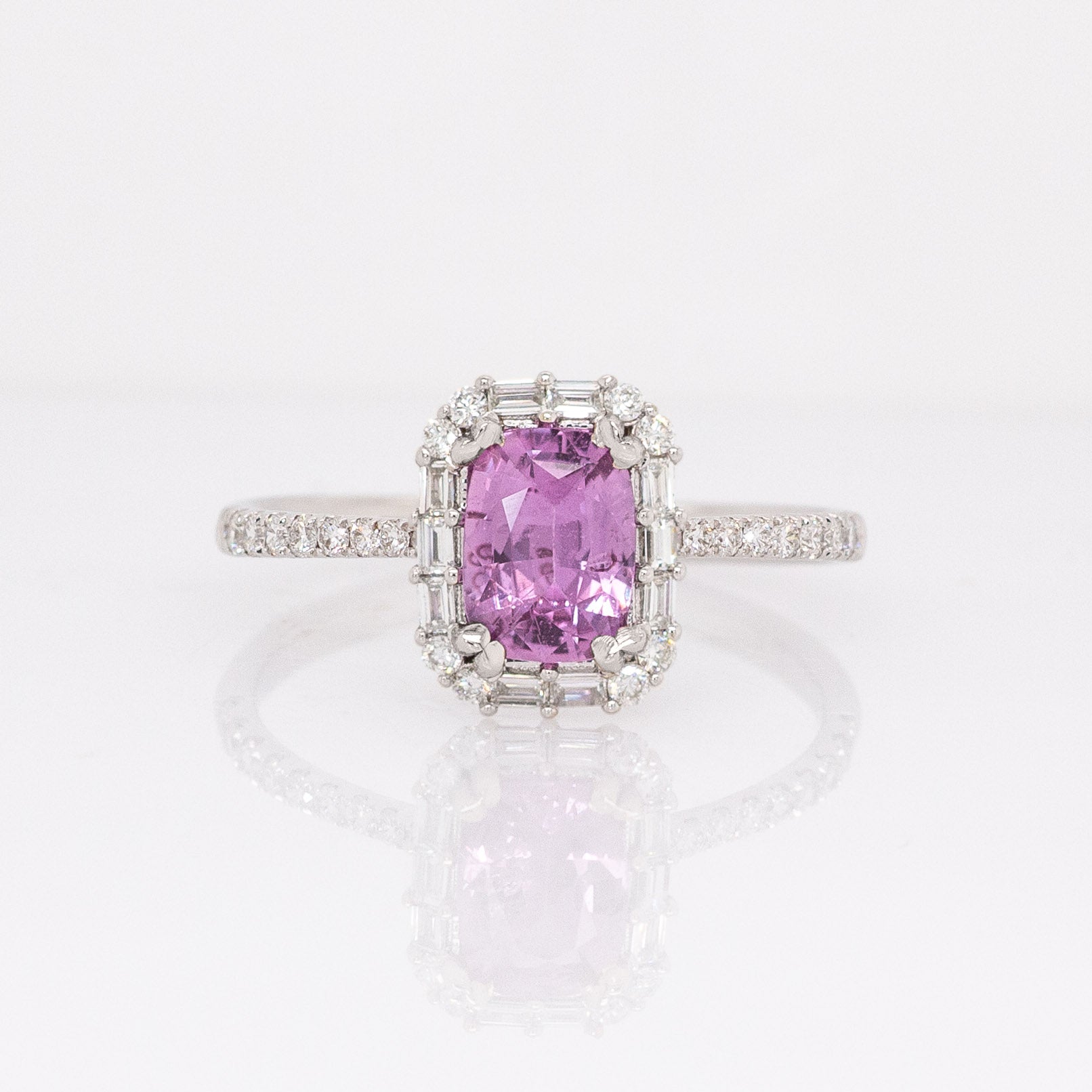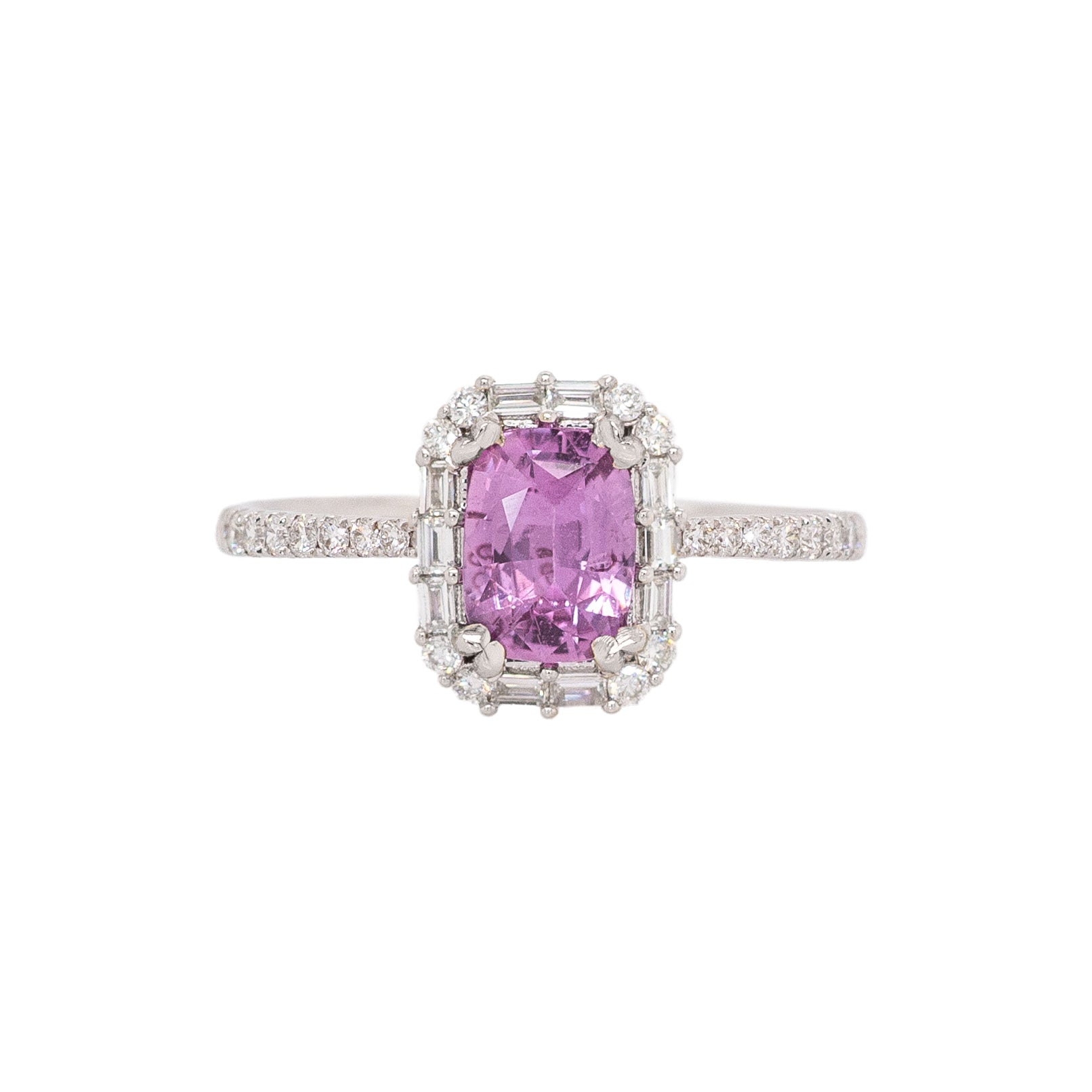 Rella Solid 14k White Gold Pink Sapphire Ring with Natural Diamond Accents | Emerald cut, 7x5mm