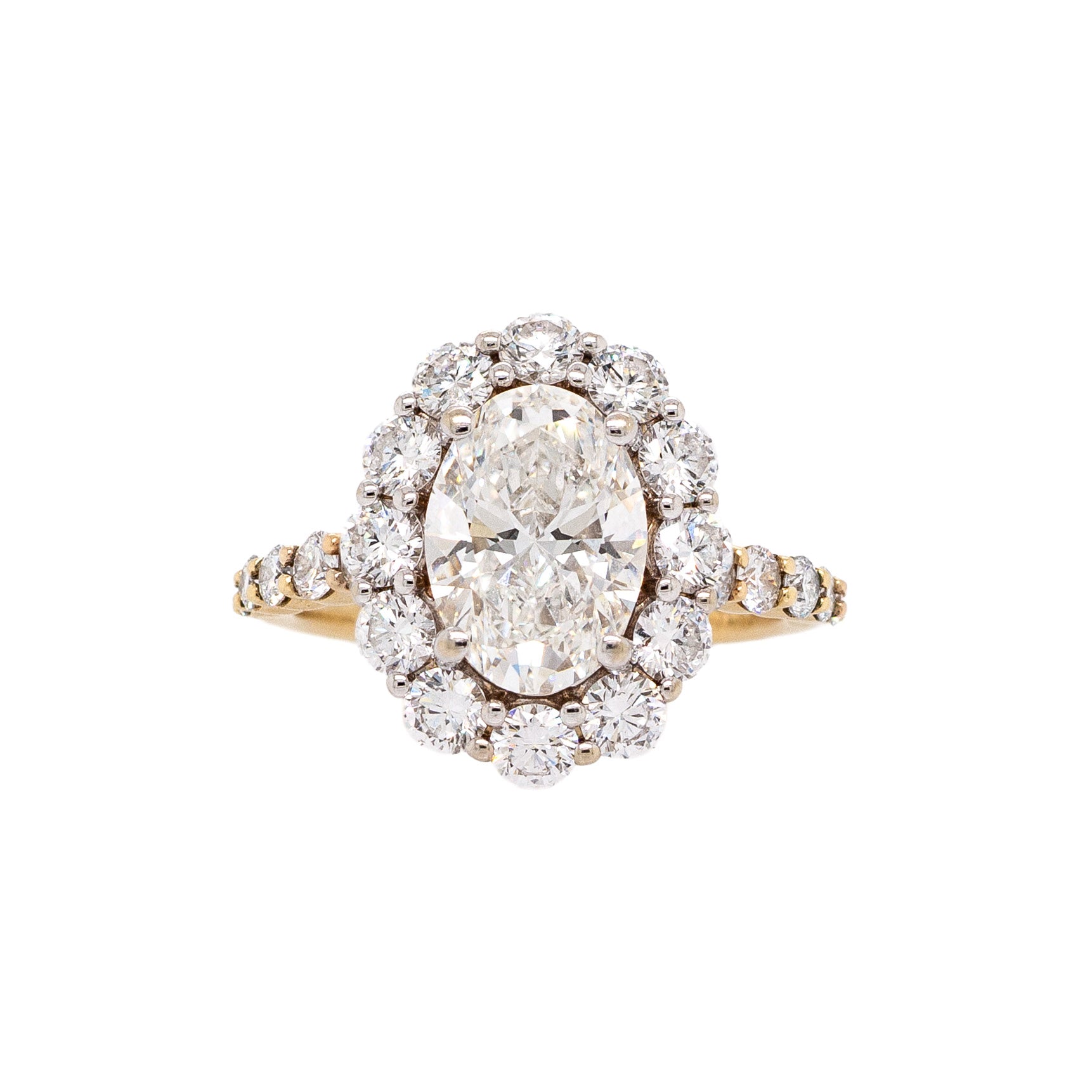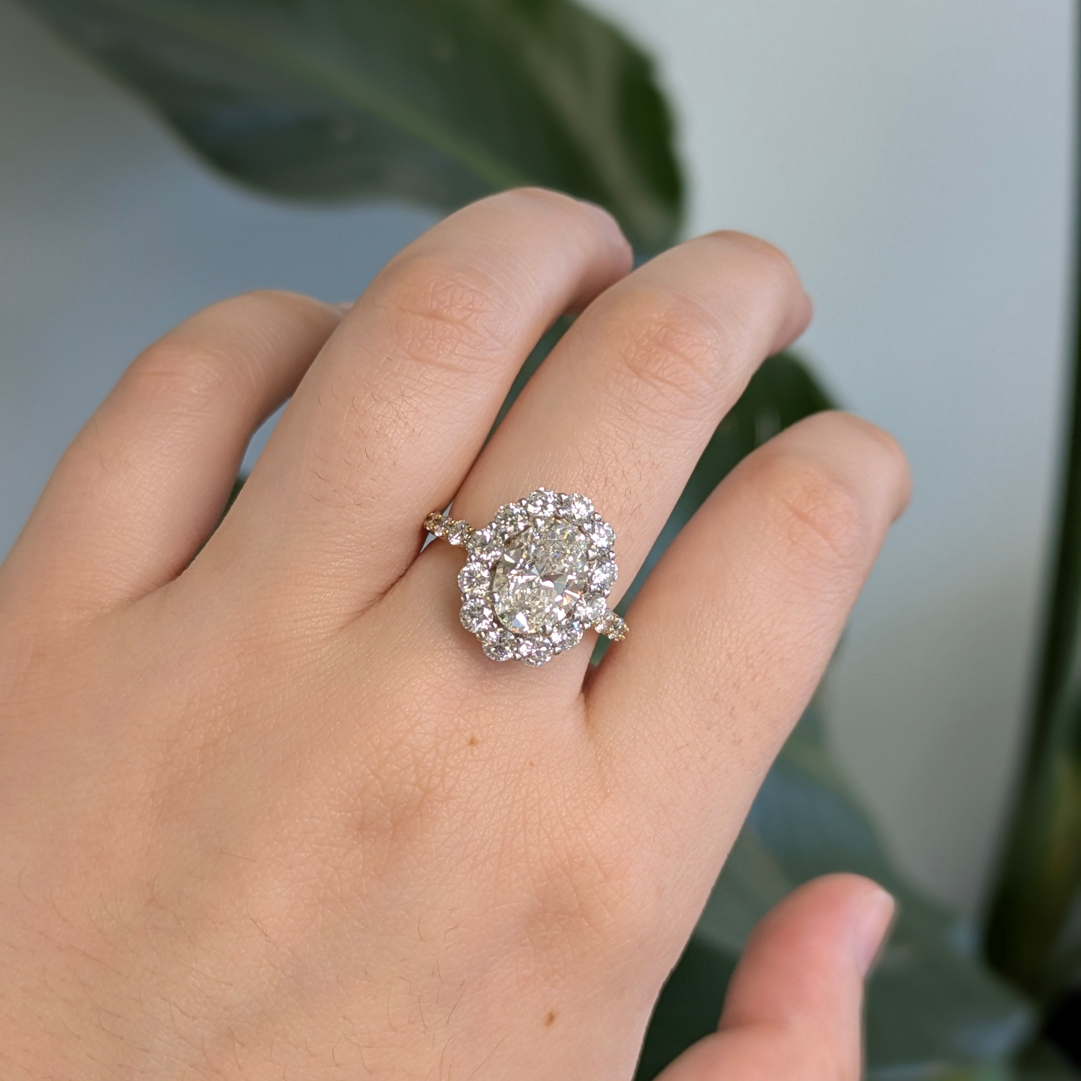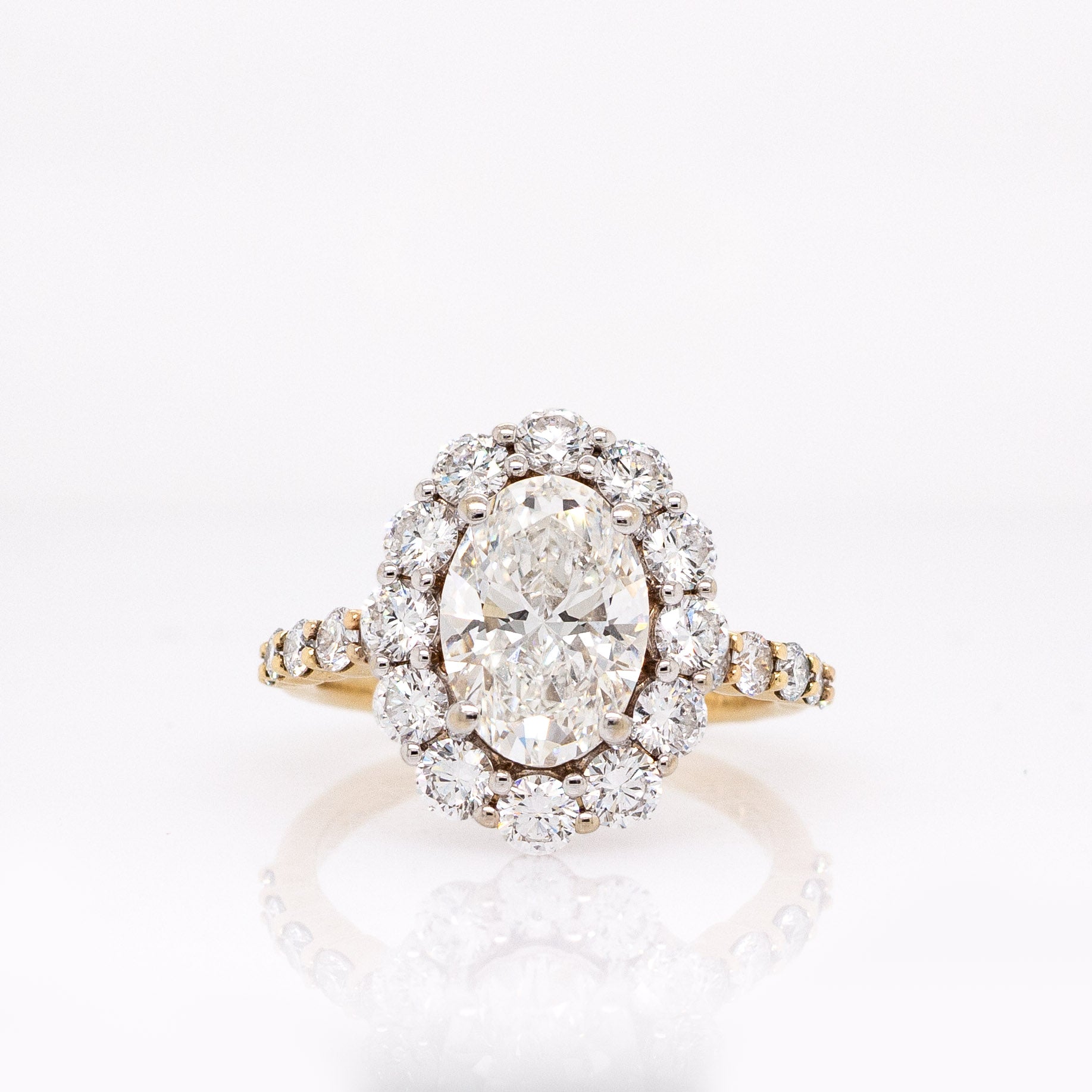 Sora Solid 14k White and Yellow Dual Gold Lab Diamond Ring With Natural Diamonds Halo | 10x7mm