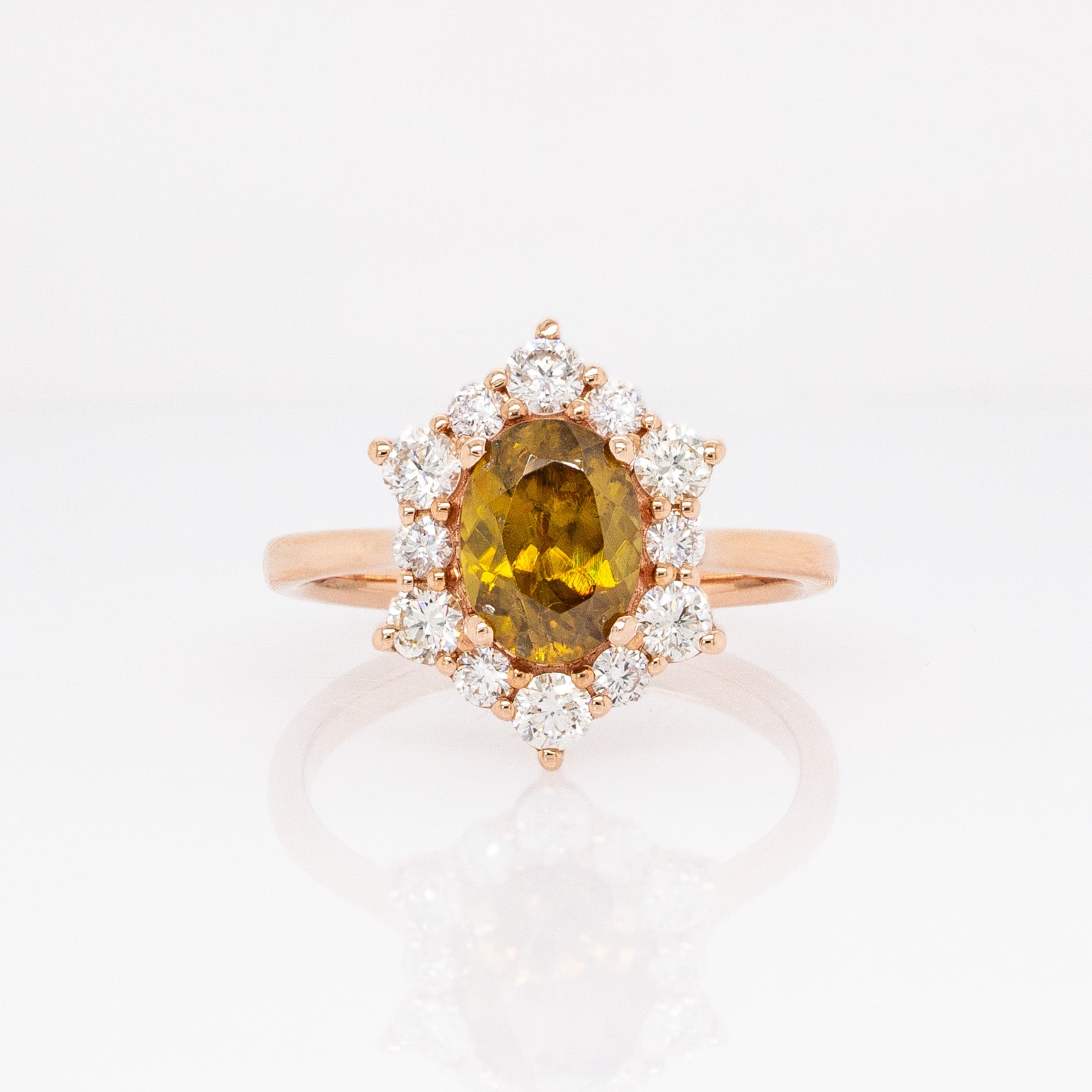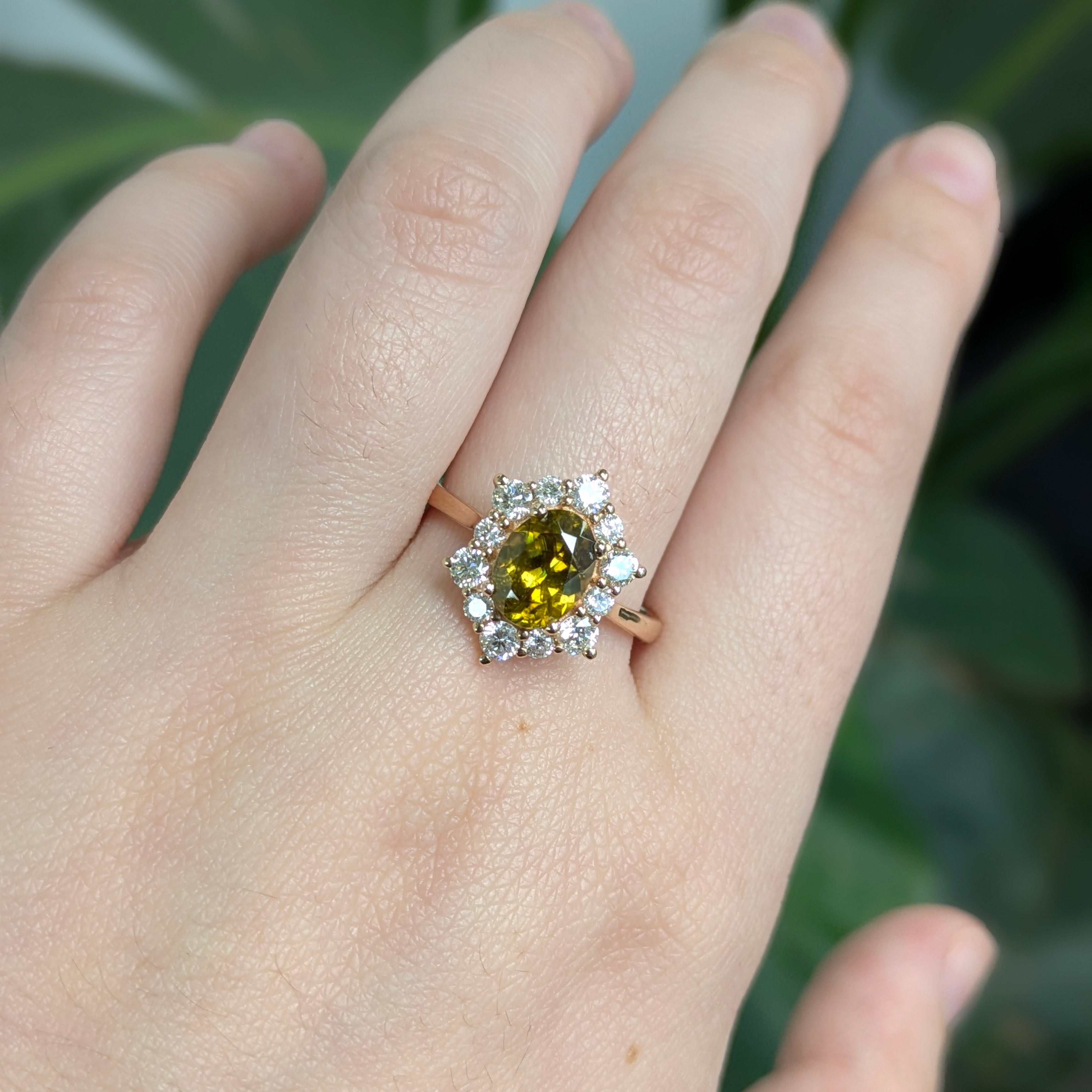 Vaila 14k Solid Gold Sphene Ring with Natural Diamond Accents | 8x6mm