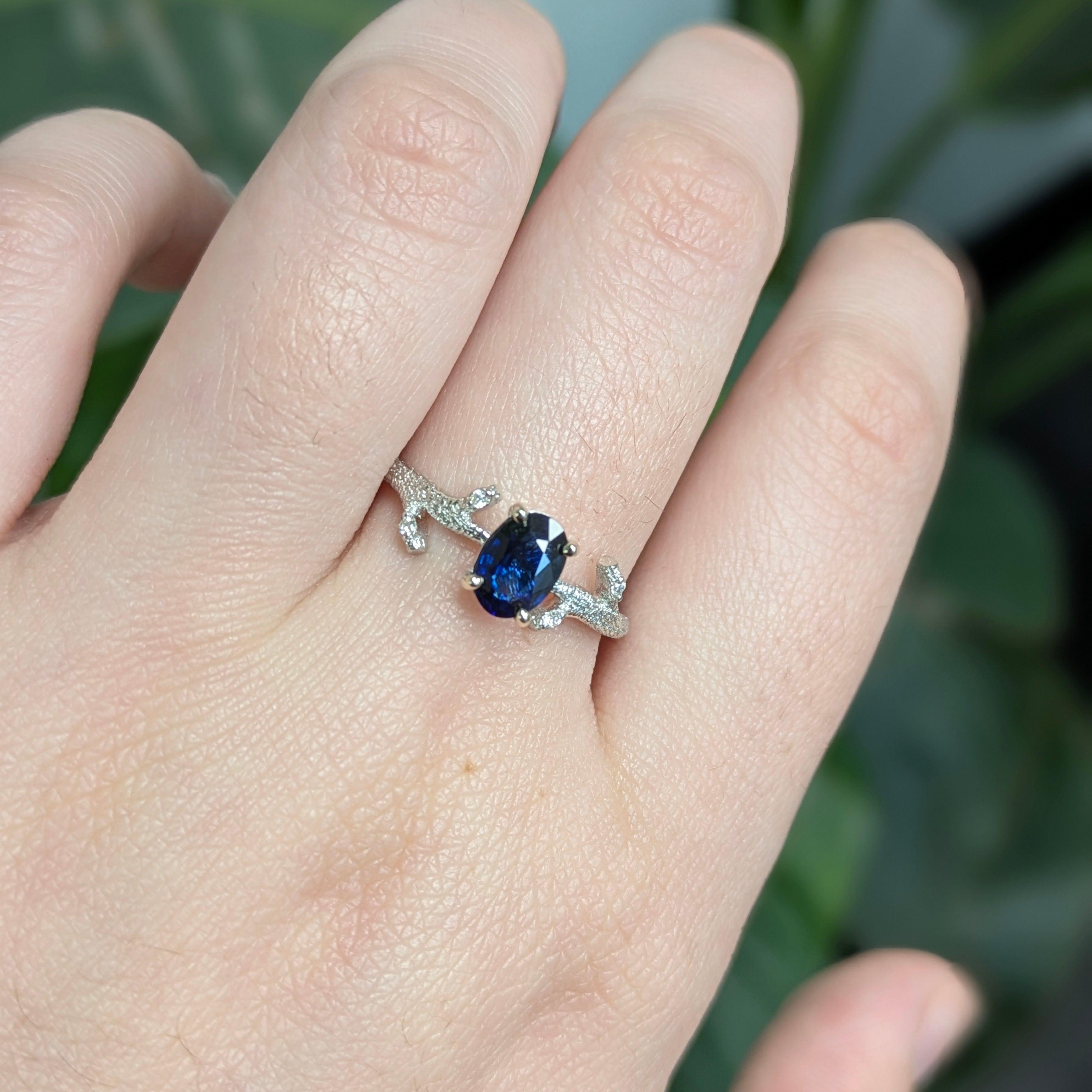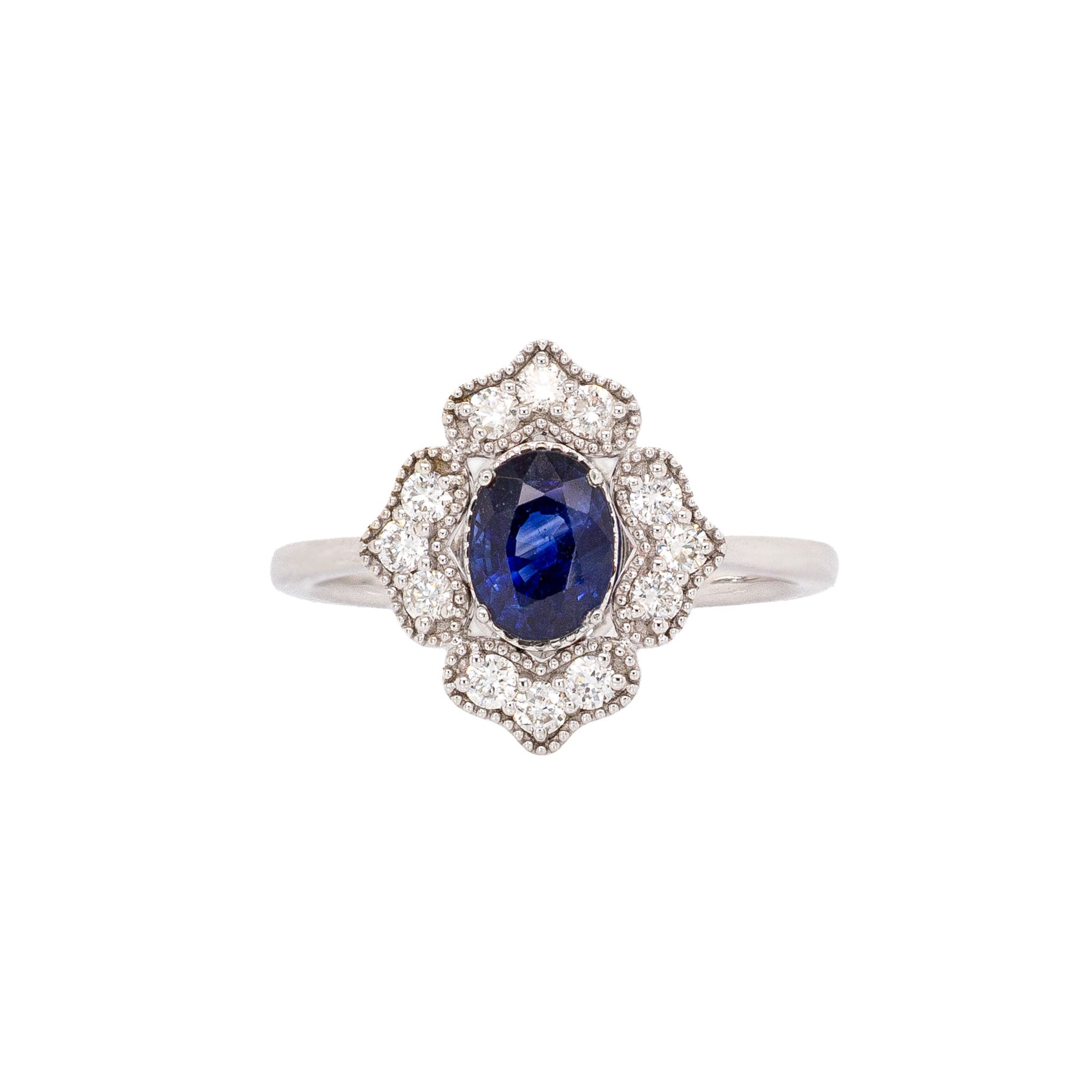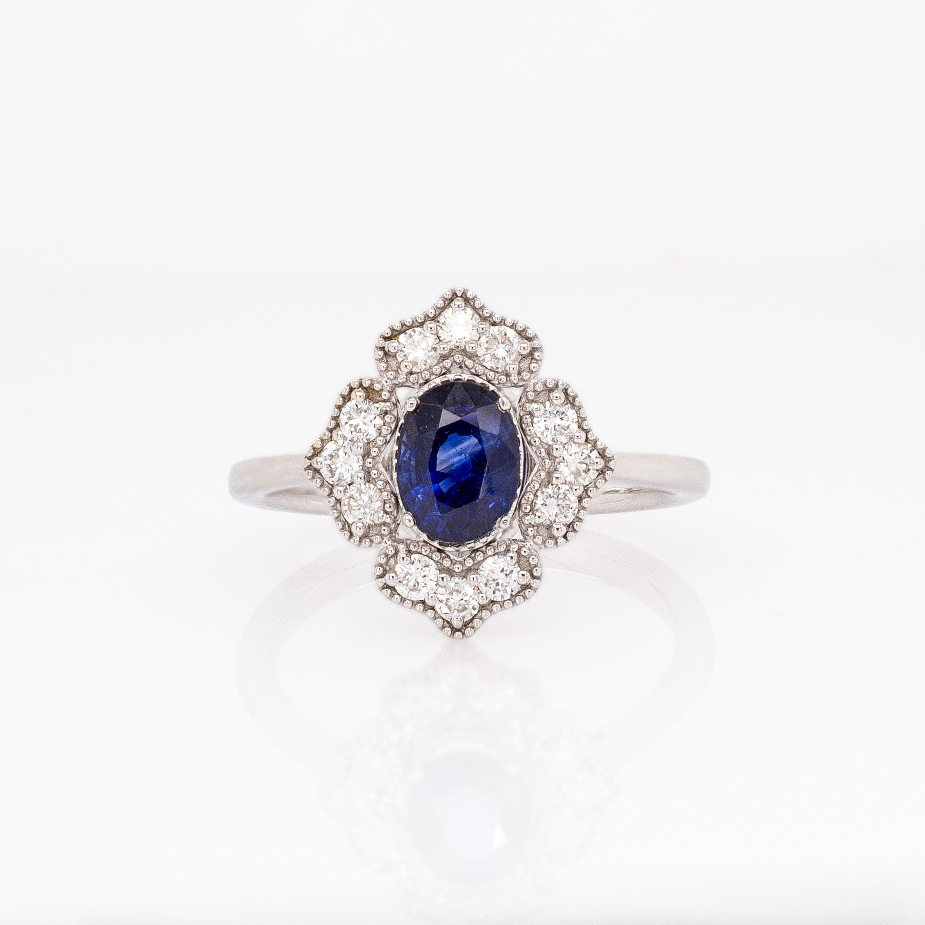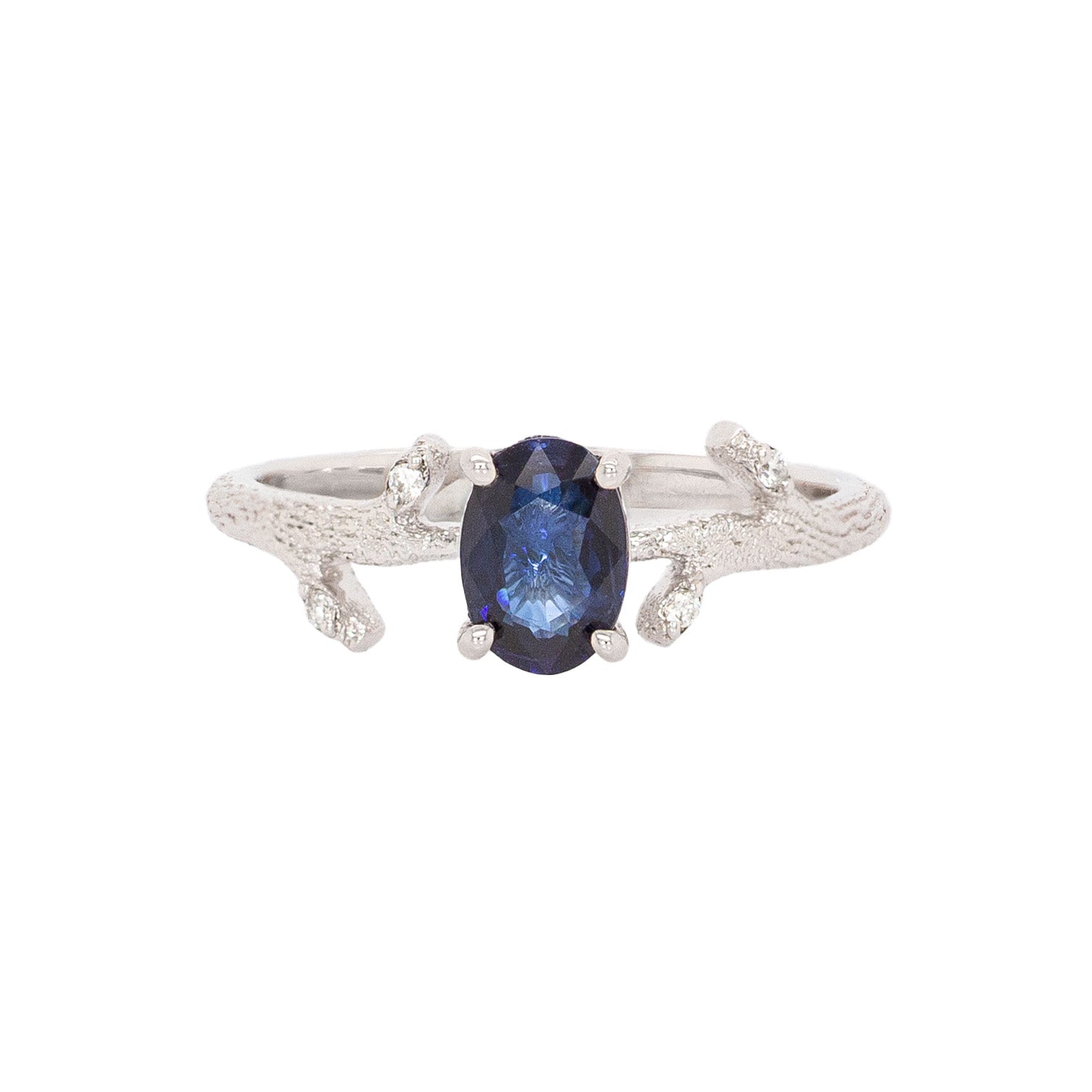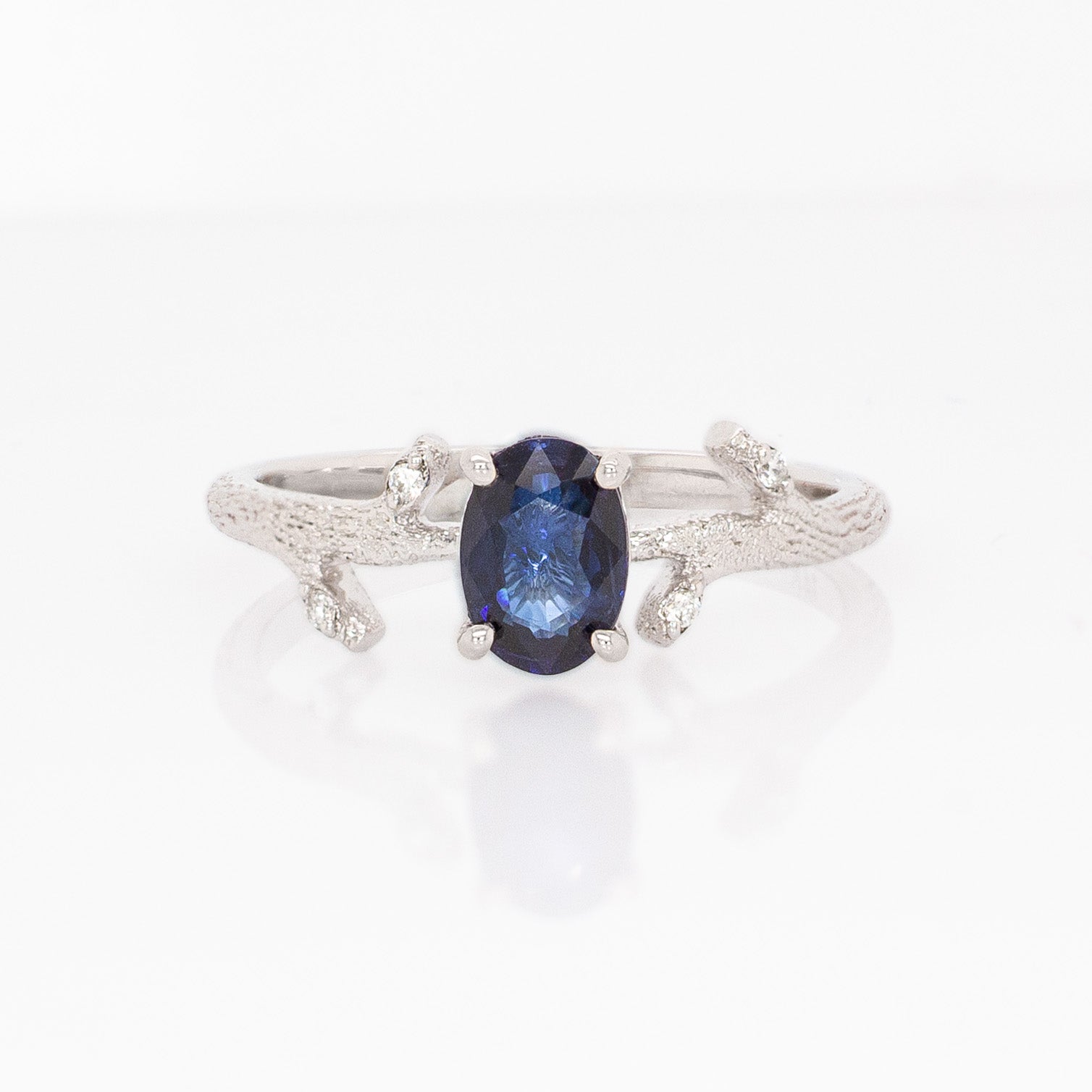 Aurelia Solid 14k White Gold Ceylon Sapphire Ring with Natural Diamond Accents | Oval, 7x5mm