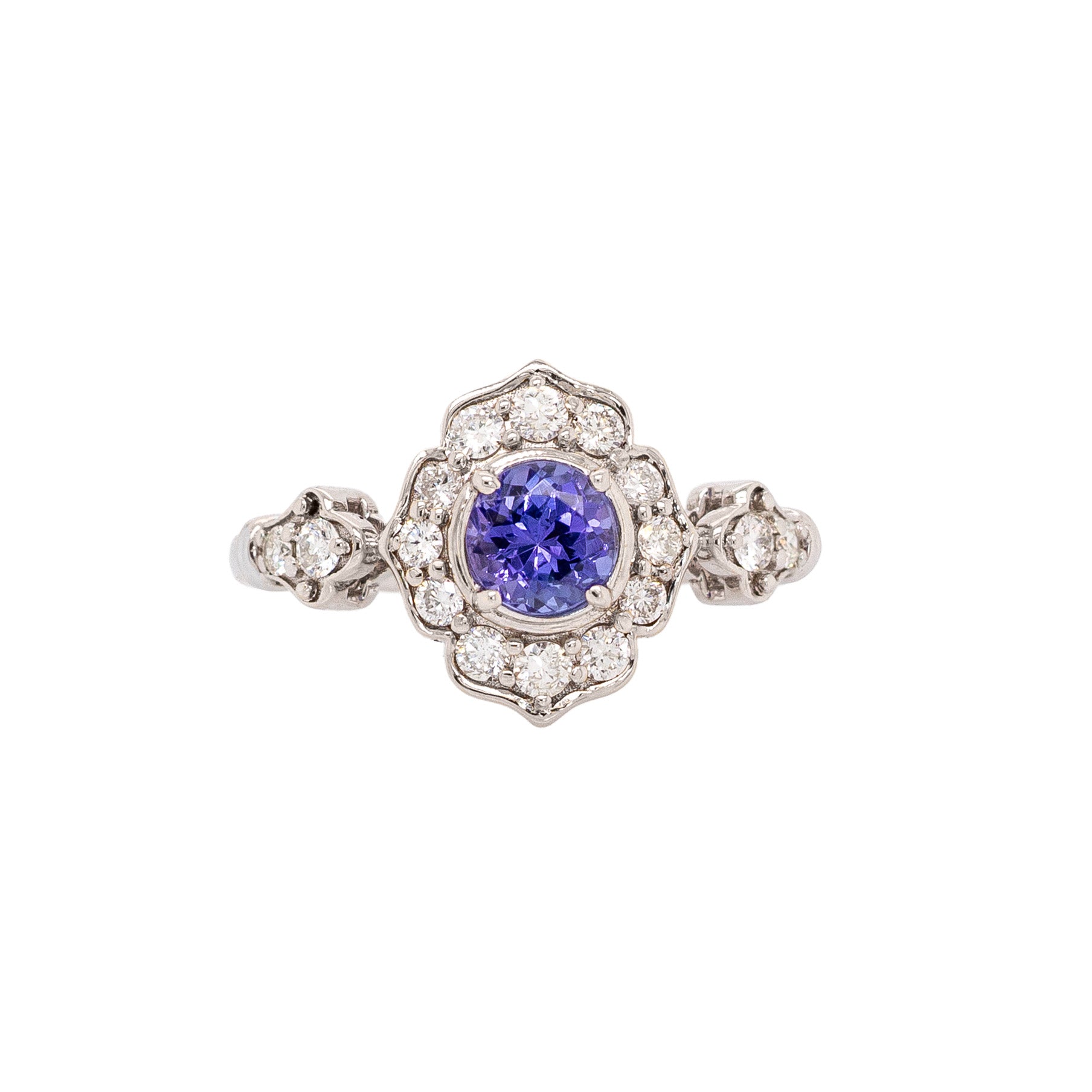 Junia Solid 14k White Gold Tanzanite Ring with Natural Diamond Accents | 5mm