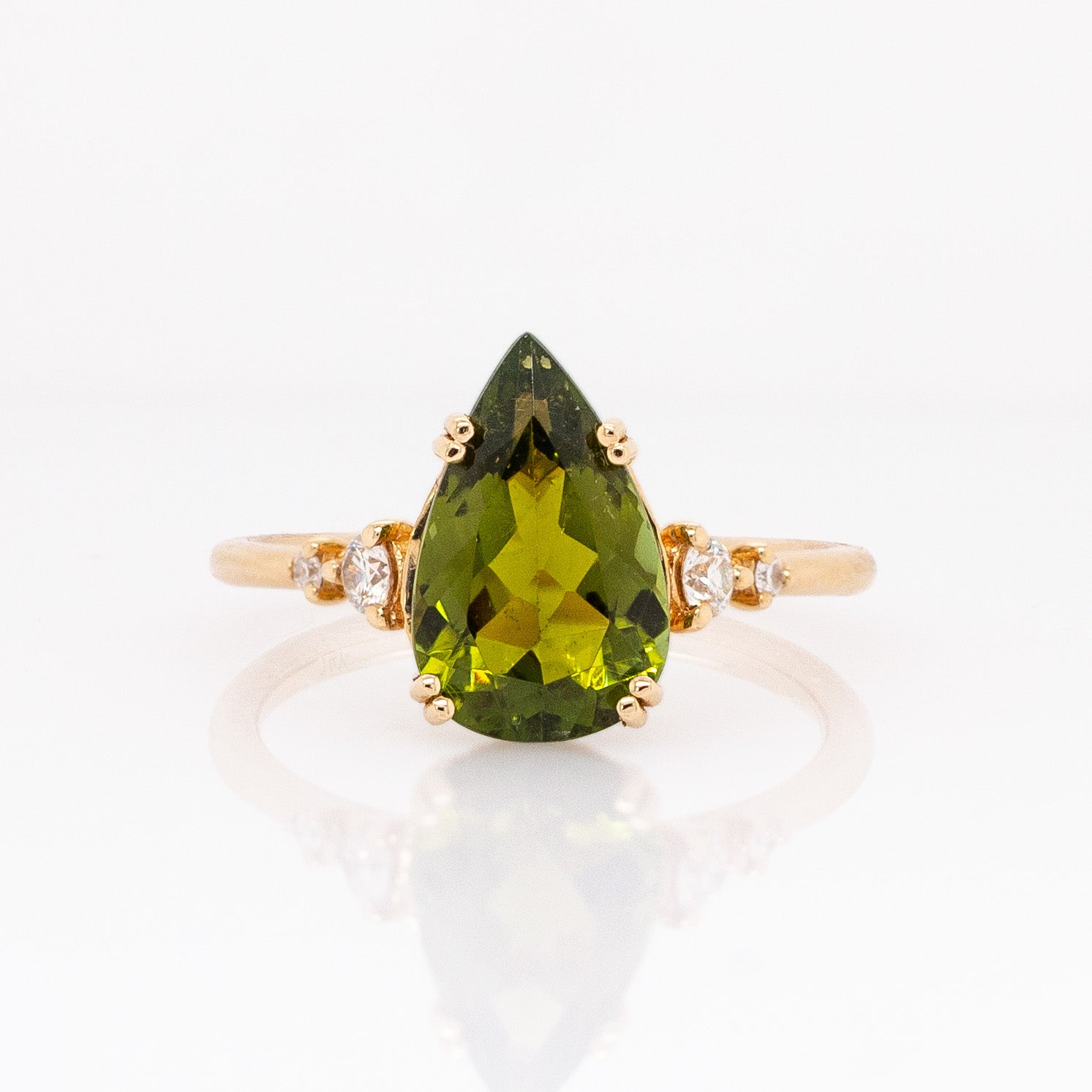 Yara 14k Solid Gold Green Tourmaline Ring with Natural Diamond Accents | 12x7.7mm