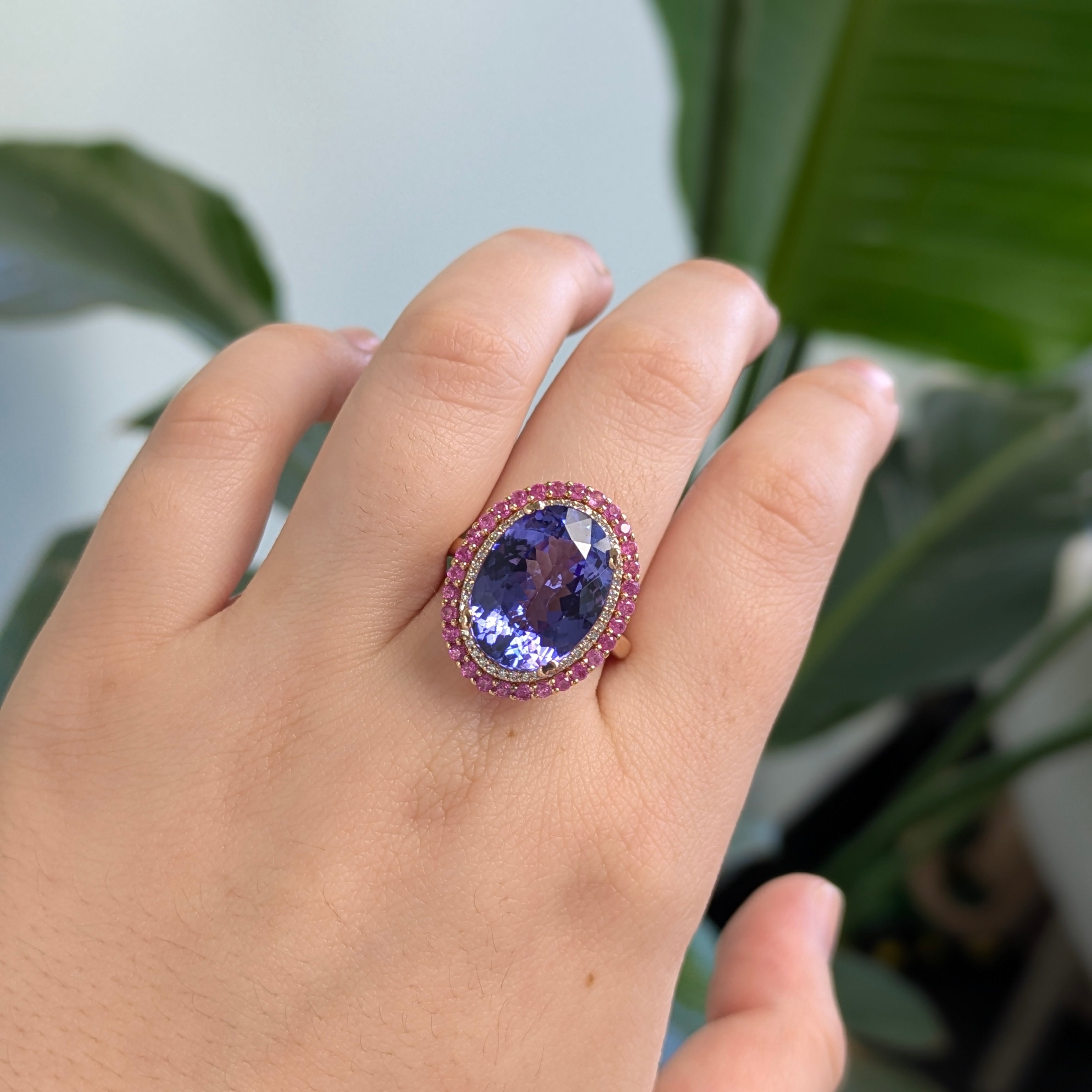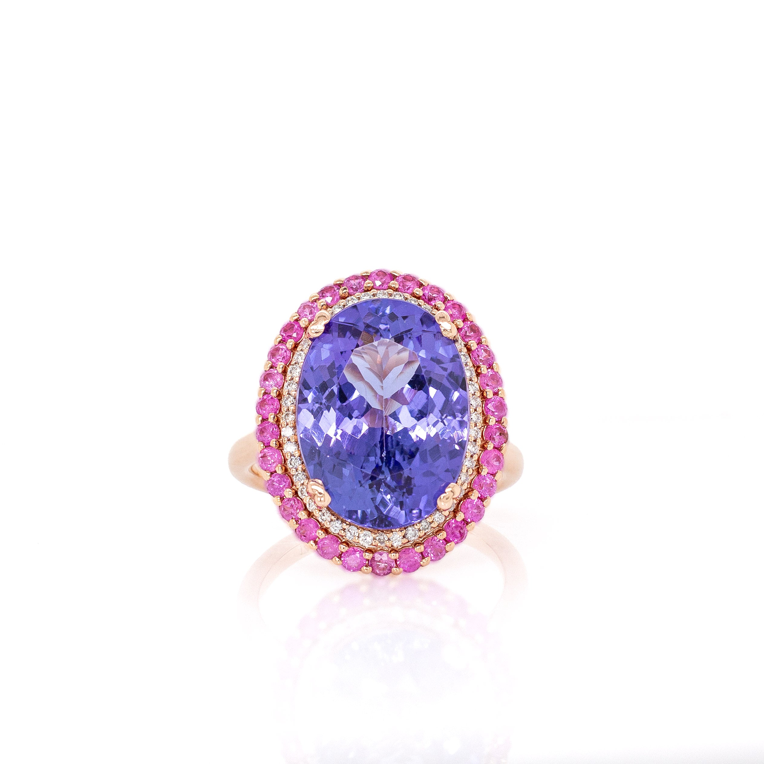 Nola 14k Dual Gold Tanzanite Ring with Natural Diamonds and Pink Sapphire Accents | 11x8mm