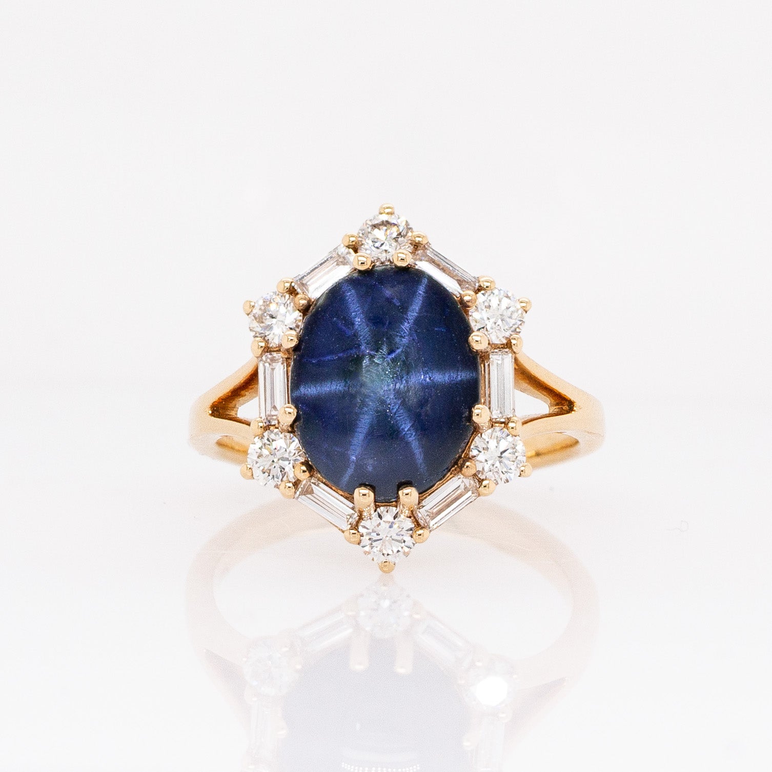 Seraphina 14k Solid Gold Star Sapphire Ring with Natural diamonds Halo | 11x9mm