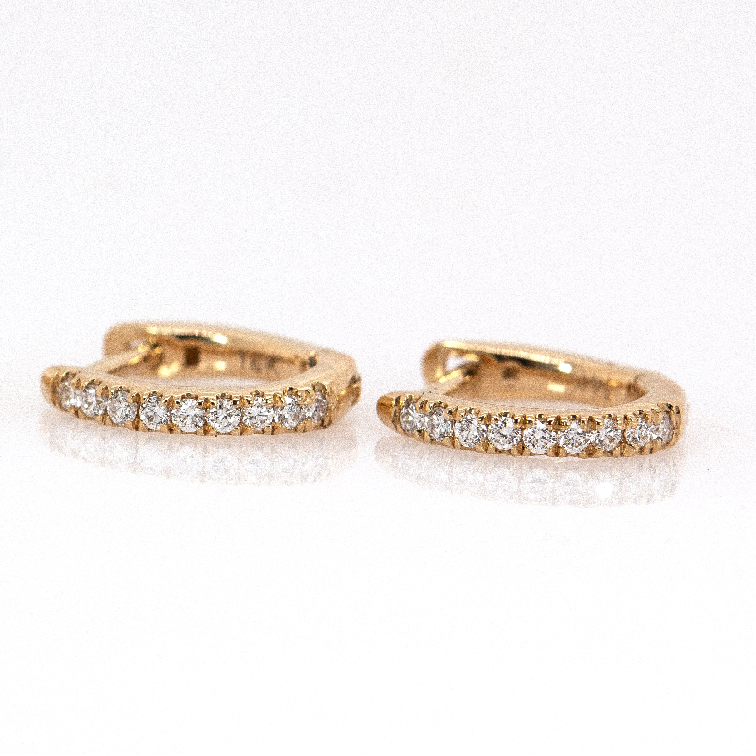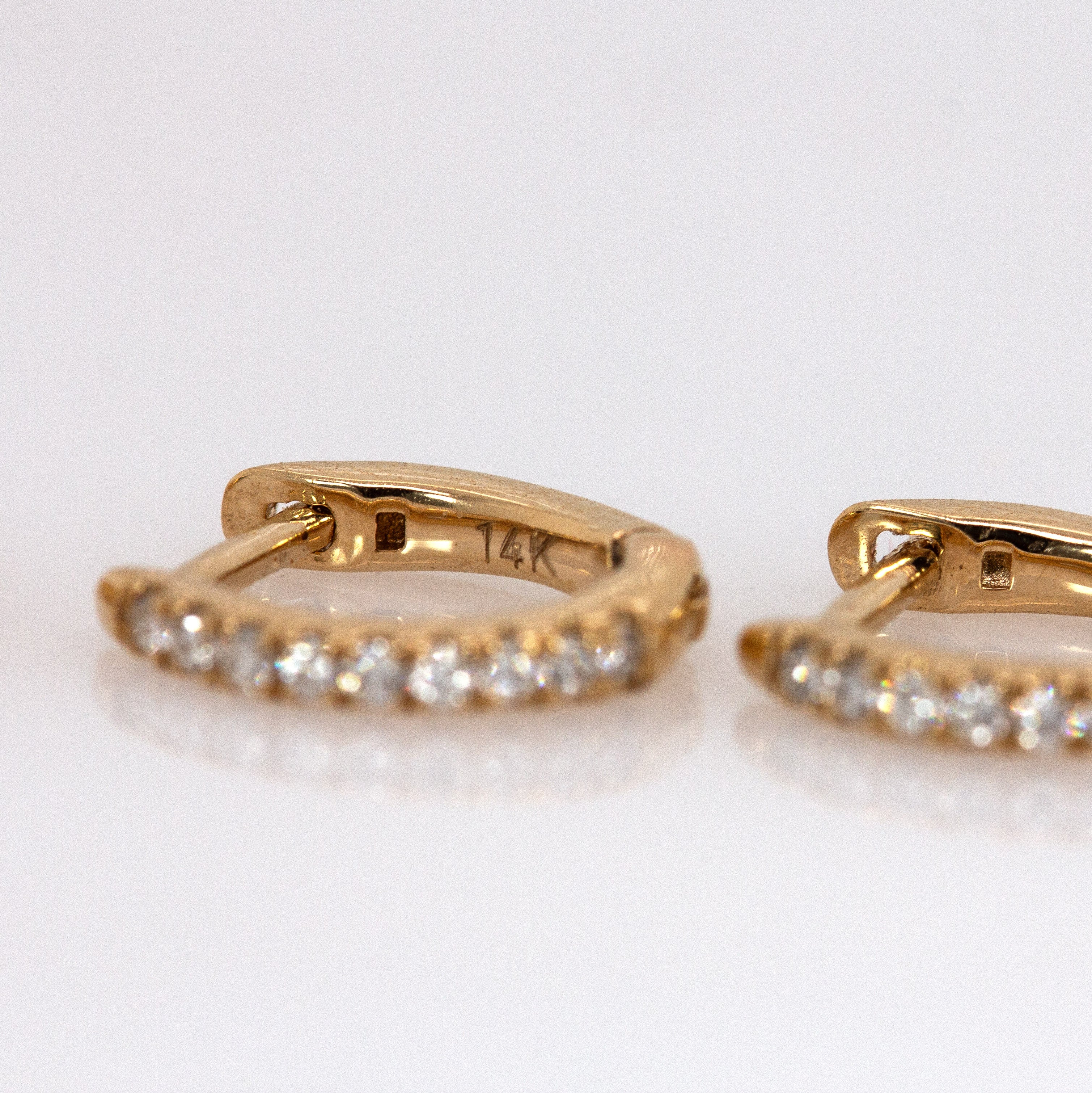 Add a touch of timeless elegance to your everyday style with these 14K Gold Huggies Hoop Earrings, available in both 10mm and 12mm sizes for the perfect fit. Designed for women and girls, these lightweight, comfortable hoops are crafted in solid gold and accented with a row of sparkling stones that bring subtle sophistication to any look.