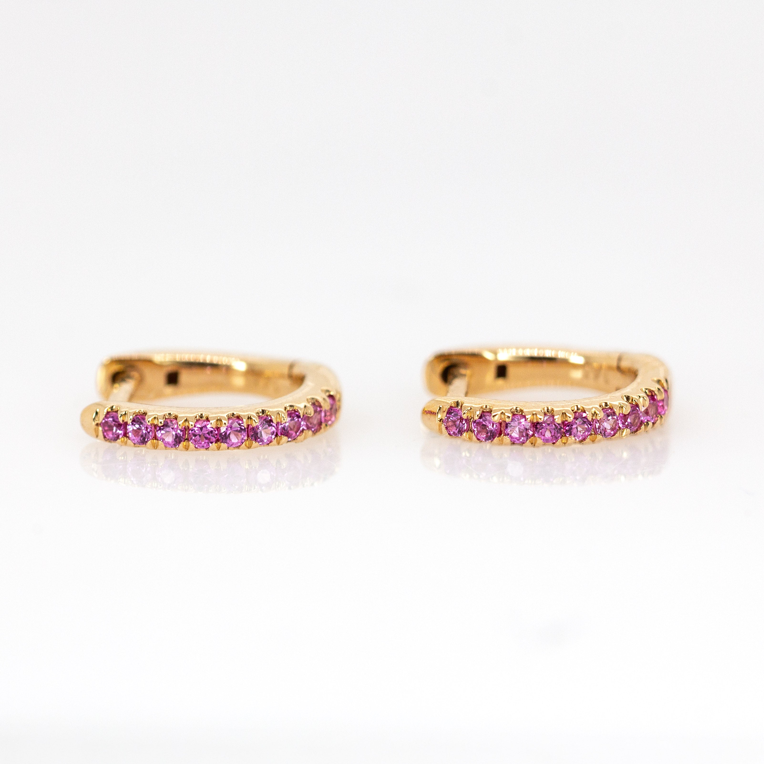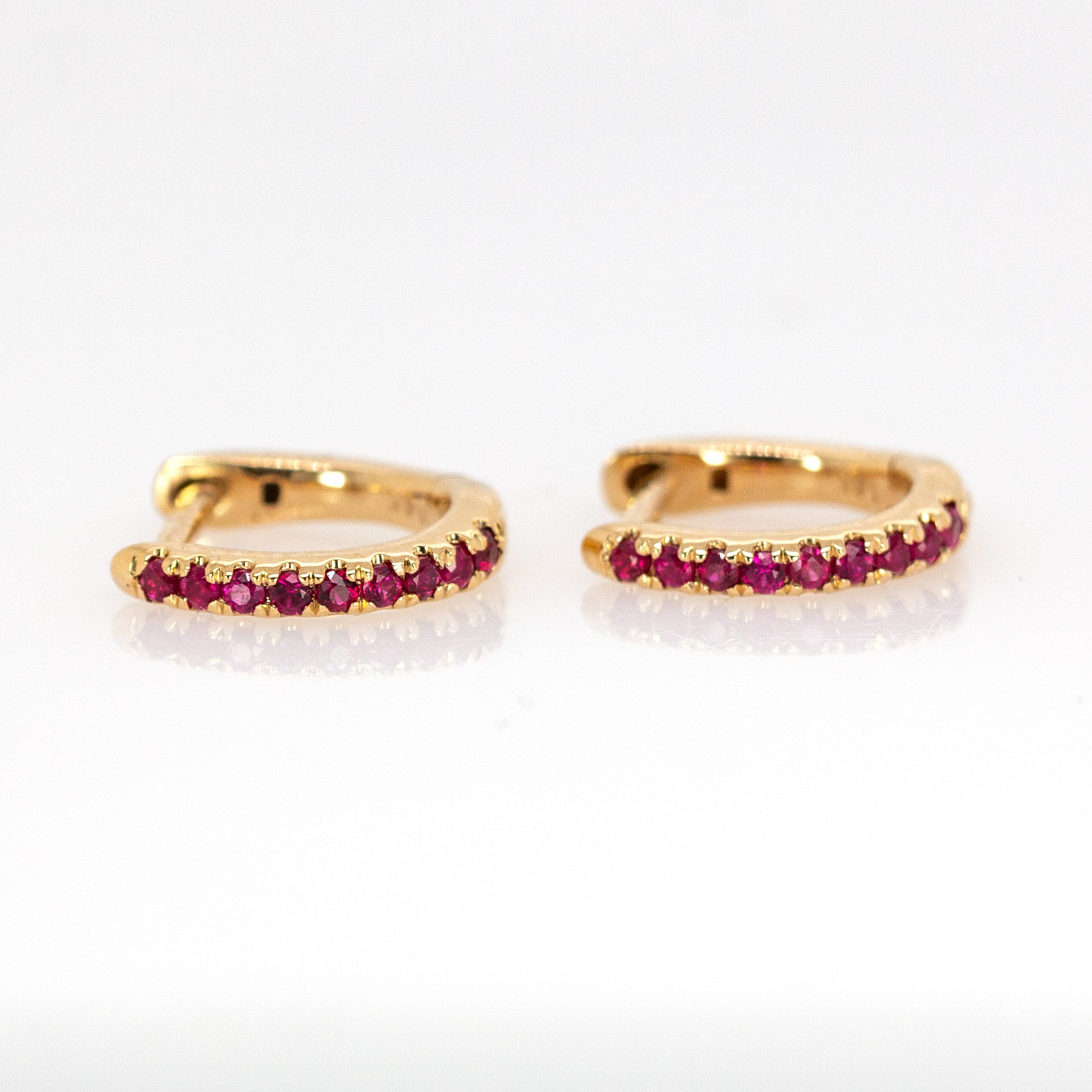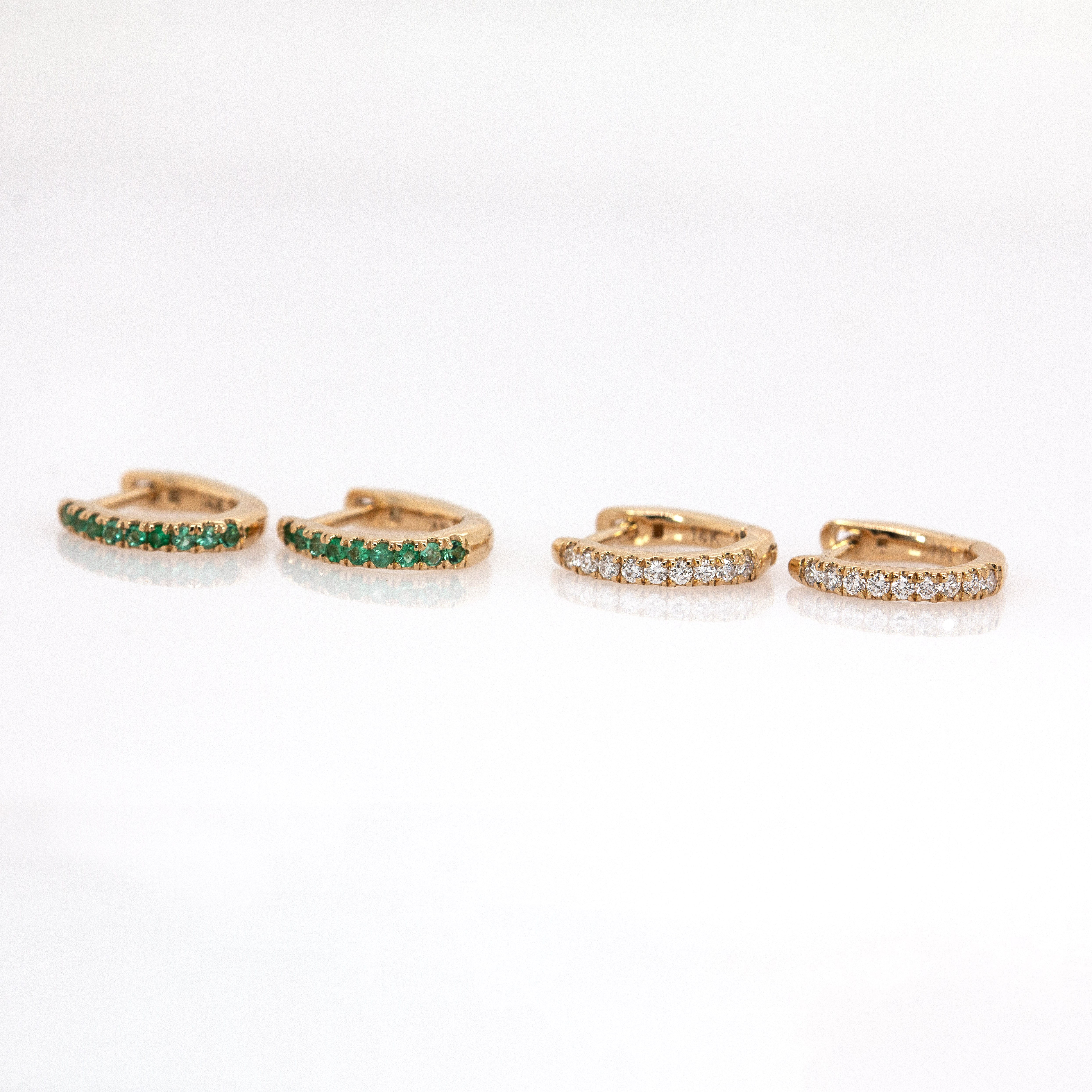 Choose from a variety of brilliant gemstones including Lab Diamond, Natural Diamond, Ruby, Emerald, Pink Sapphire, Tsavorite, and Blue Sapphire. Whether worn alone or stacked, these versatile huggies are ideal for everyday wear, adding a refined pop of color and classic shine to your jewelry collection.