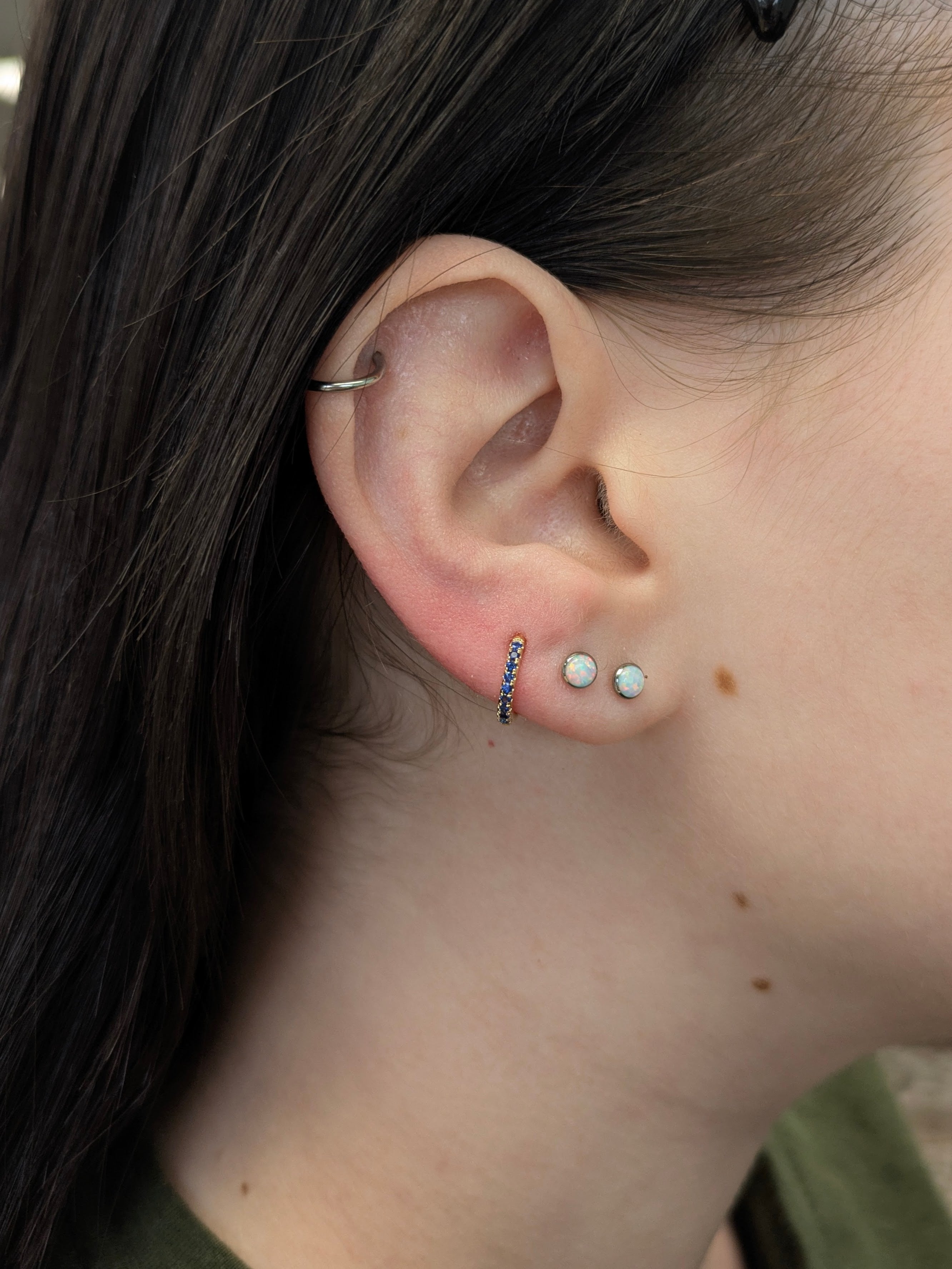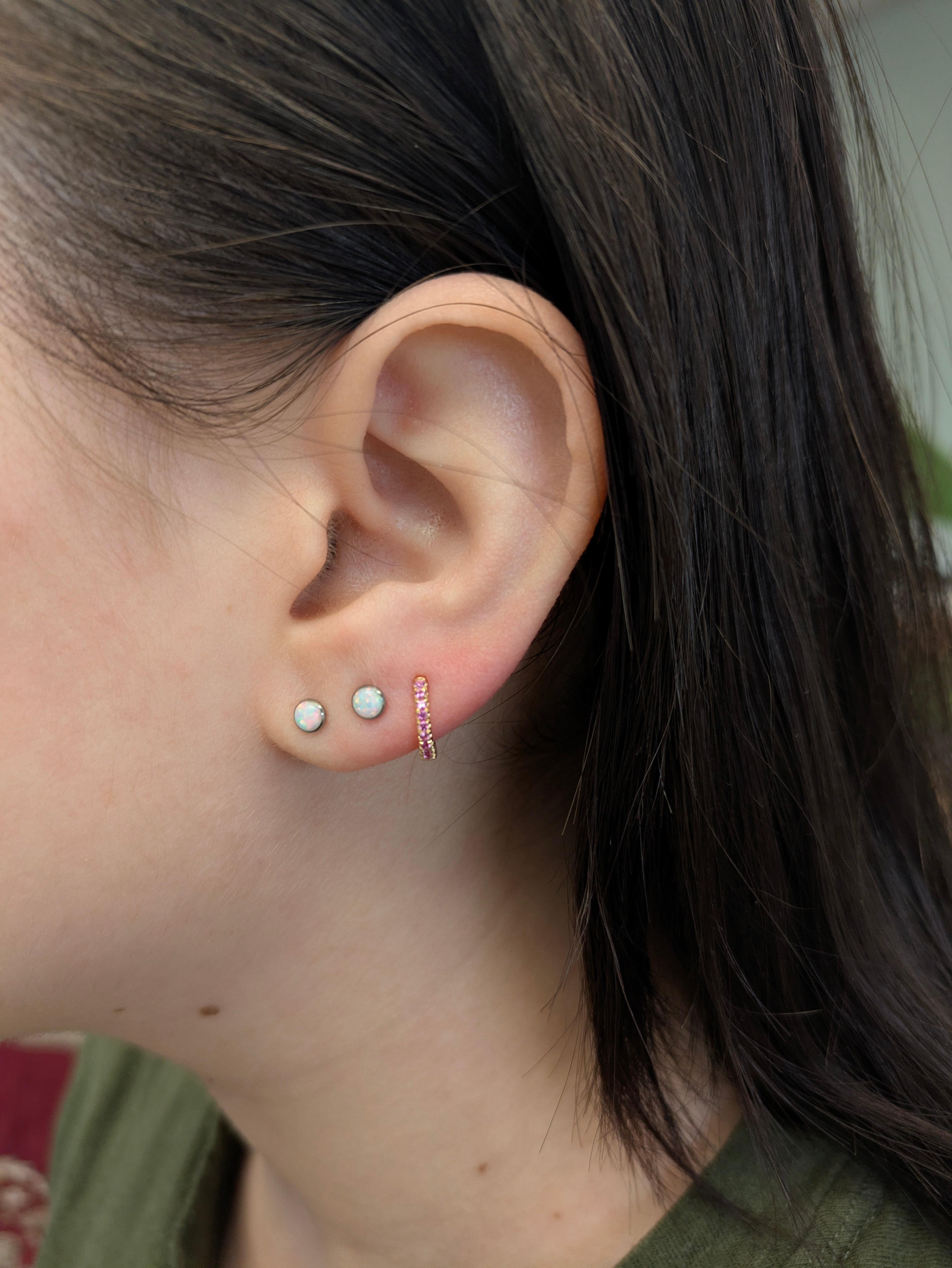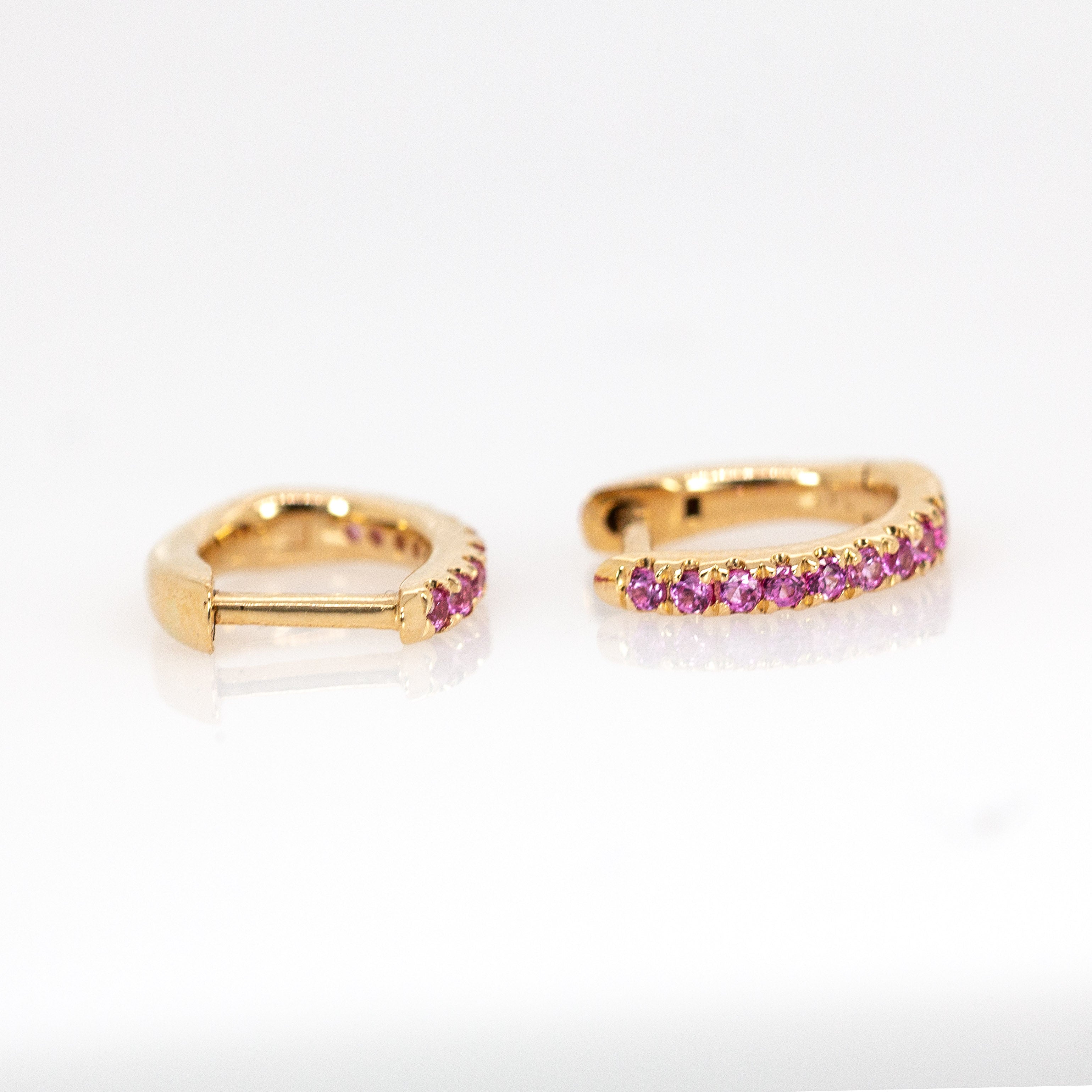 Choose from a variety of brilliant gemstones including Lab Diamond, Natural Diamond, Ruby, Emerald, Pink Sapphire, Tsavorite, and Blue Sapphire. Whether worn alone or stacked, these versatile huggies are ideal for everyday wear, adding a refined pop of color and classic shine to your jewelry collection.