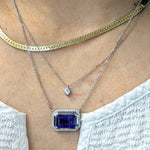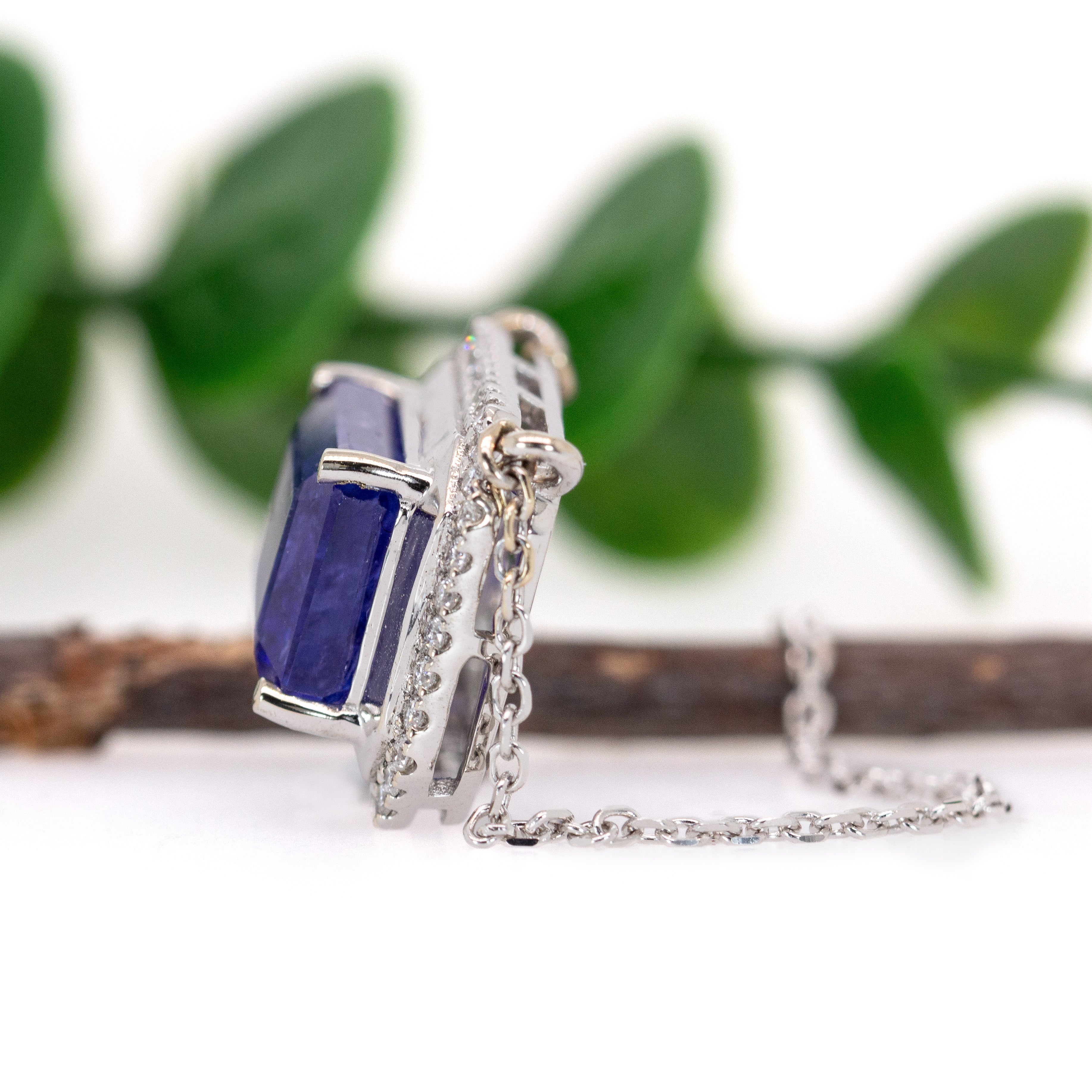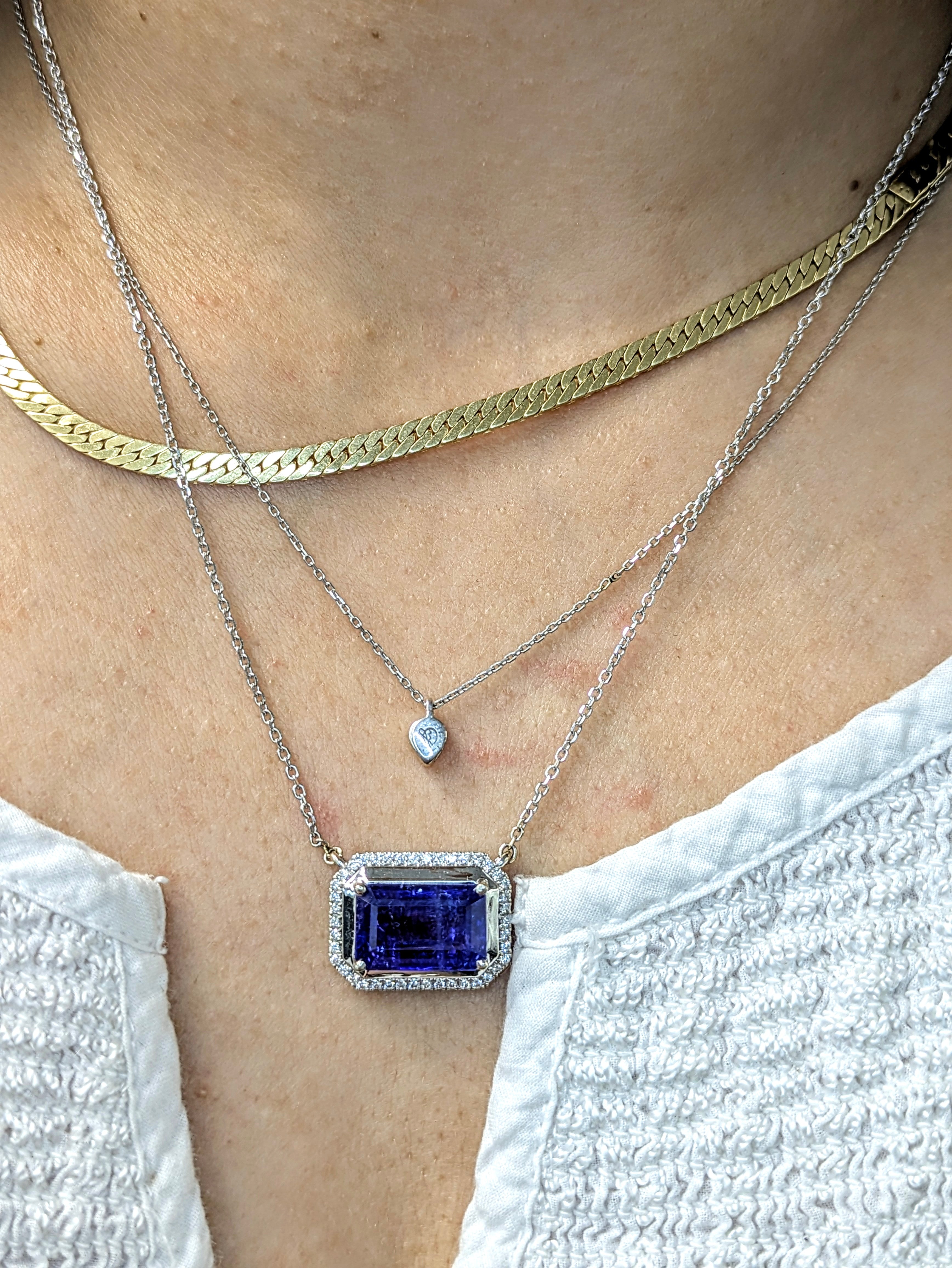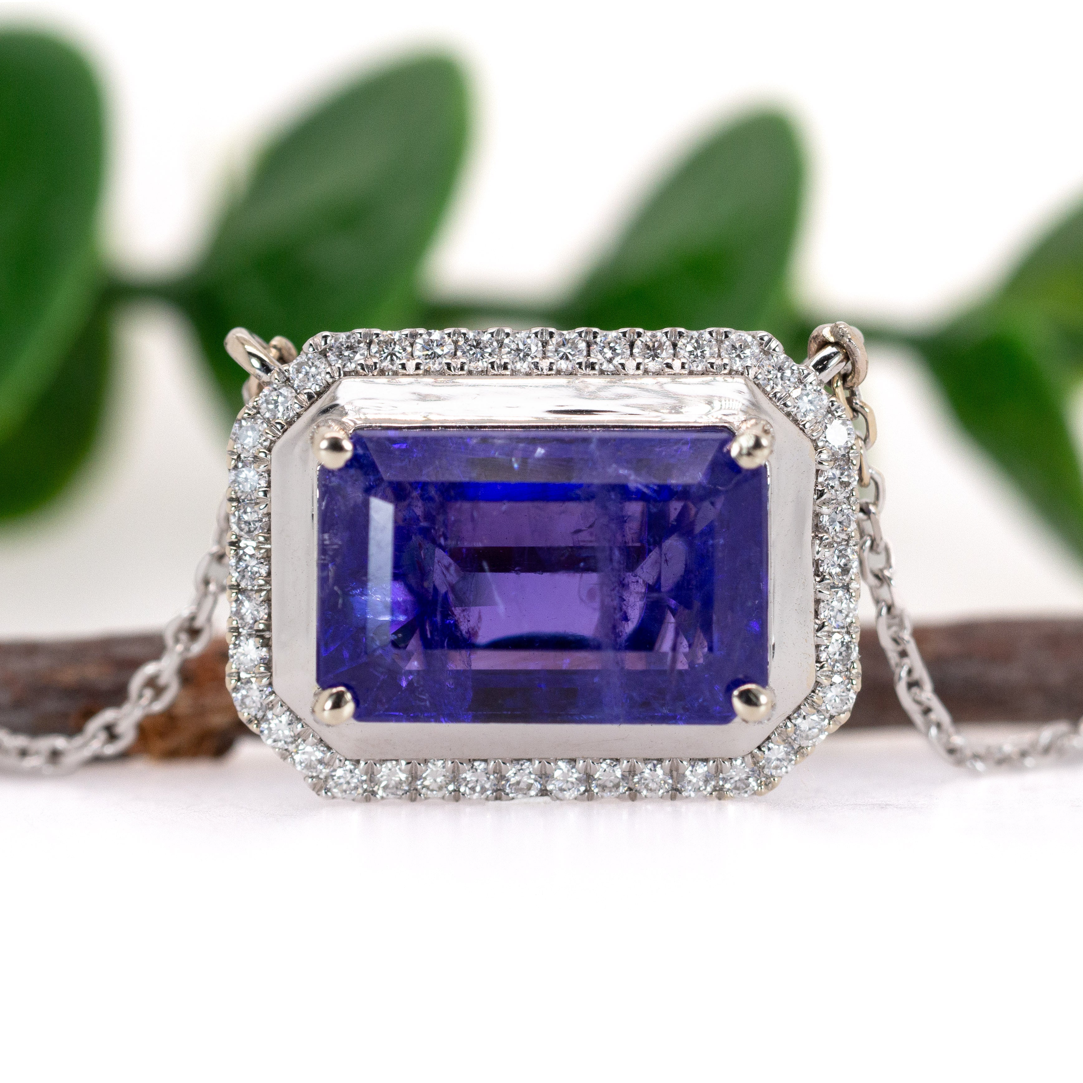 This striking pendant is a true statement piece, showcasing a dazzling 8.27-carat Tanzanite at its center, encircled by a sparkling diamond halo. Crafted in solid 14K gold with an attached chain, it effortlessly combines bold elegance with timeless sophistication. Perfect for special occasions—or any moment you want to shine.