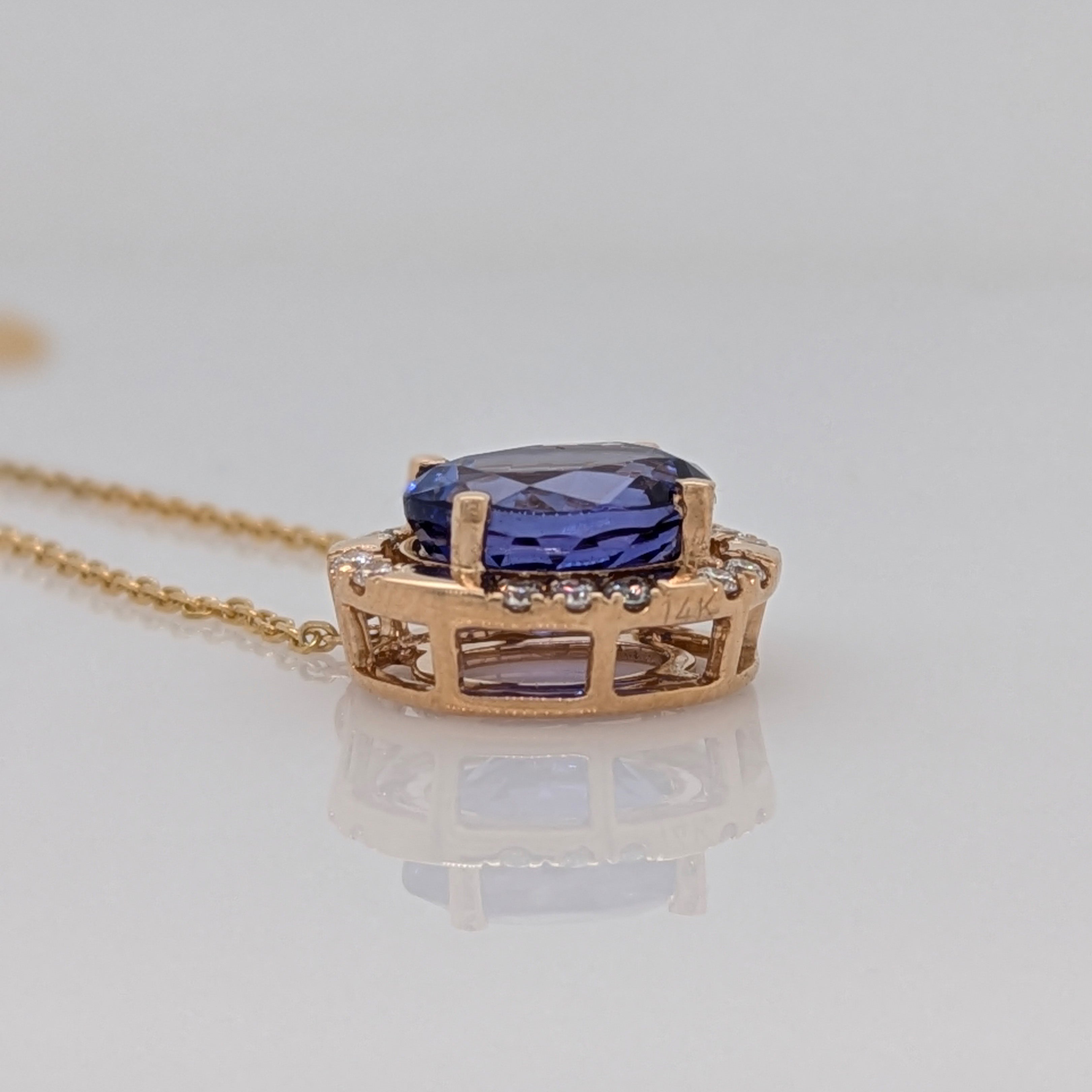 Natural diamond accents add brilliance and beautifully complement the center stone.