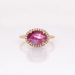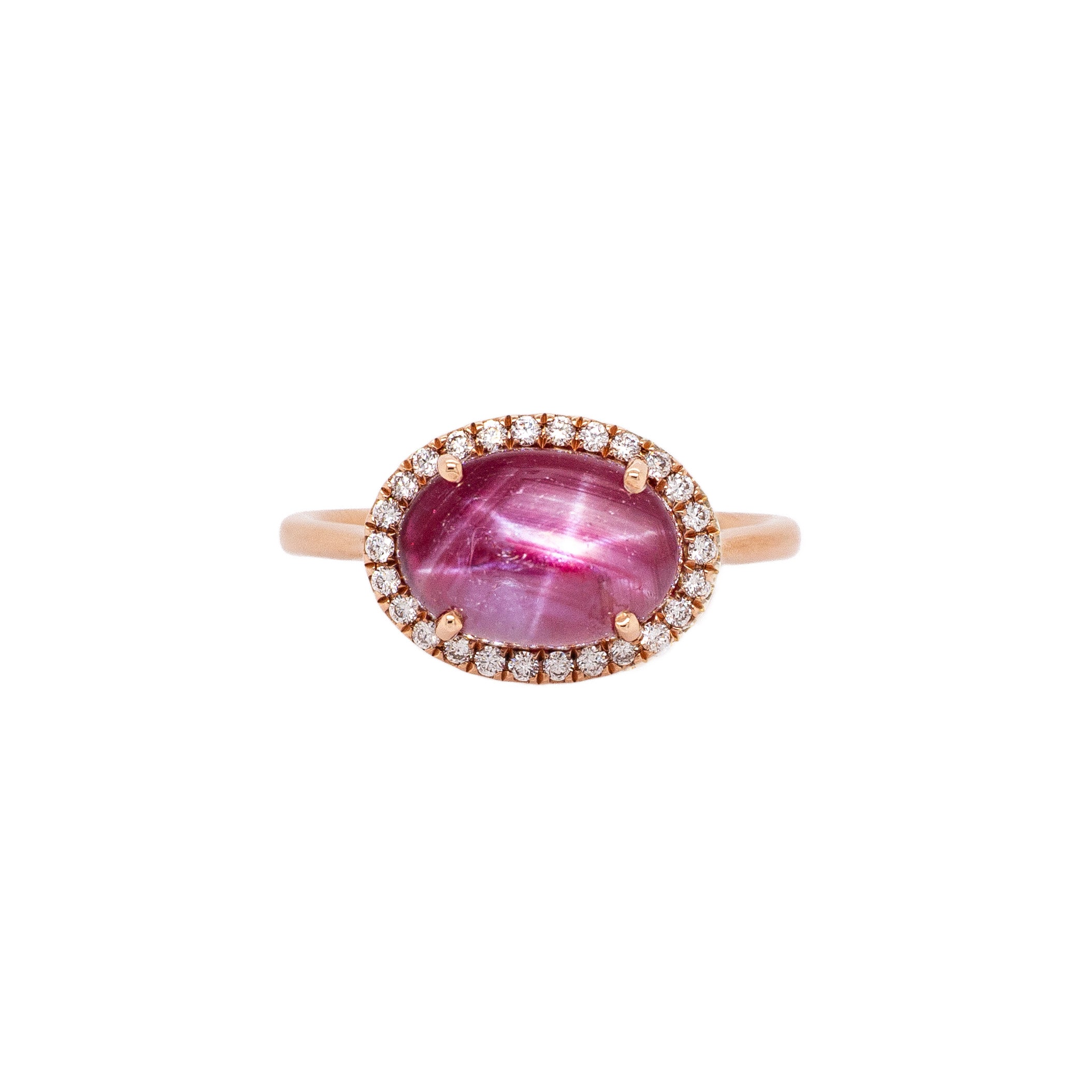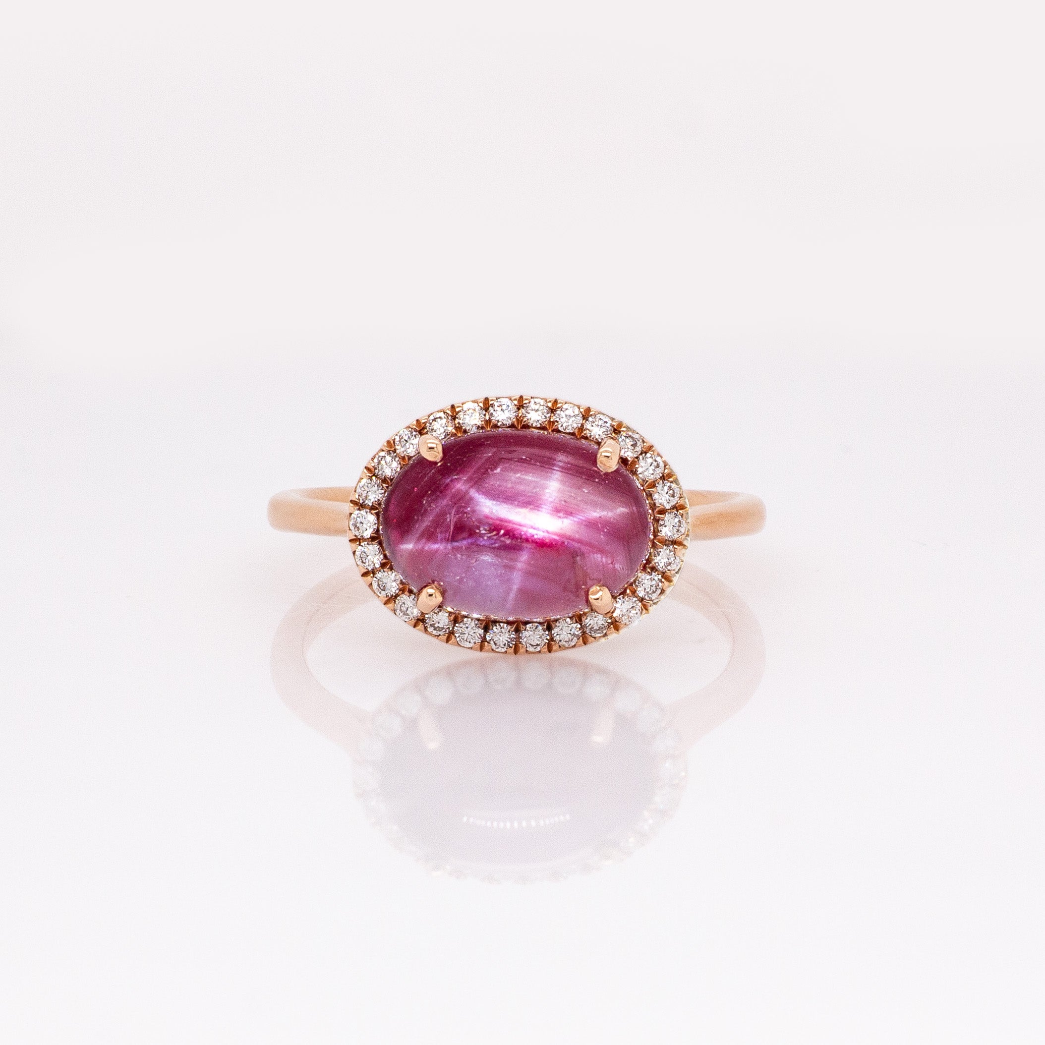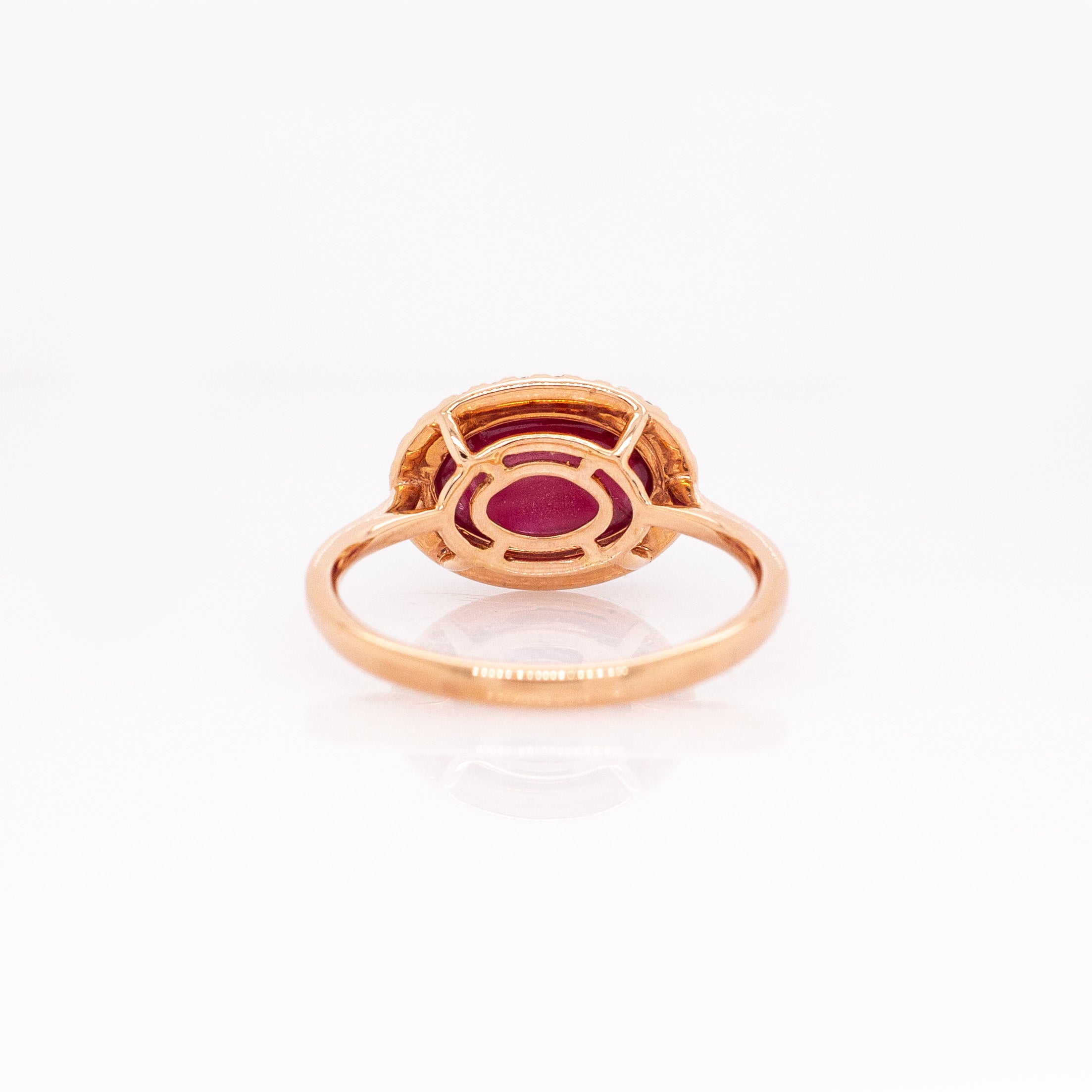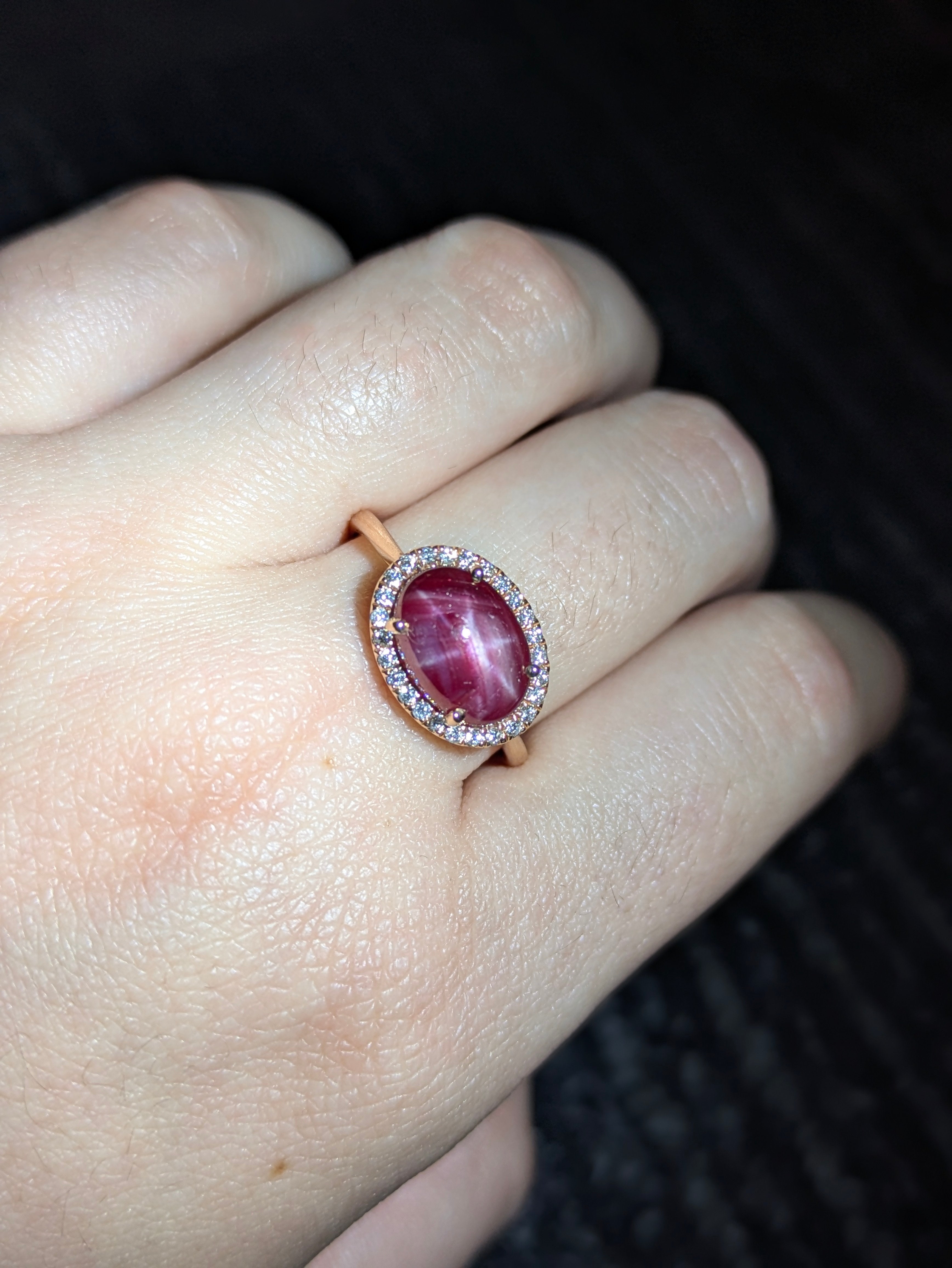 This elegant 14k solid gold ring showcases a captivating 11x7.6mm natural star ruby that radiates a celestial glow. Surrounded by a brilliant halo of genuine diamonds, it exudes both luxury and refinement. The deep red hues of the ruby contrast beautifully with the sparkling diamonds, creating a piece of timeless sophistication. Perfect for those who appreciate classic beauty with a touch of modern allure.
