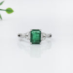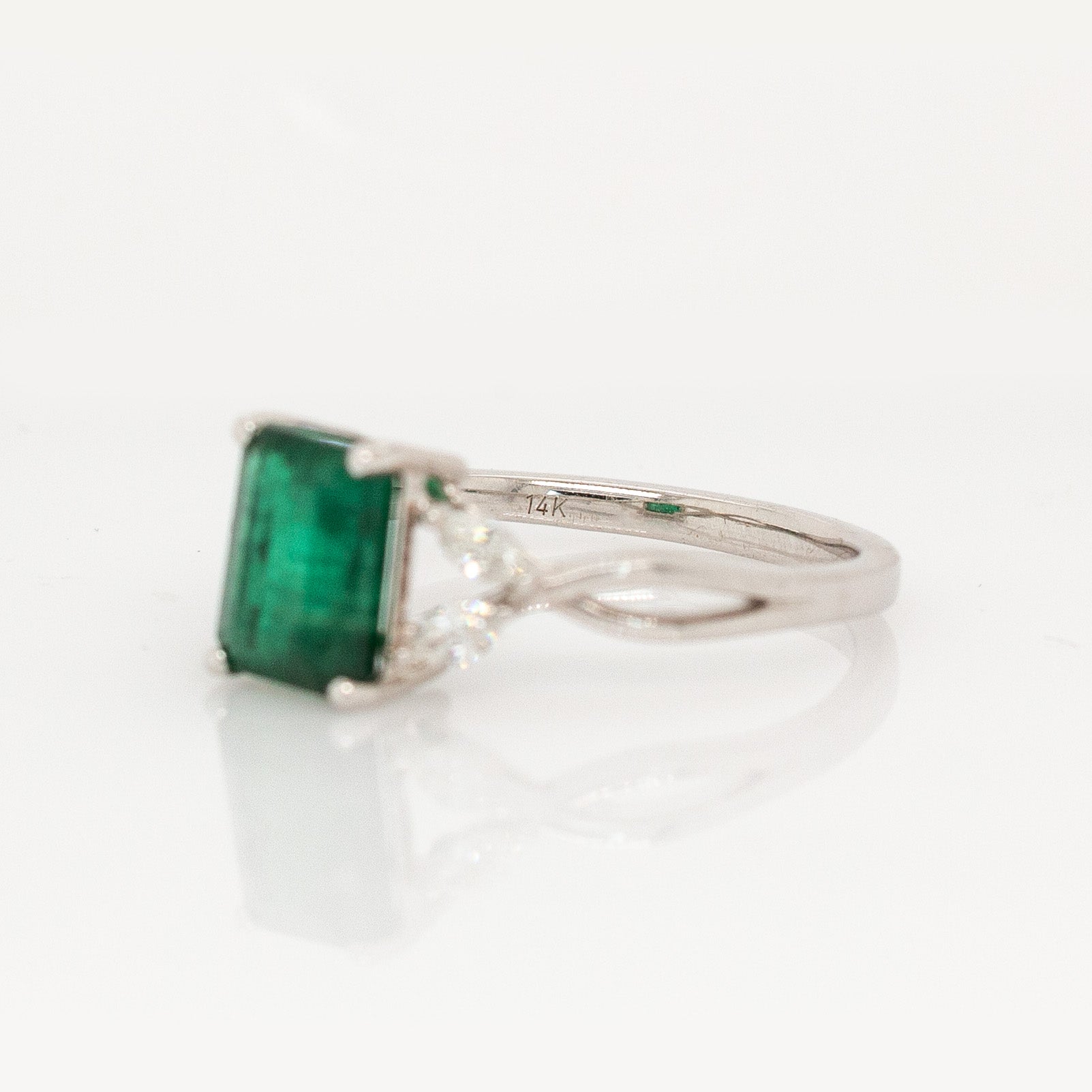 Aliza Zambian Emerald Ring with Natural Diamonds Accents: 14k Solid Gold, Emerald 8x6mm