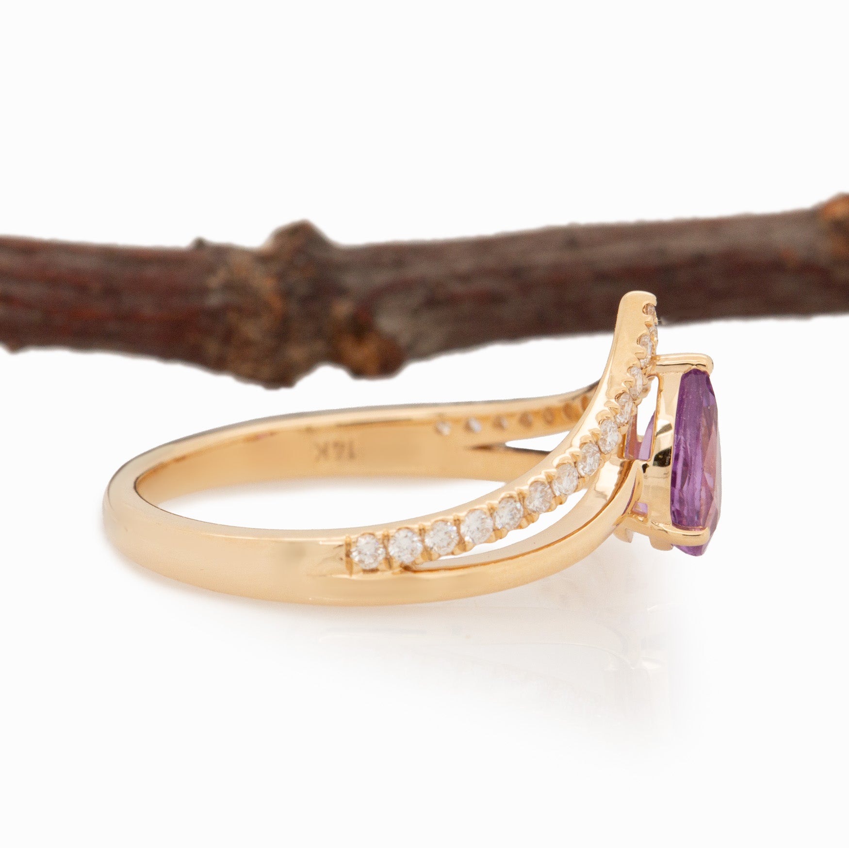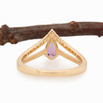 Silvia Solid 14k Gold Pink Sapphire Ring with Natural Diamonds Accents, 7x4mm