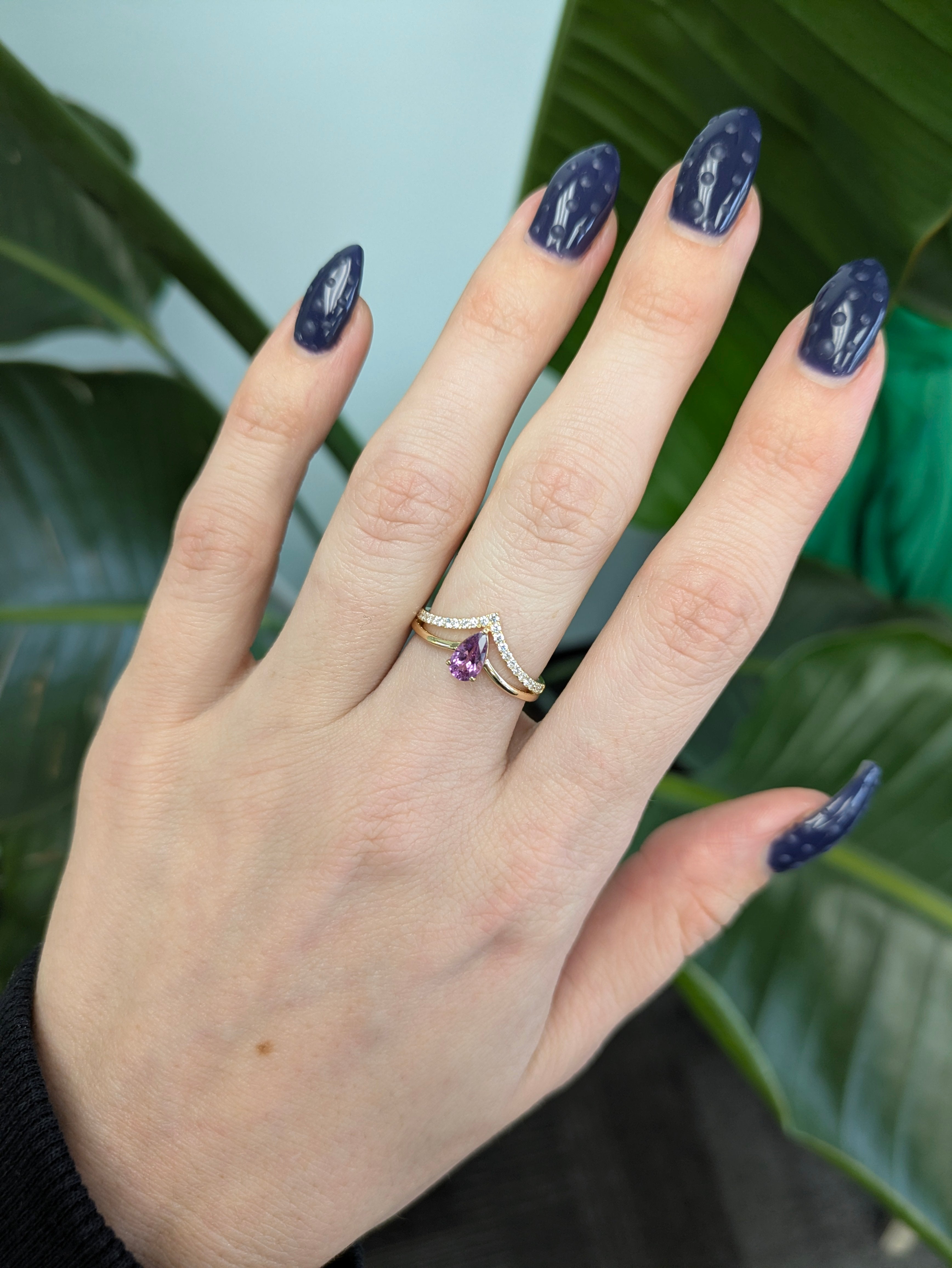Pink Sapphire Ring with natural diamond accents, crafted in solid 14K gold for lasting beauty, featuring a 7x4mm pink sapphire centerpiece that glows with soft color and elegance, complemented by sparkling natural diamonds in a timeless and refined design
