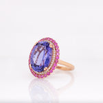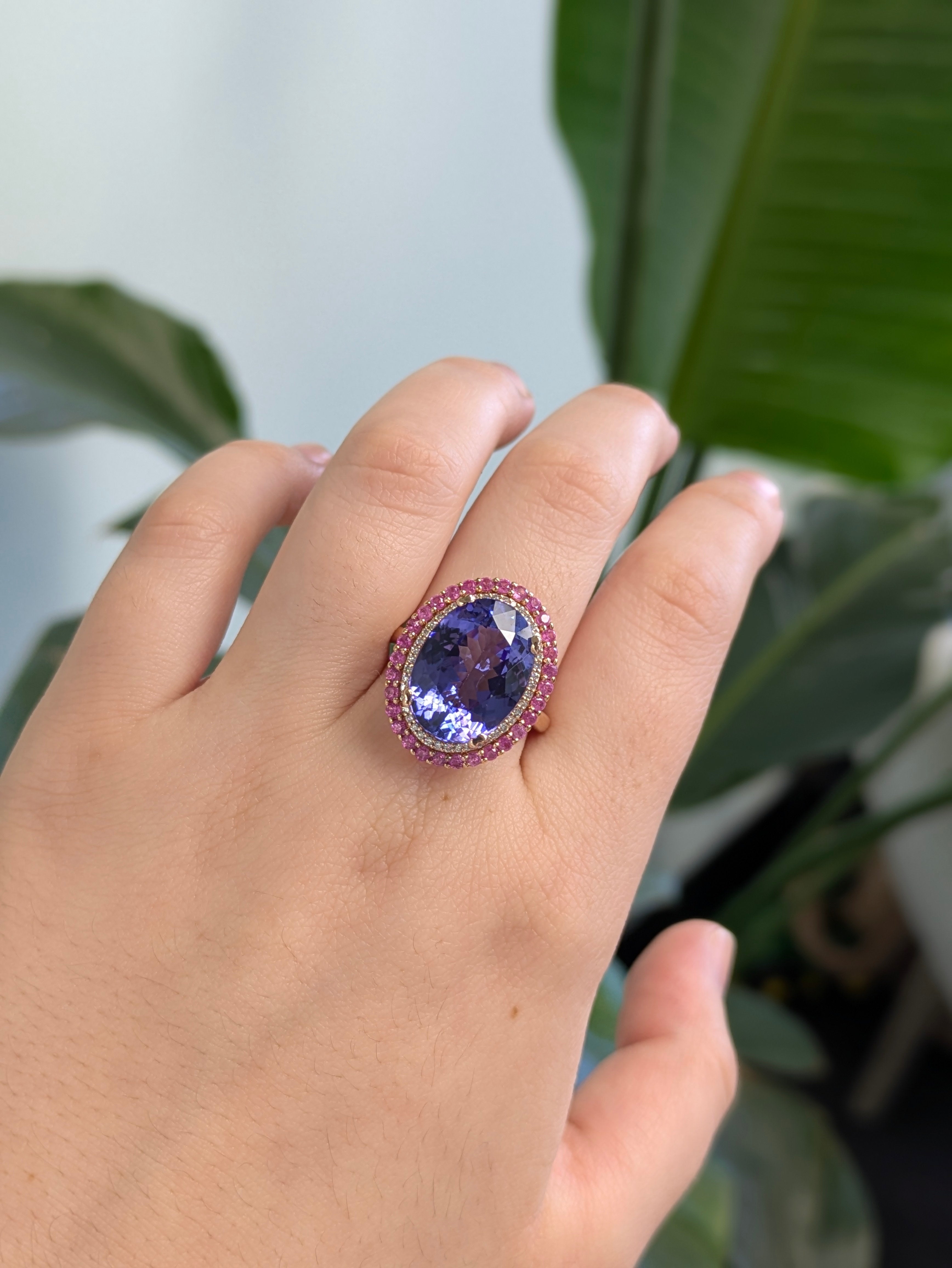 Nola 14k Dual Gold Tanzanite Ring with Natural Diamonds and Pink Sapphire Accents | 11x8mm