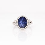 Tova Solid 14k White Gold Star Sapphire Ring with Natural Diamonds Accents, Oval 11x9mm