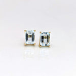Aquamarine Solitaire Studs in Solid 14K Gold | Emerald Cut 7x5mm 8x6mm