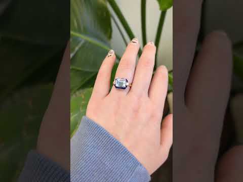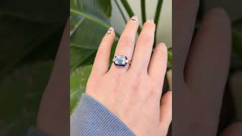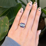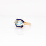 Arabella Sky Topaz Ring with Natural Diamonds Accents: 14k Solid Gold, Emerald cut 8x6mm