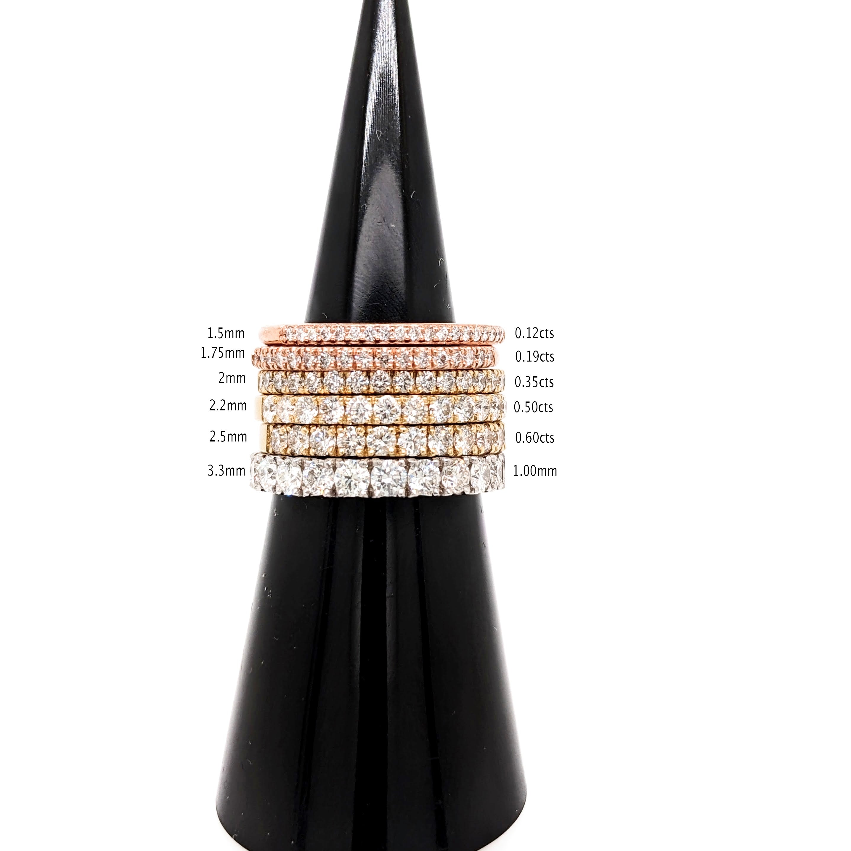 Natural diamond eternity bands available in different widths. The diamonds go all the way around. Low profile bands pair with most rings and make perfect stackers!!!