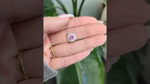 Eloise Solid 14K Gold Pink Sapphire Pendant Attached Chain with Natural Diamonds