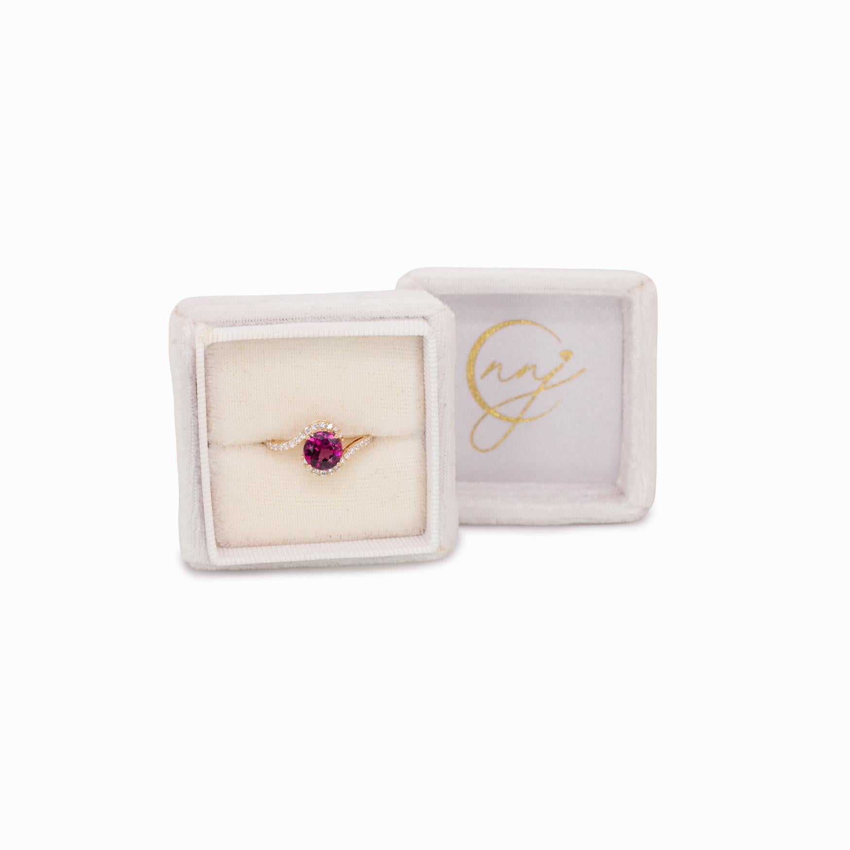 This stunning 1.8ct purple garnet ring features a bold 7mm center stone, beautifully accented with sparkling natural diamonds for timeless elegance. Expertly crafted in solid 14k gold, it offers both durability and everyday wearability. Perfect as a statement piece, cocktail ring, or gift for her, this ring combines luxury, style, and sophistication in one unforgettable design.