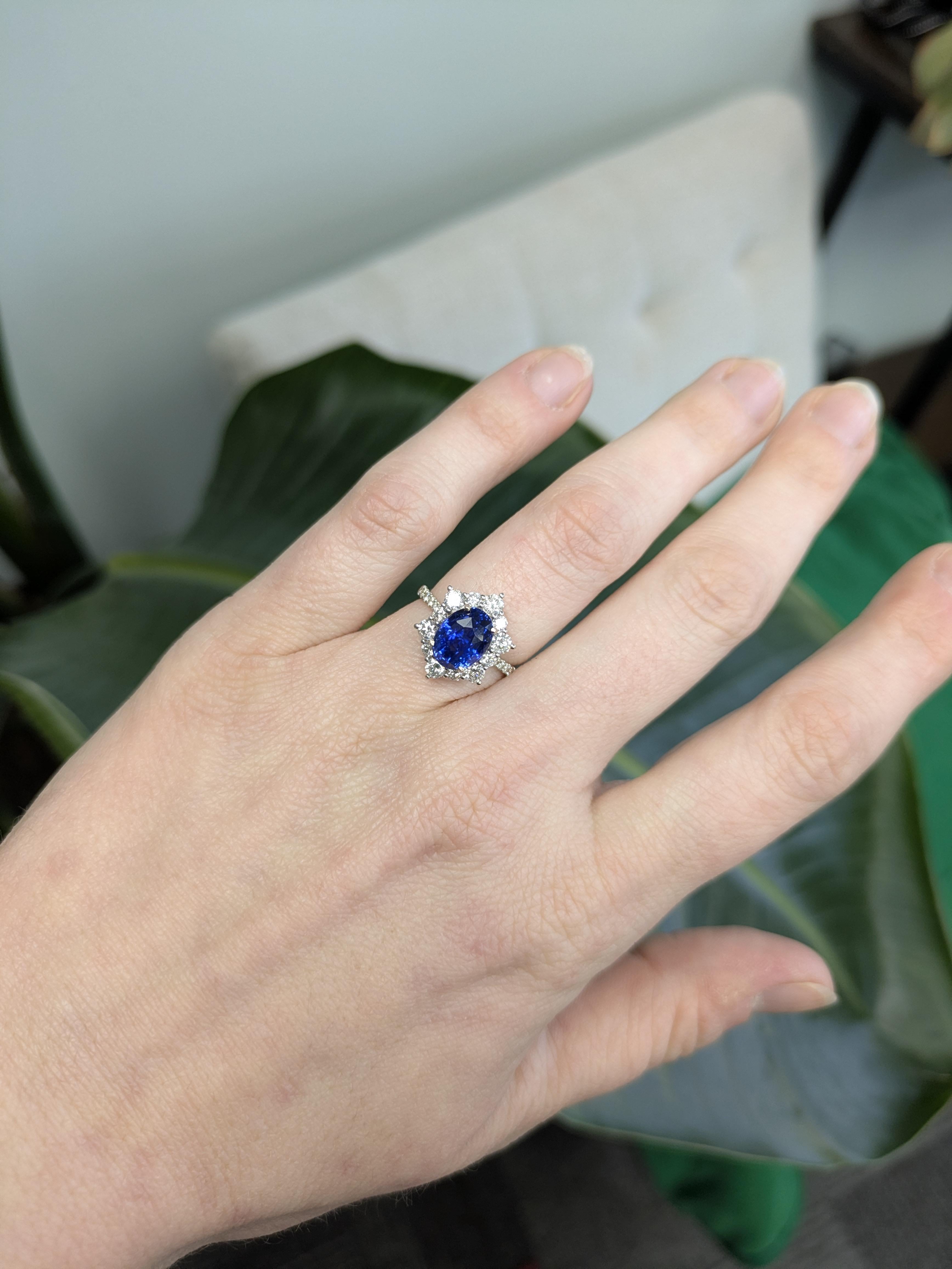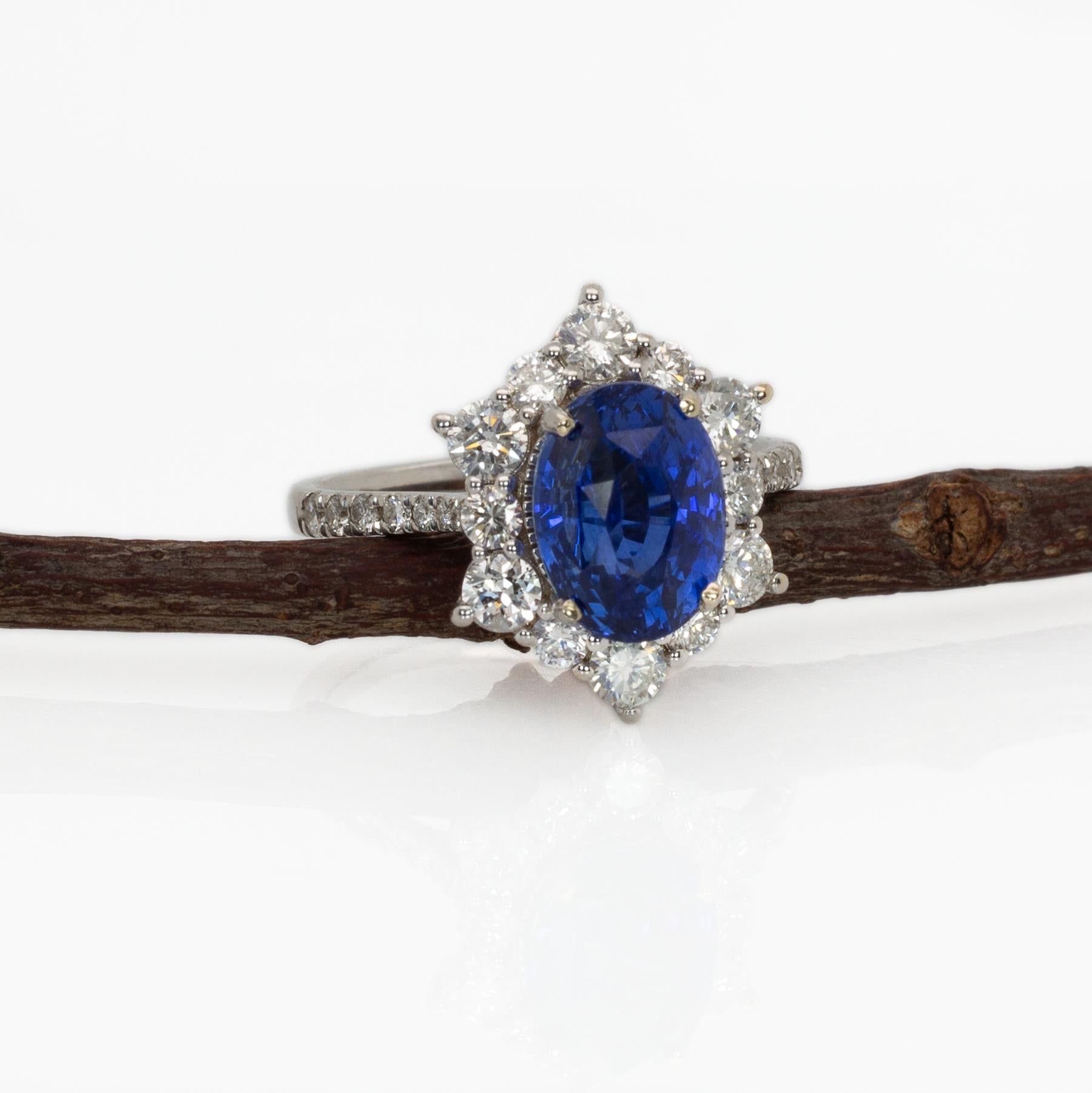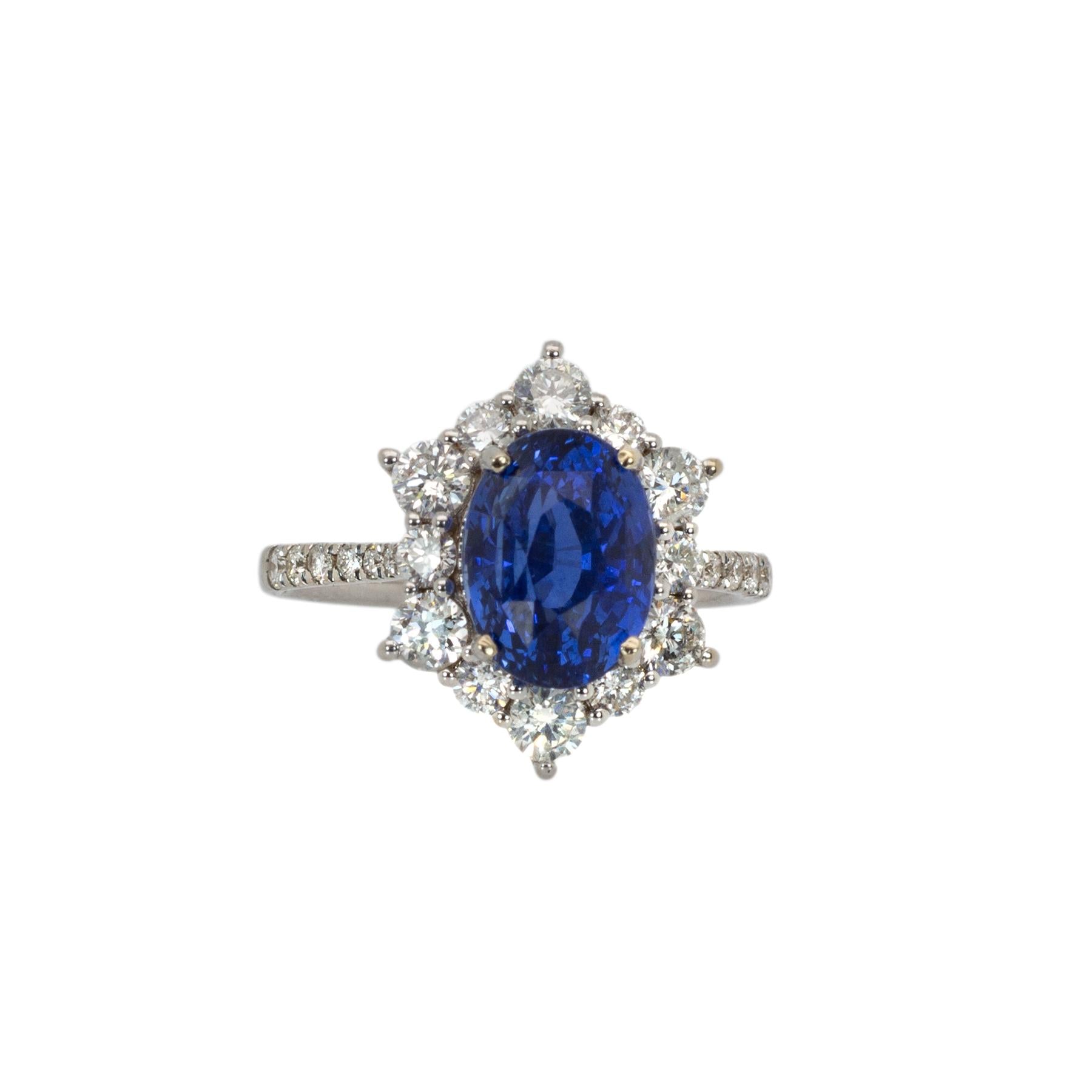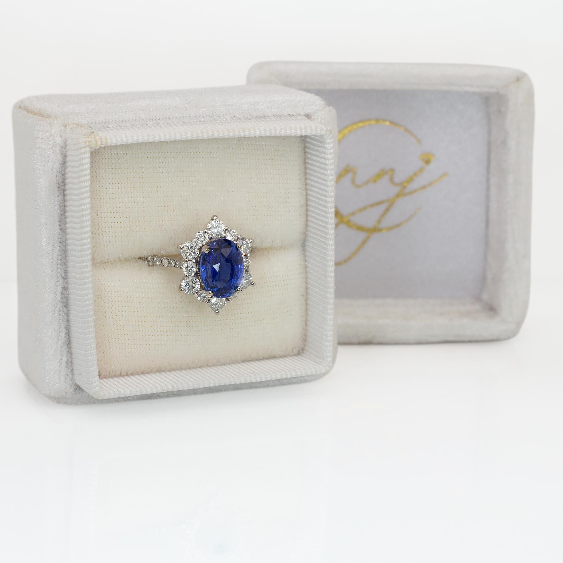 Irmak Solid 14k Gold GIA Certified Blue Sapphire Ring with Natural Diamonds Accents, Oval 8x6mm