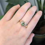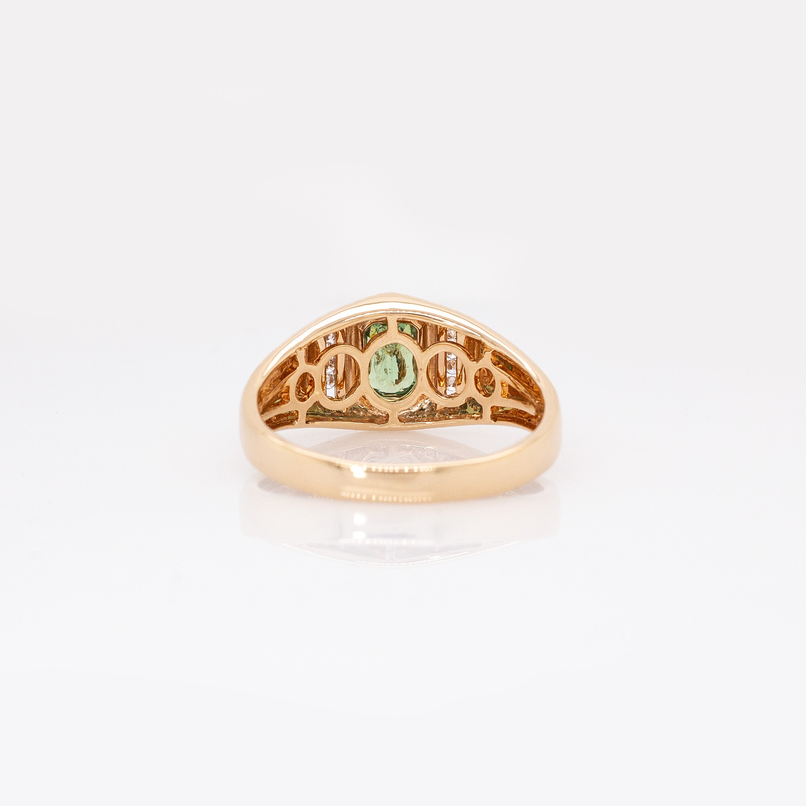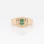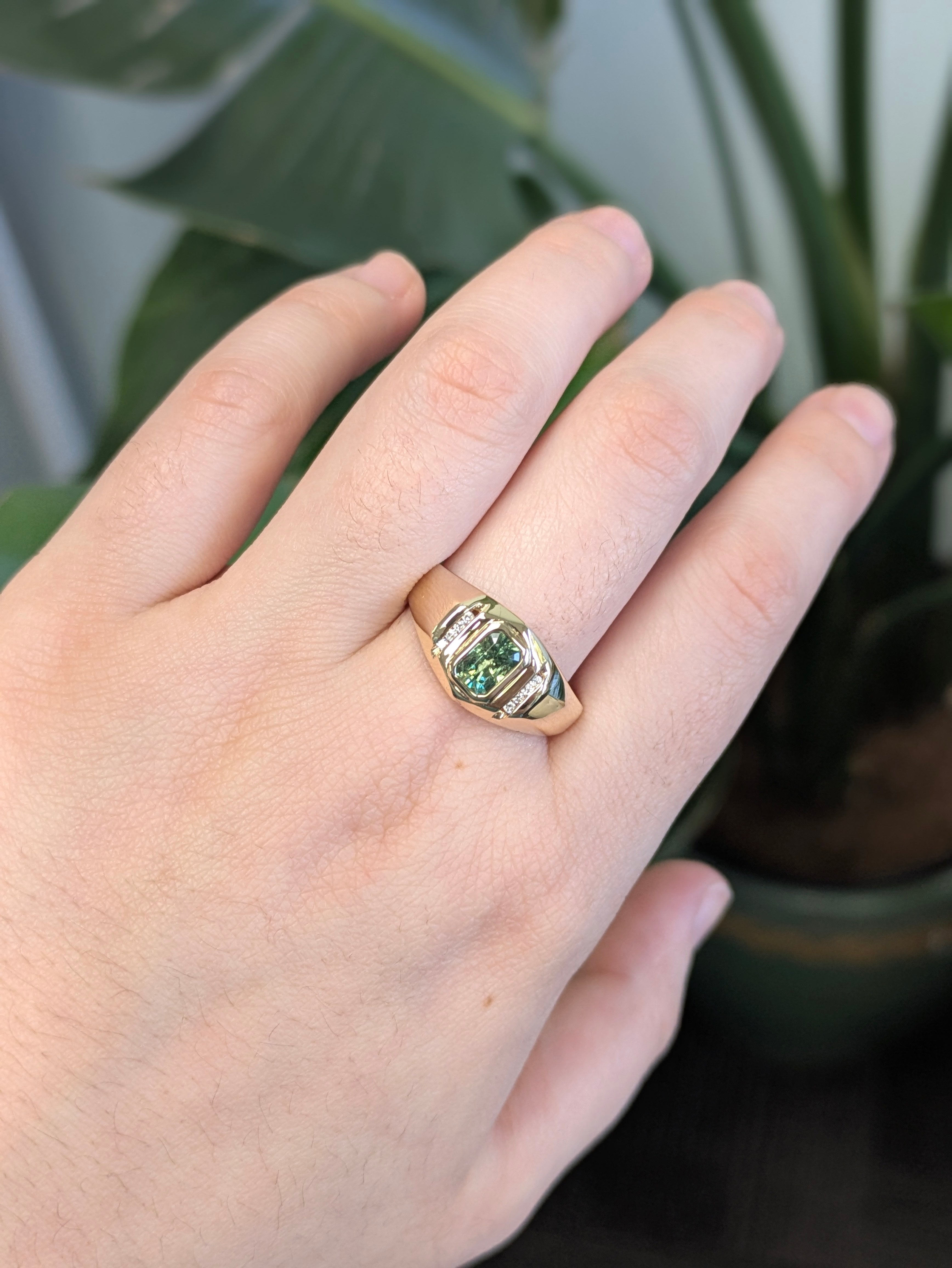 Meghna Demantoid Ring with Natural Diamond Accents: 14k Solid Gold, Emerald cut 6x4mm