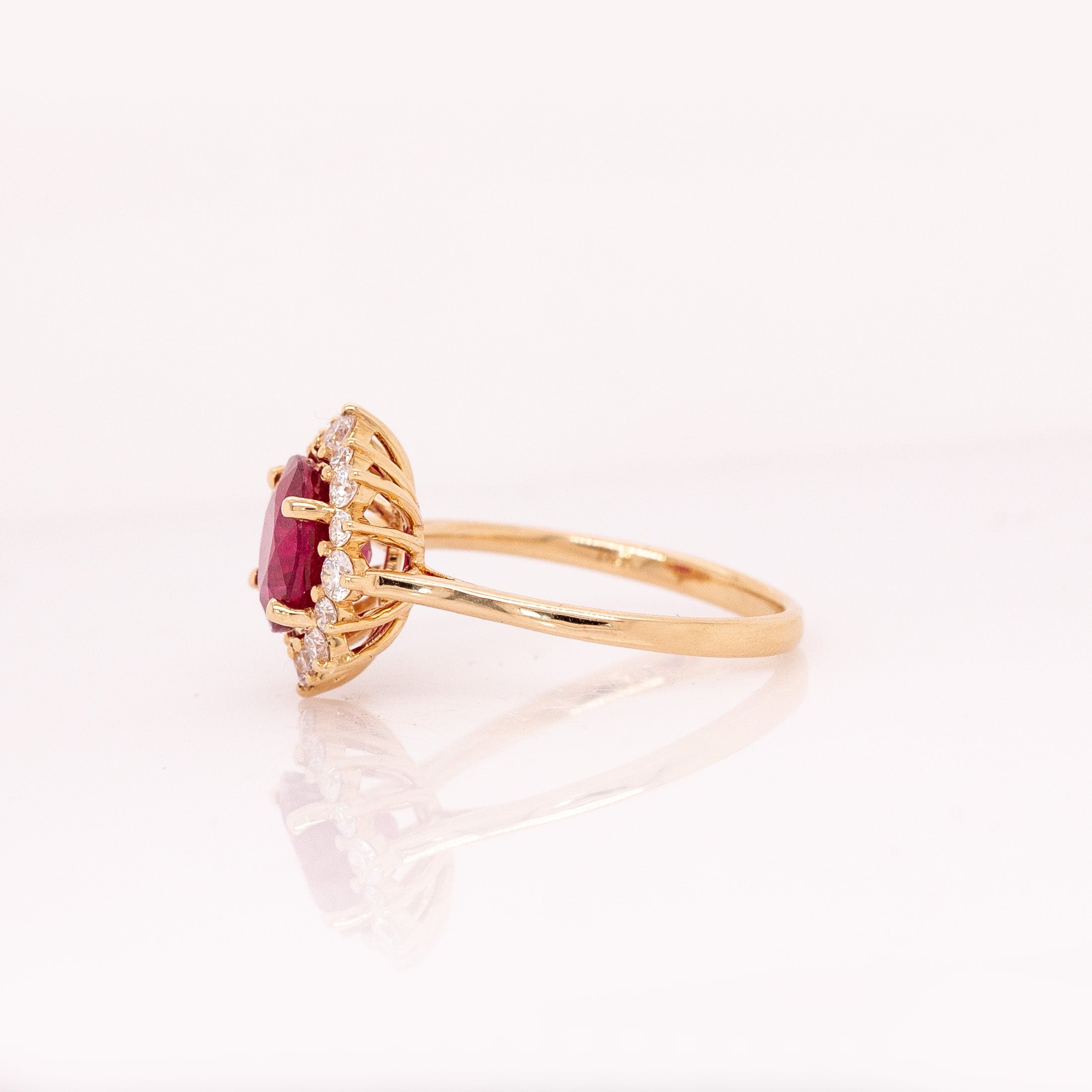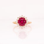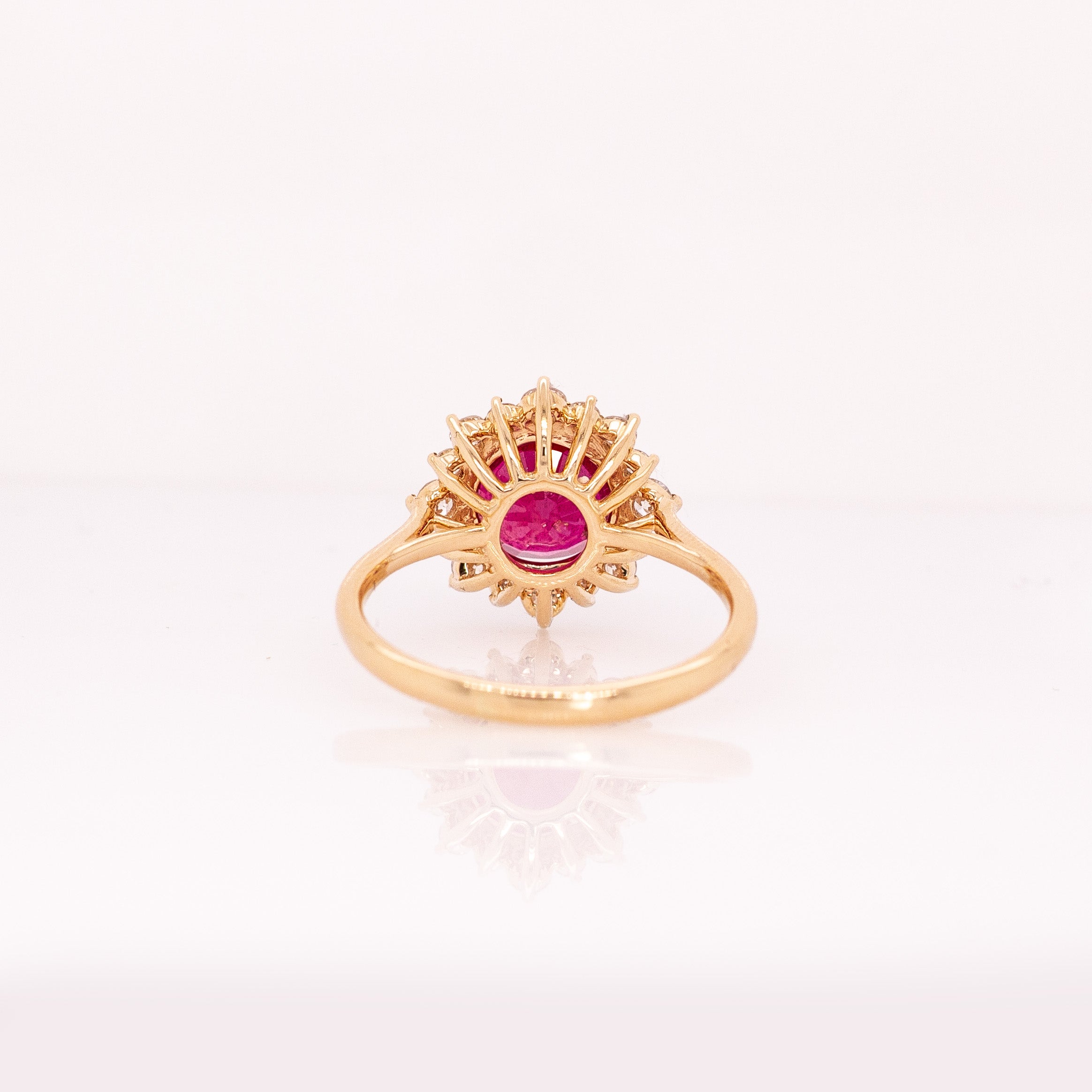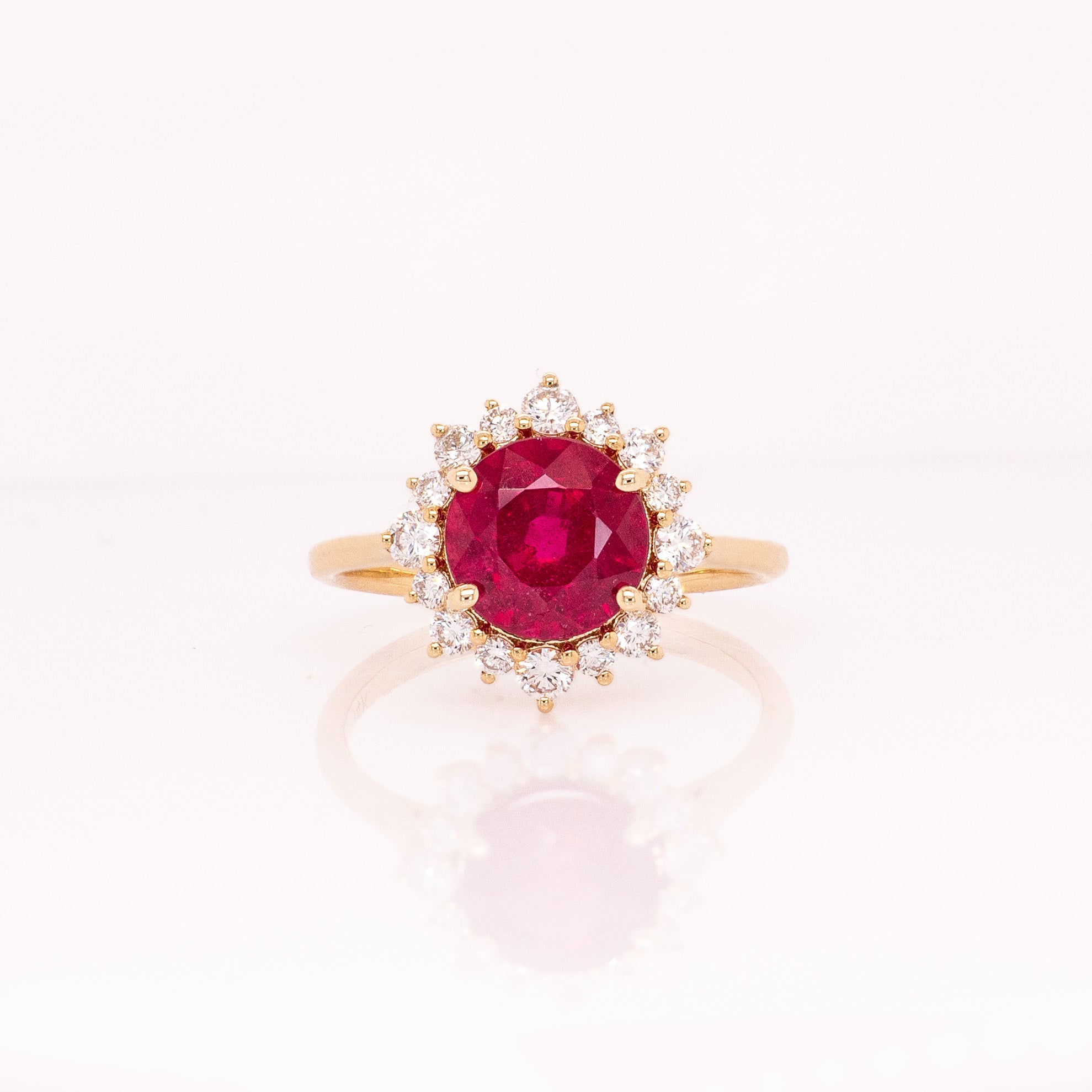 Turn heads with this stunning 2.8-carat Madagascar ruby ring, masterfully set in solid 14k gold. The 8mm round-cut ruby commands attention with its rich, vibrant hue, while sparkling natural diamond accents add a touch of refined glamour. Perfectly balanced, this ring exudes timeless elegance and sophisticated charm. A true statement piece for any jewelry collection.