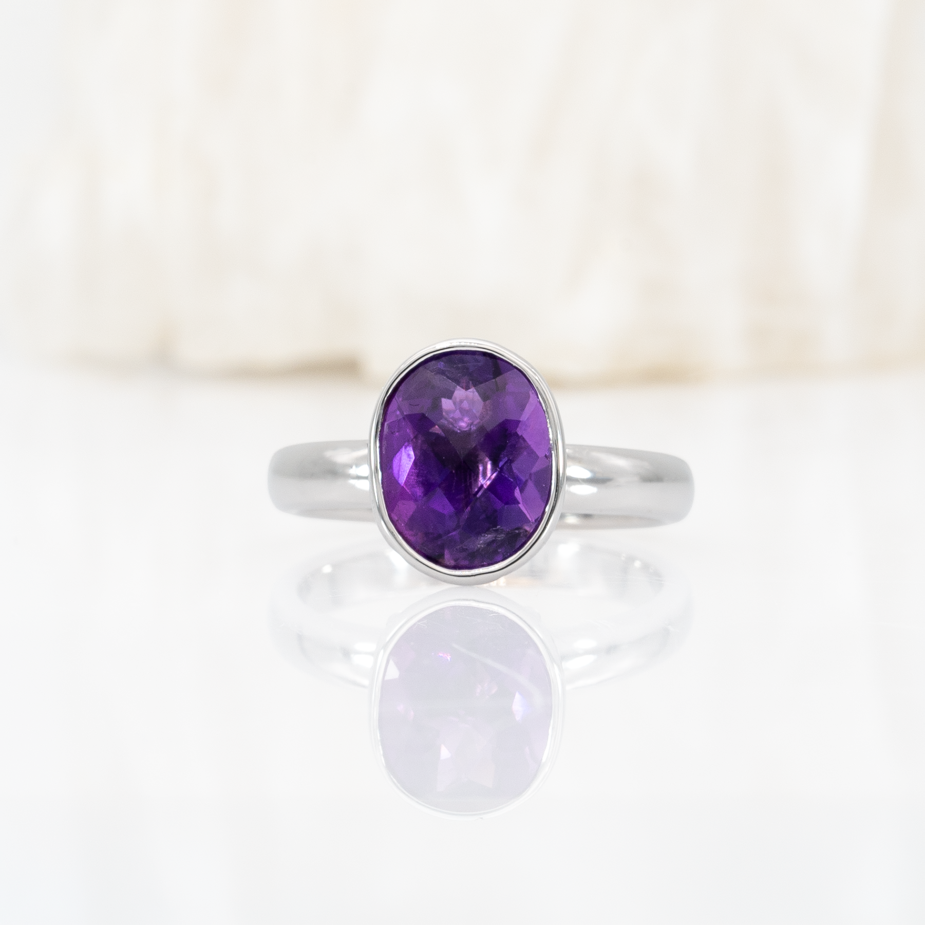Simone 2.6Ct Amethyst Solitaire Ring with Bezel Setting: Solid 14K Gold, Oval 10x8mm