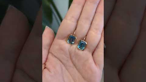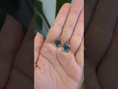 These beautiful lever back earrings feature a pair of emerald cut Swiss Blue Topaz gemstones set in solid 14K gold. These solitaire drops can be a lovely December birthstone gift for your loved ones!