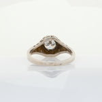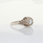 Crafted in solid 14K gold, this estate vintage ring features a brilliant 5mm natural round diamond, radiating timeless elegance and heirloom charm. The intricately designed shank adds depth and character, bringing a touch of vintage artistry to this classic diamond silhouette.