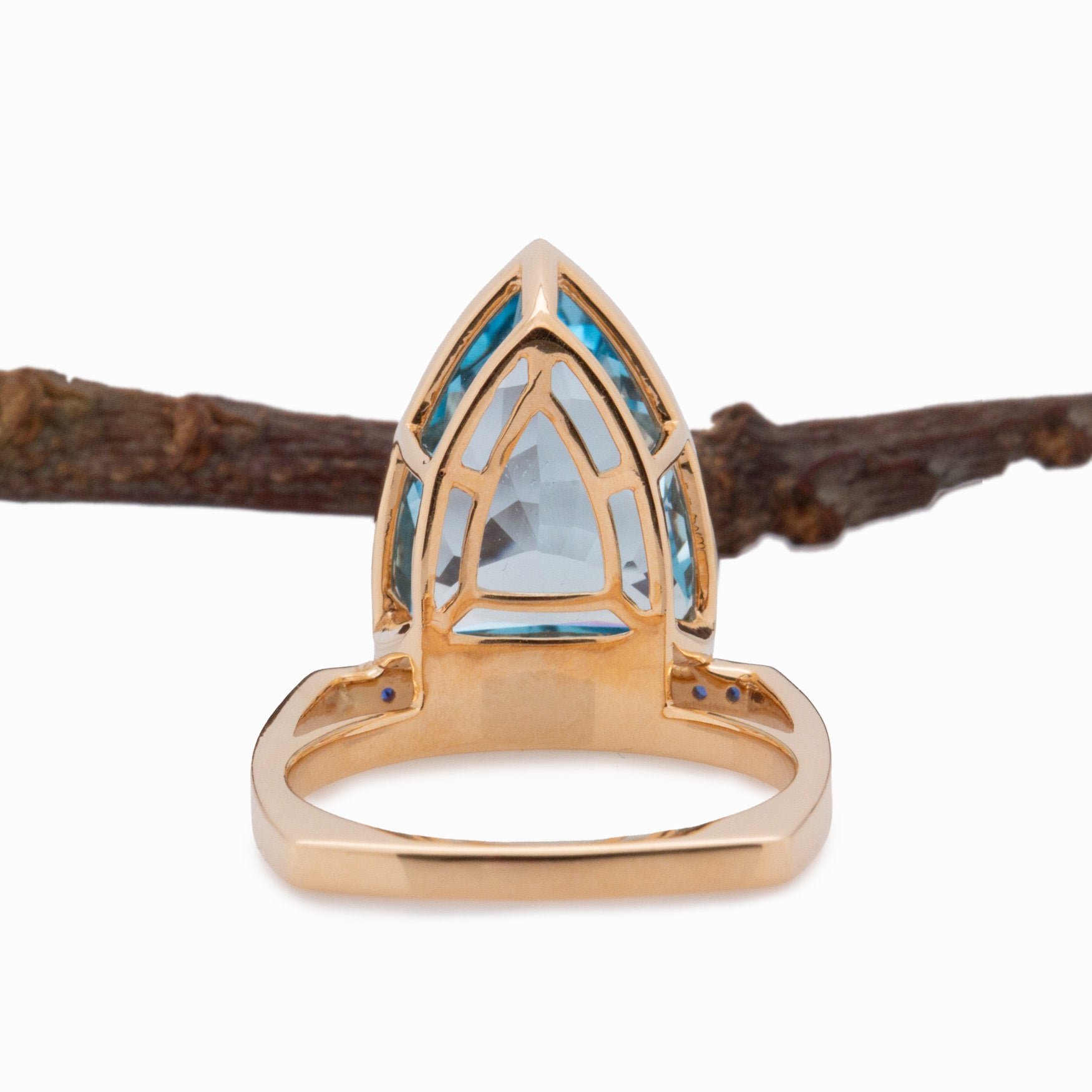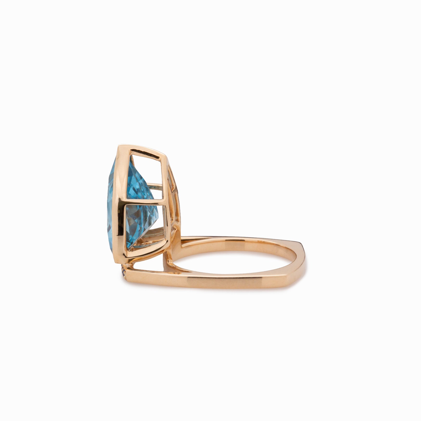 Vivien Solid 14k Gold: Swiss Topaz Ring with Sapphire Accents, Trillion 15x12.5mm