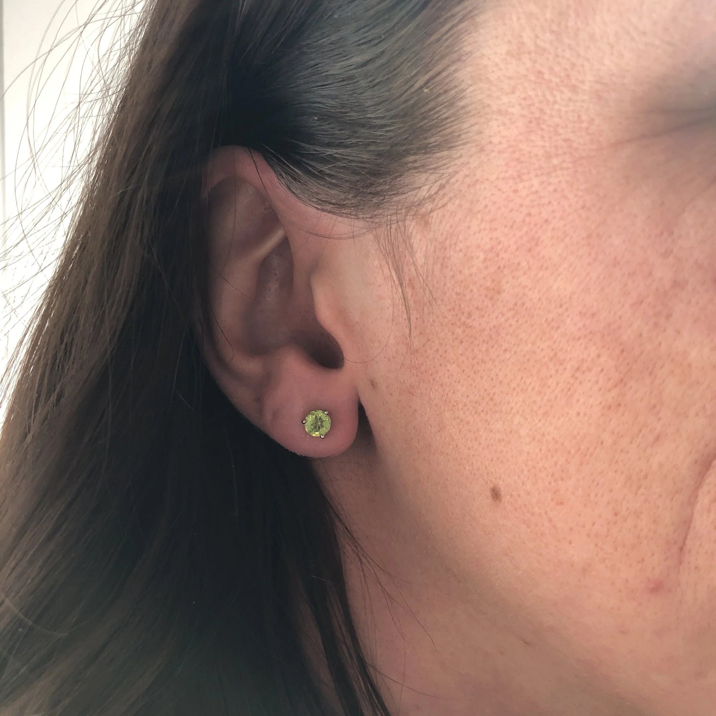 Peridot Round Martini Solitaire Stud Earrings | 3mm 4mm 5mm 6mm 7mm 8mm