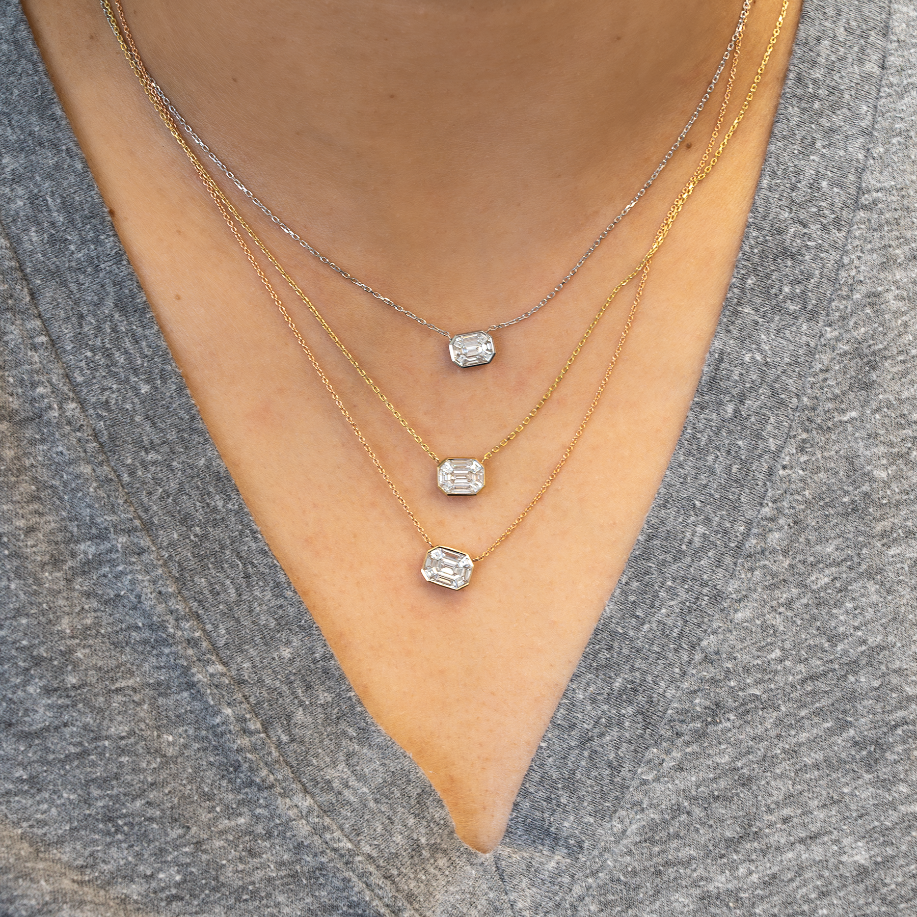 Lab Grown Diamond Necklace in Solid 18K Gold with Attached Chain