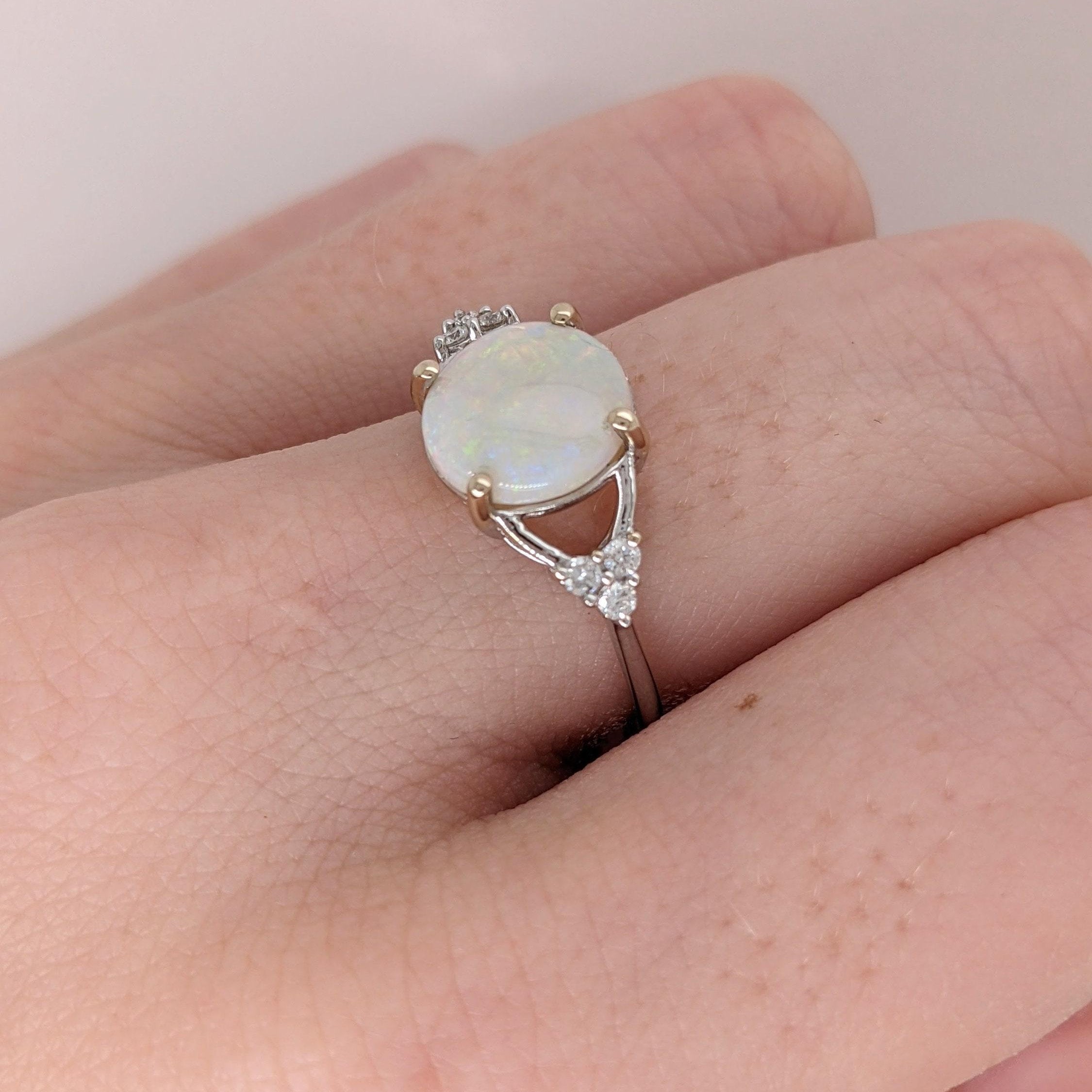 Multi Color Jelly Opal Ring in 14K Yellow Gold with Diamond Accents | Round 9.5m