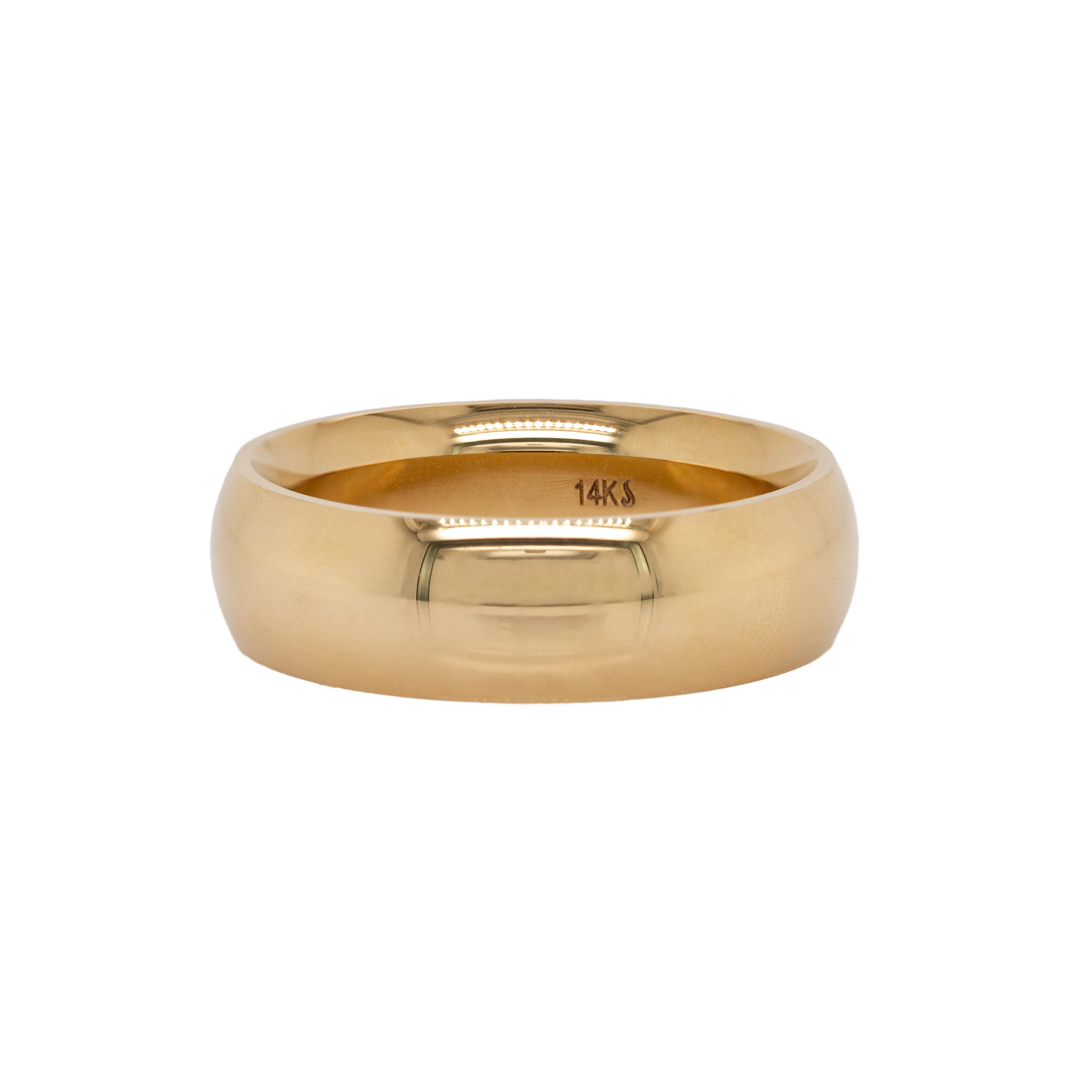 7mm Half Round Comfort Fit Wedding Band: Solid 14k Yellow Gold