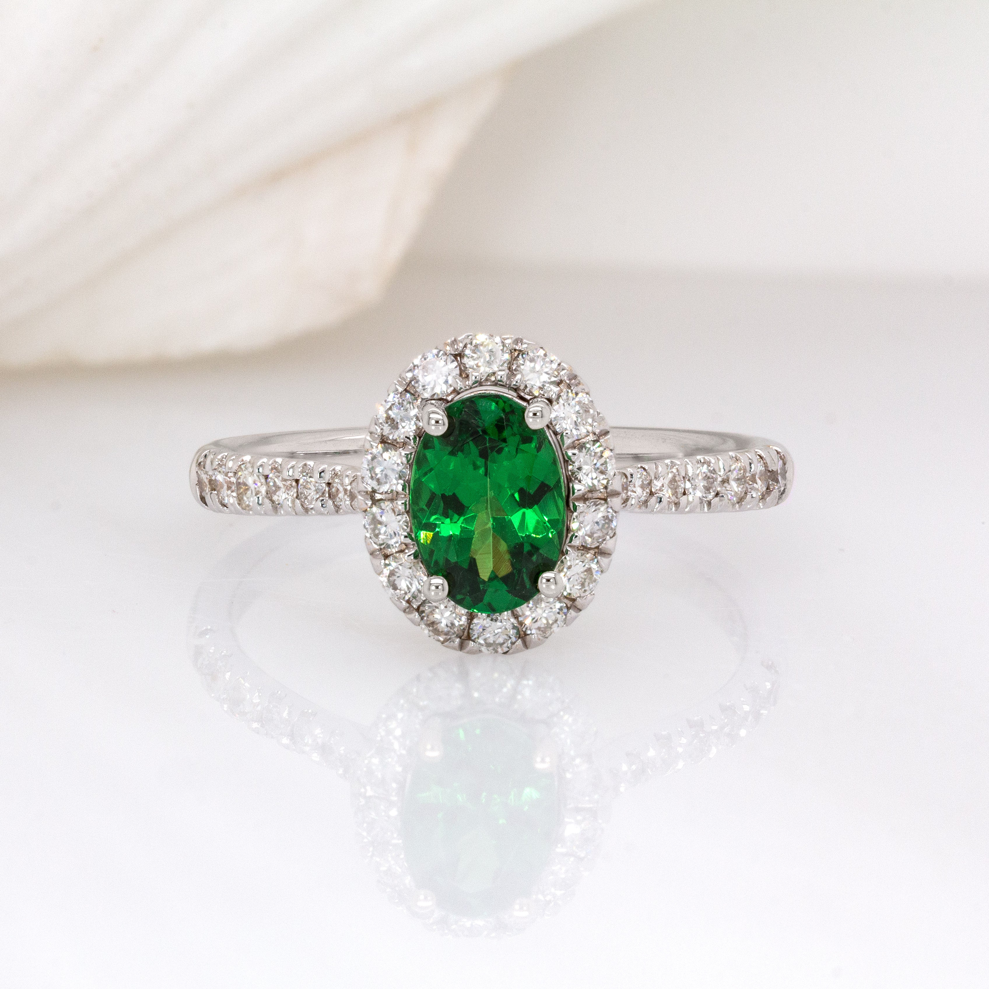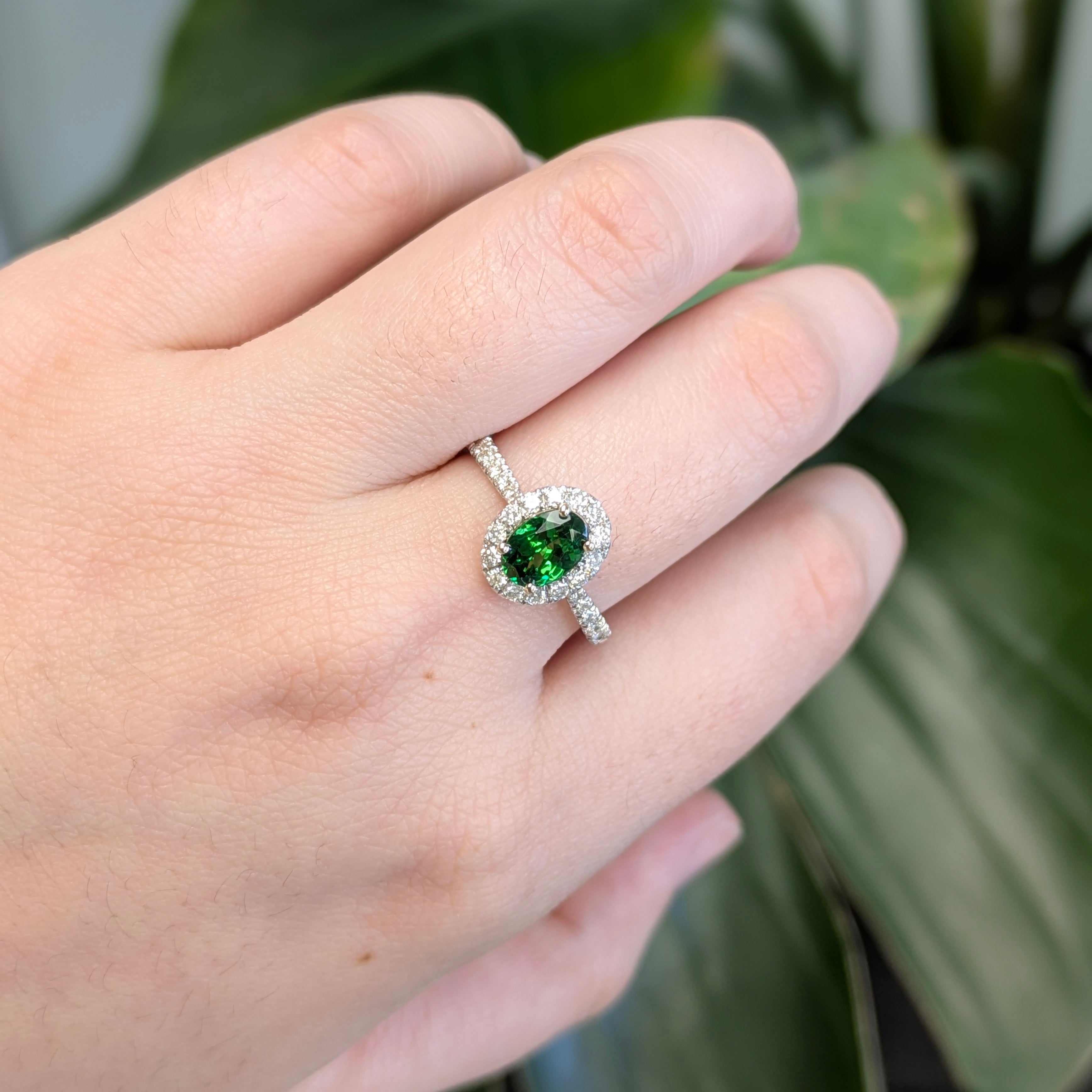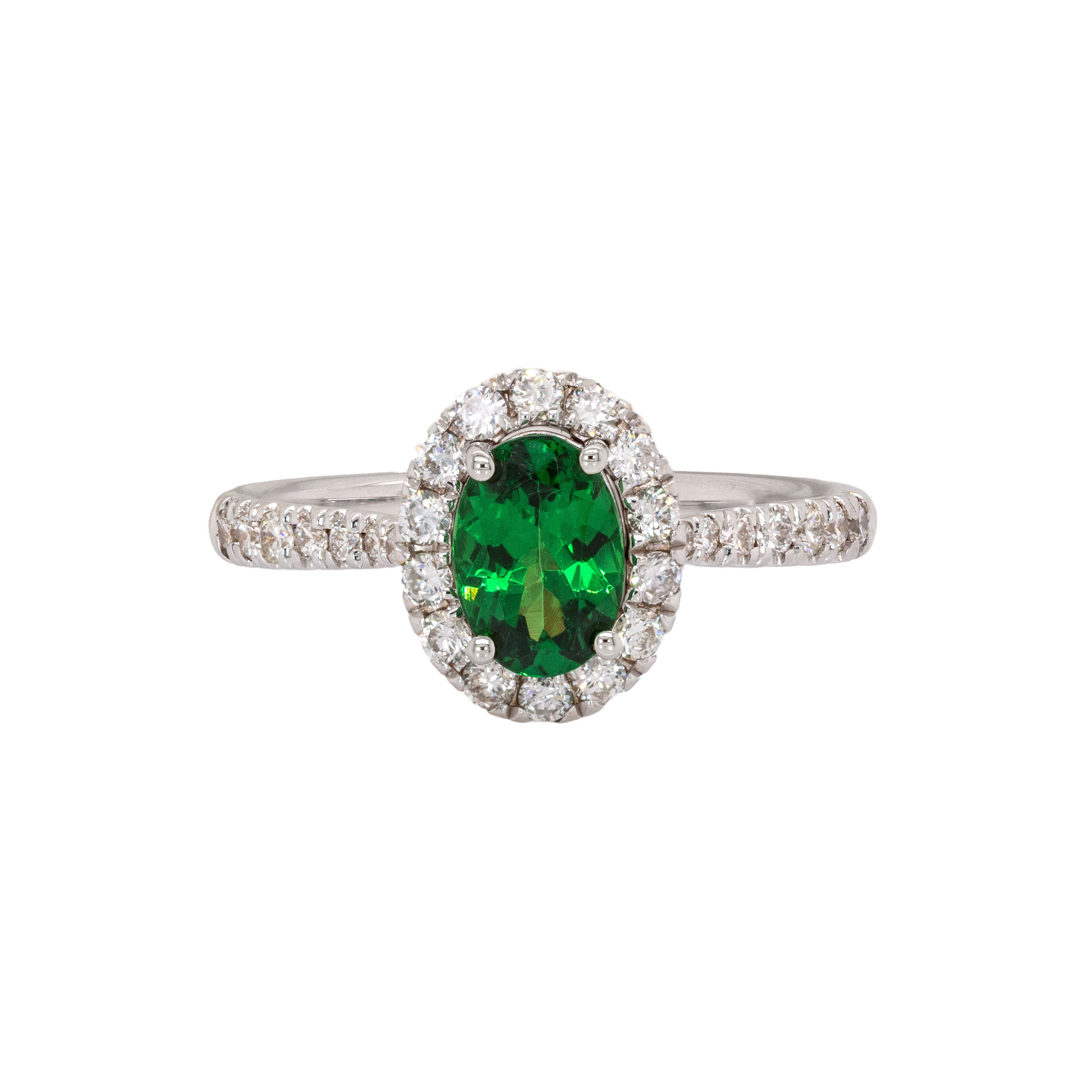 Avienne Solid 14k White Gold Tsavorite Garnet Ring with Natural Diamond Accents | 7x5mm