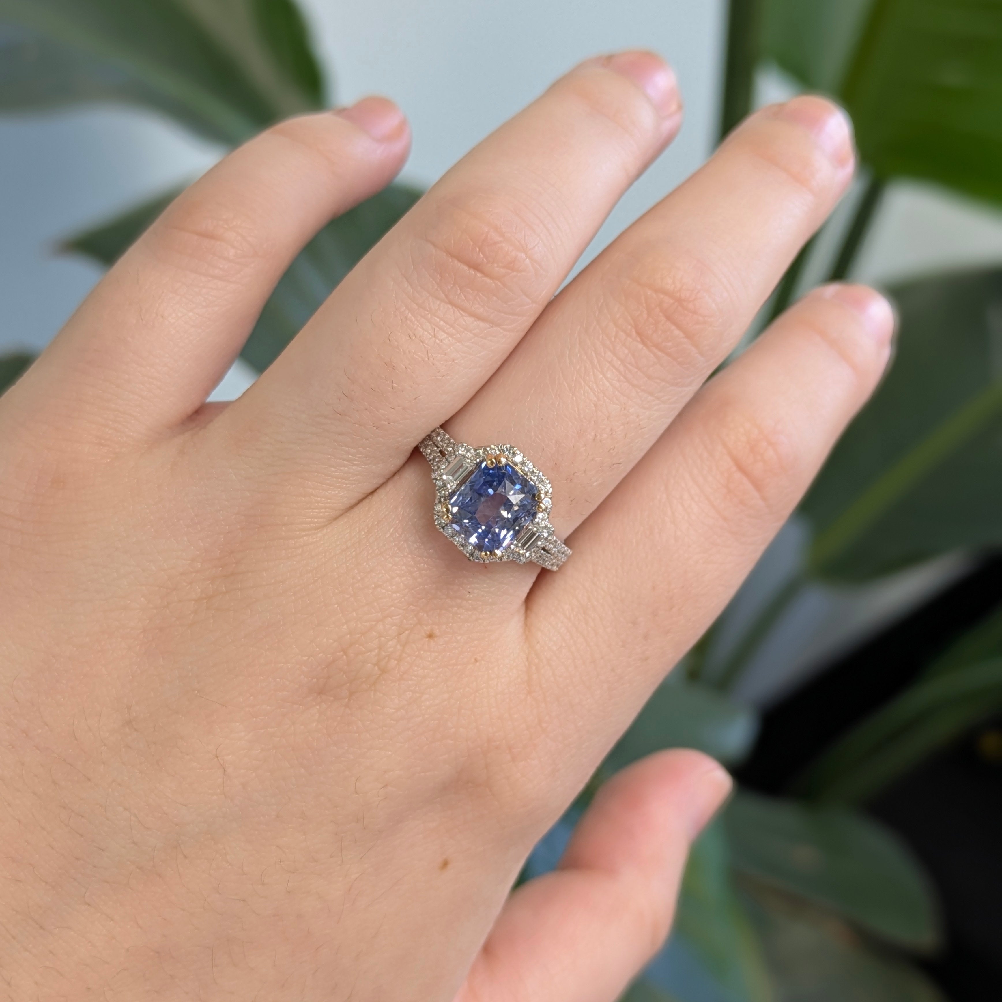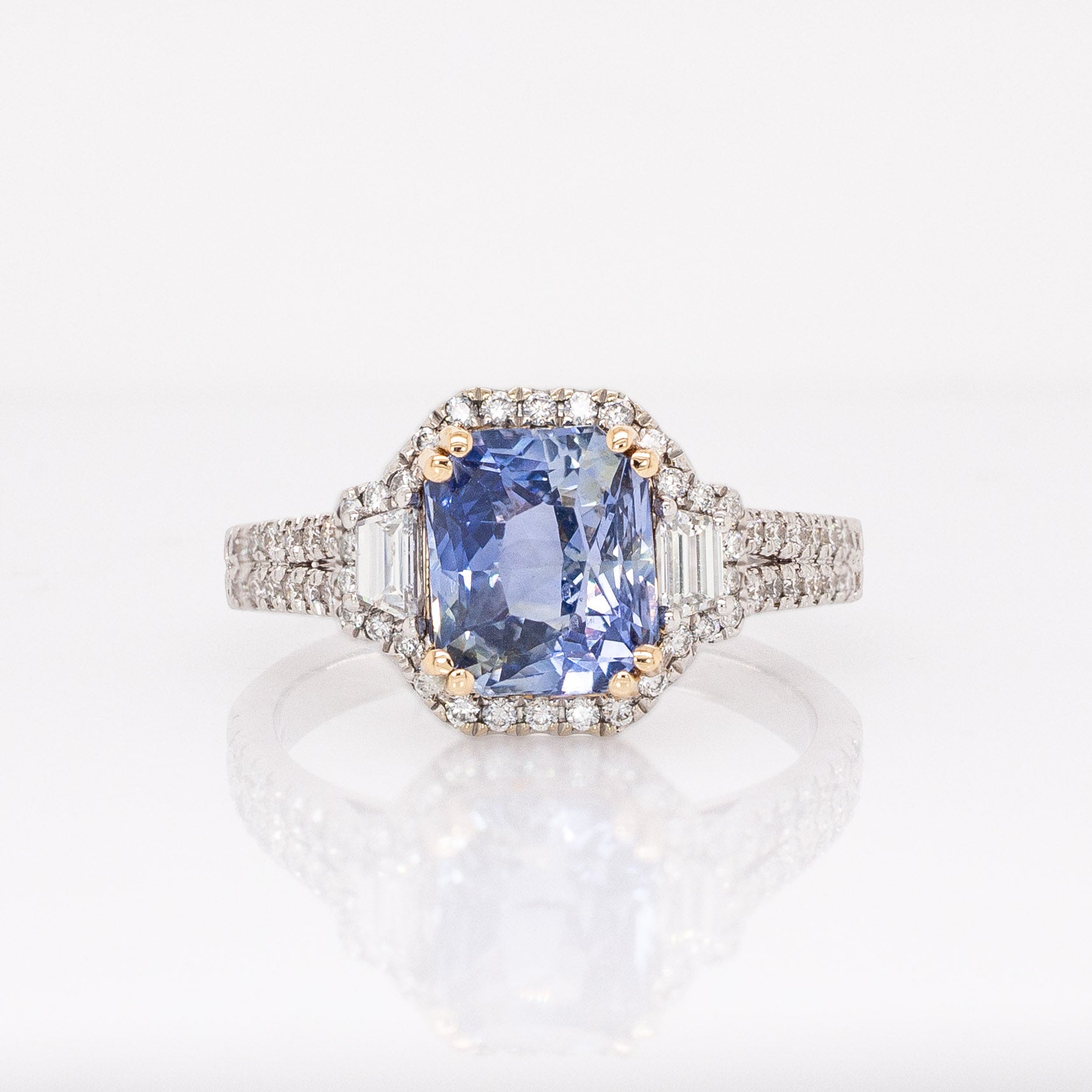 Genevieve 14K Solid Gold Cornflower Blue Sapphire and Natural Diamonds Ring | CU 8x7mm