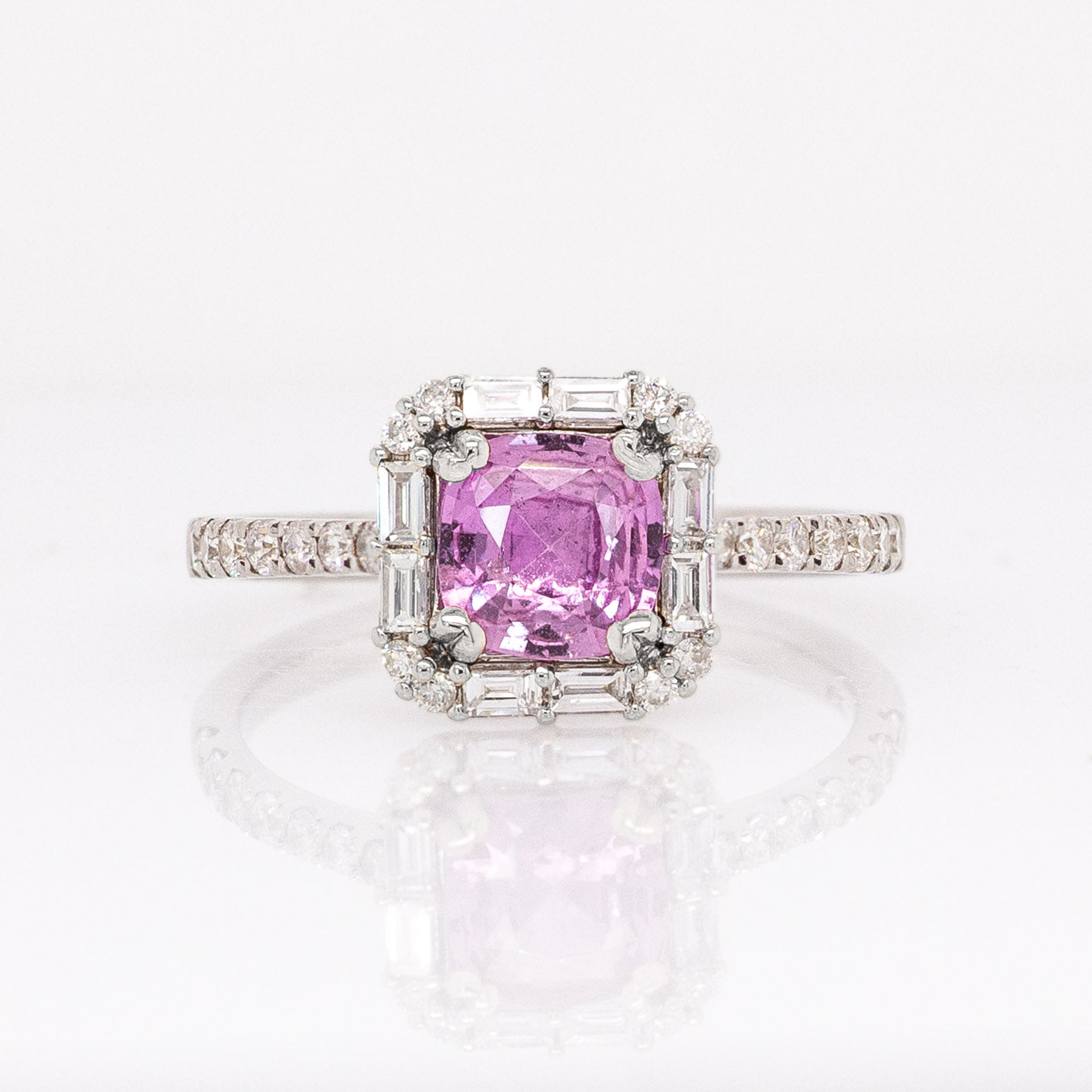 Maeve 14K White Gold Pink Sapphire and Natural Diamonds Ring | CU 6mm