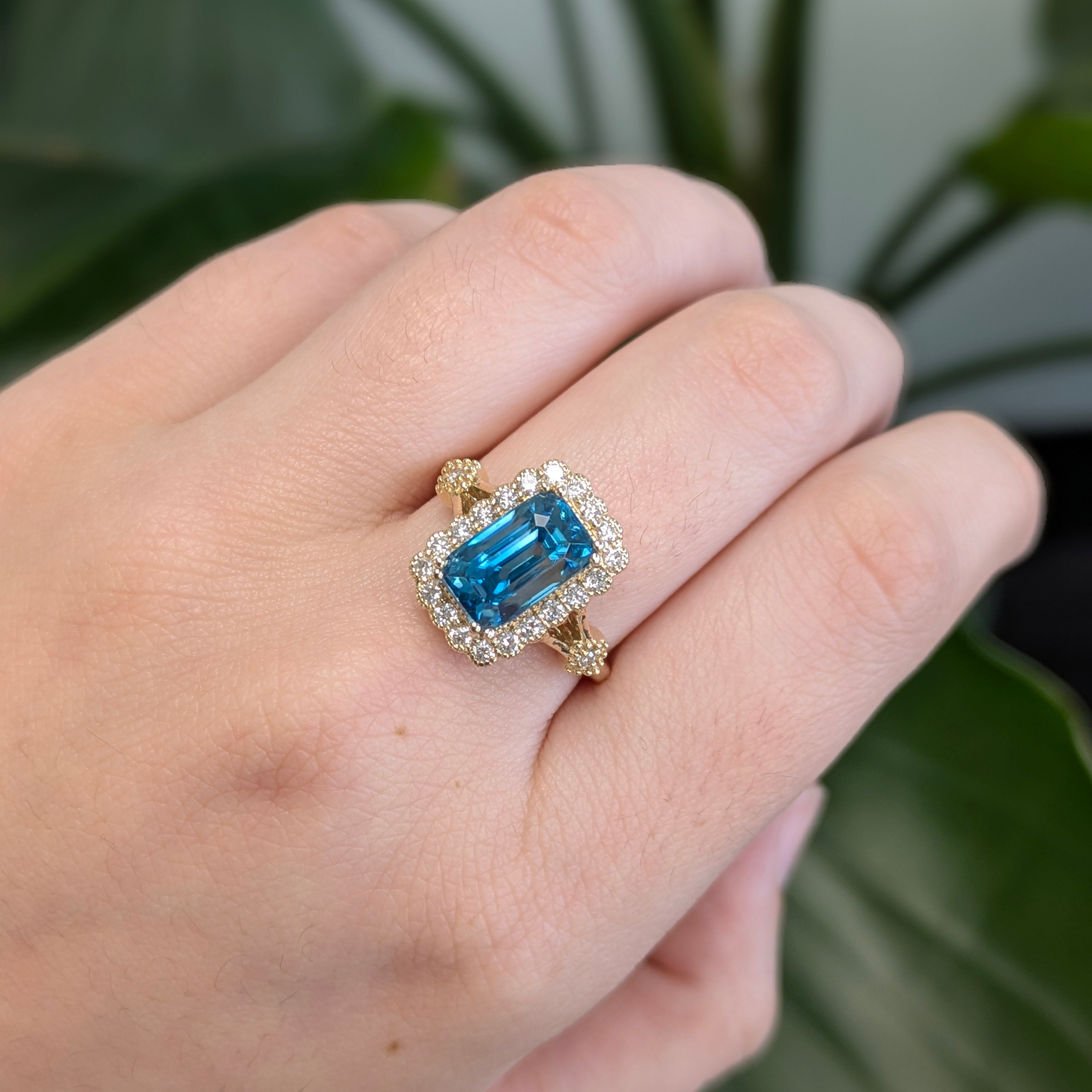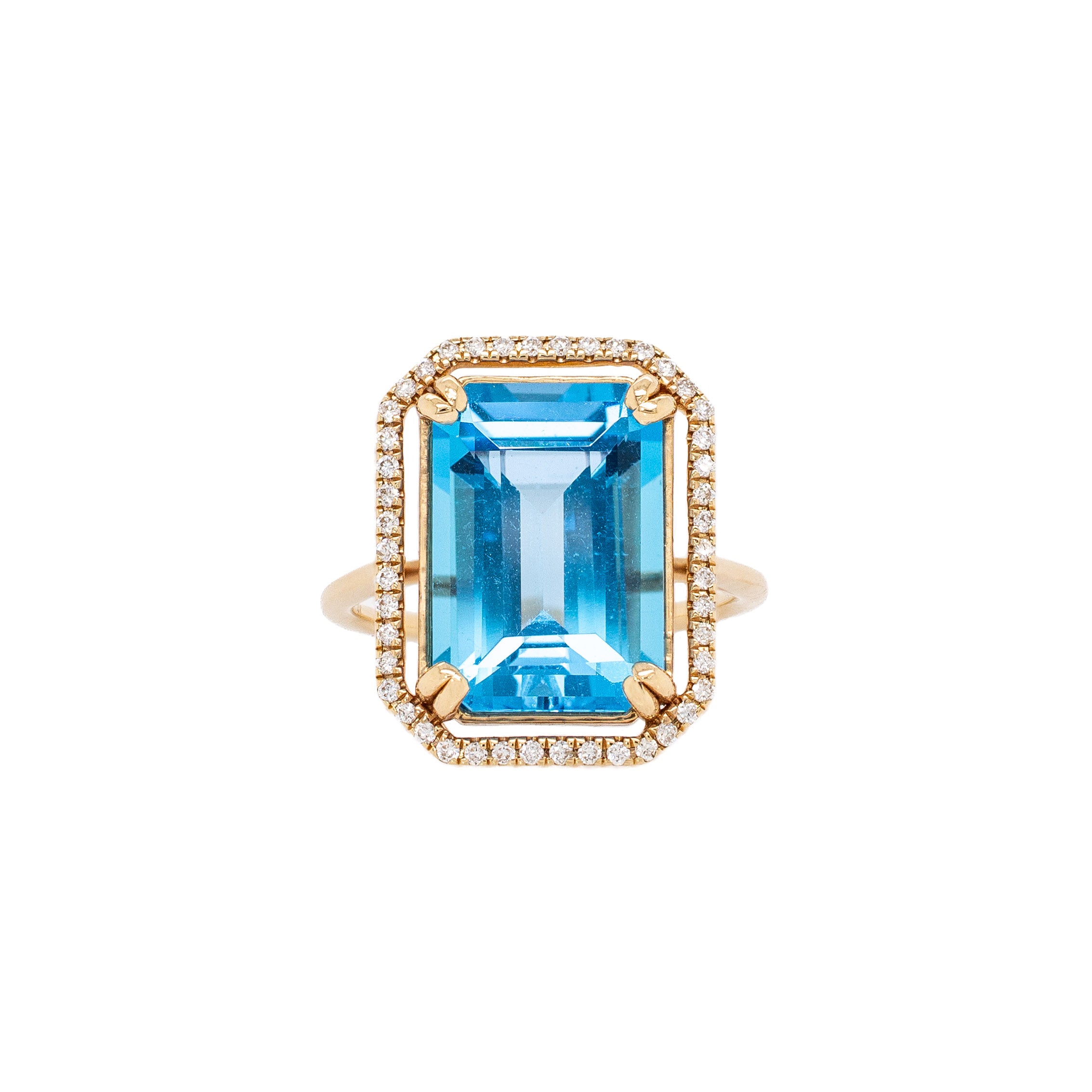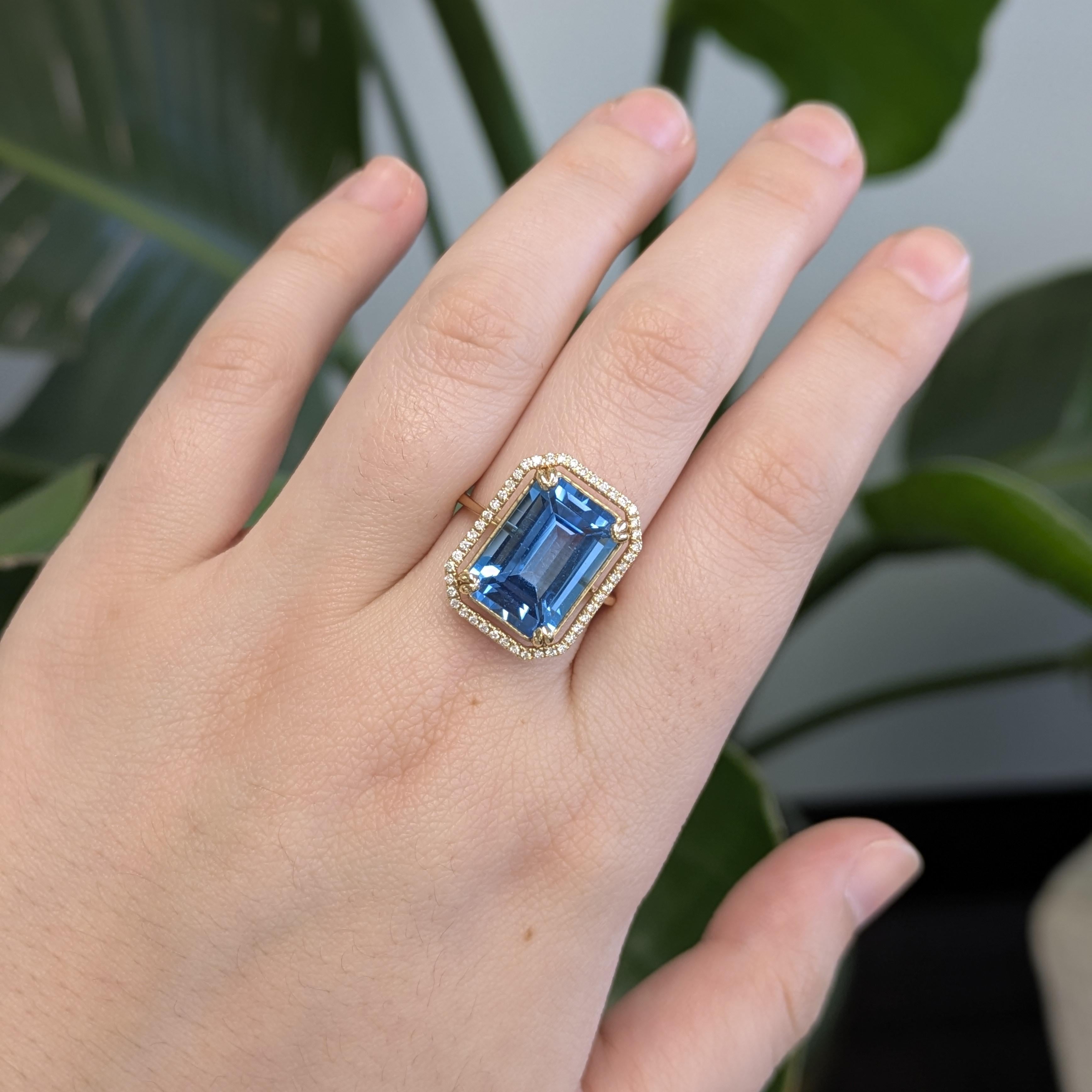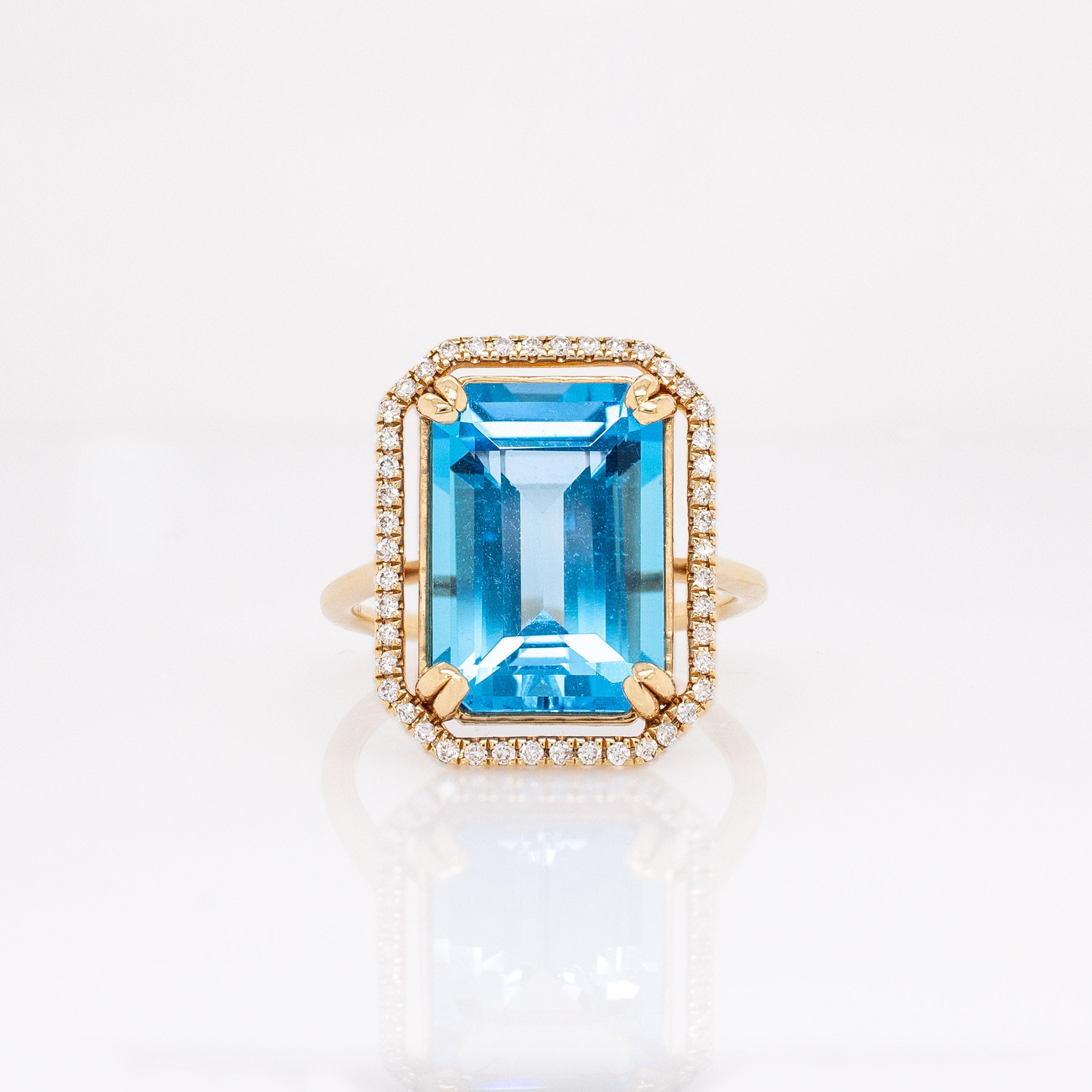 Aurelia 14k Solid Gold Swiss Topaz Ring with Natural diamonds | Emerald cut, 14x10mm