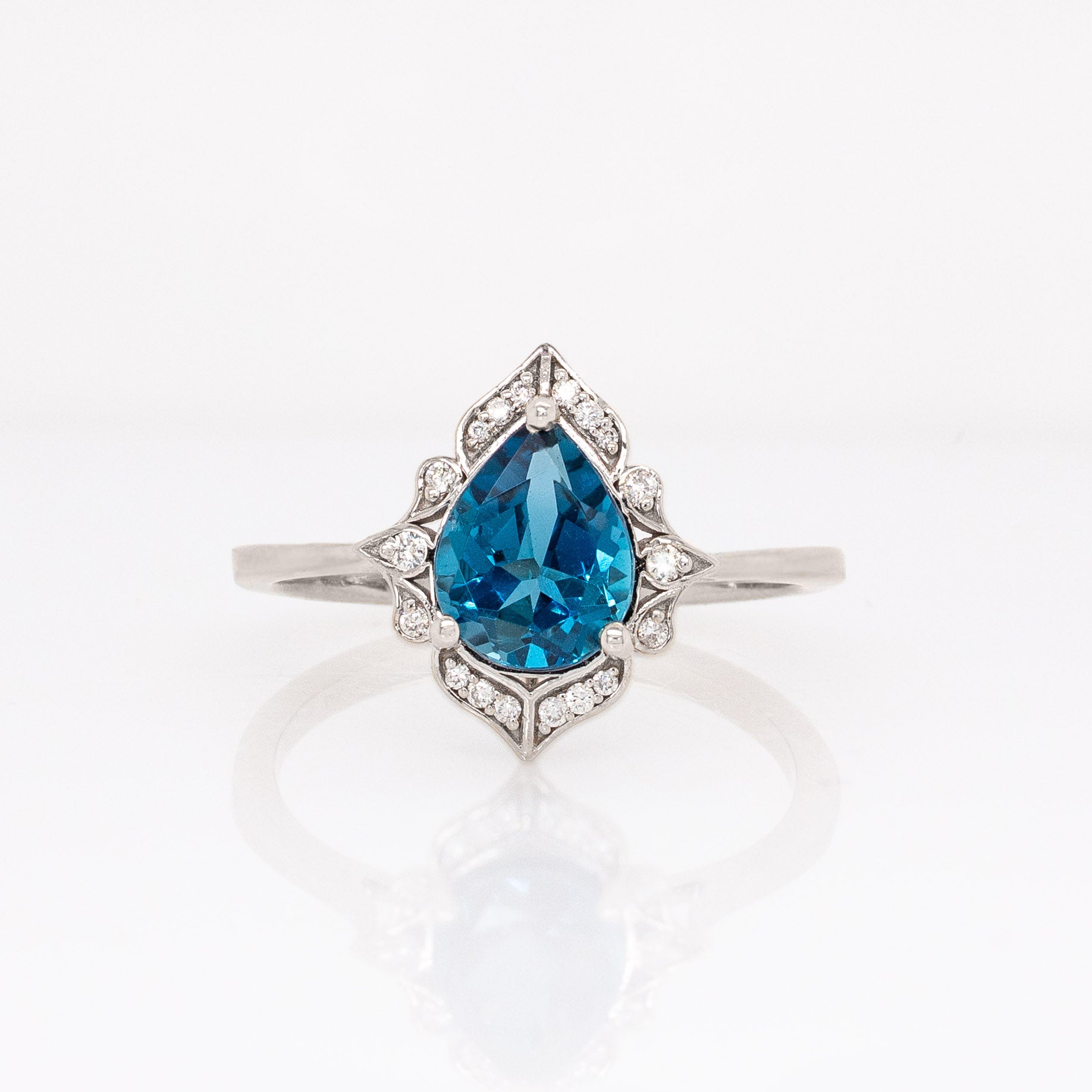 Grace 14K White Gold London Blue Topaz and Diamond Ring | PE 9x7mm