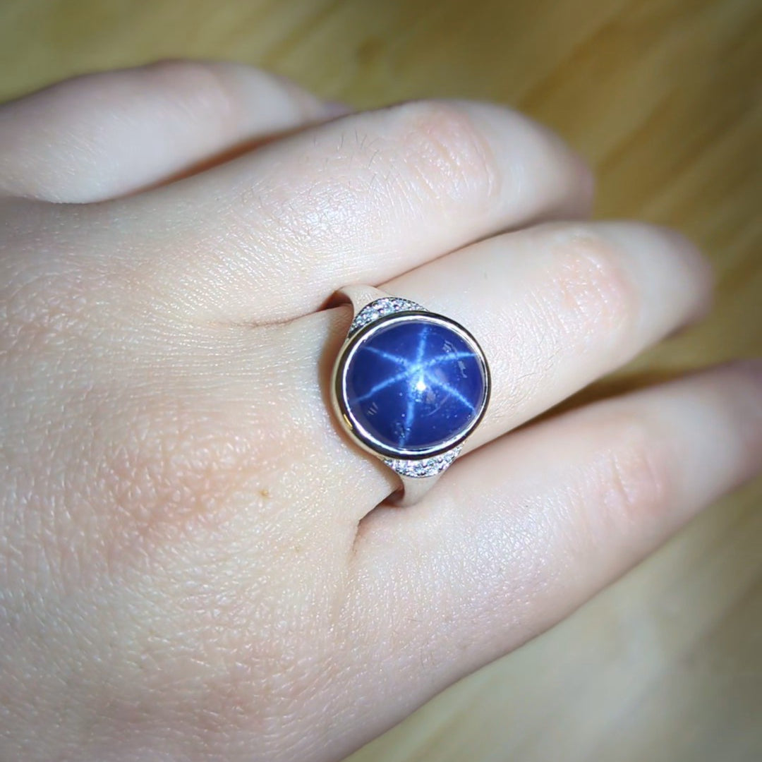 Ariana 14K Solid White Gold Star Sapphire and Diamond Ring | OV 13x11mm
