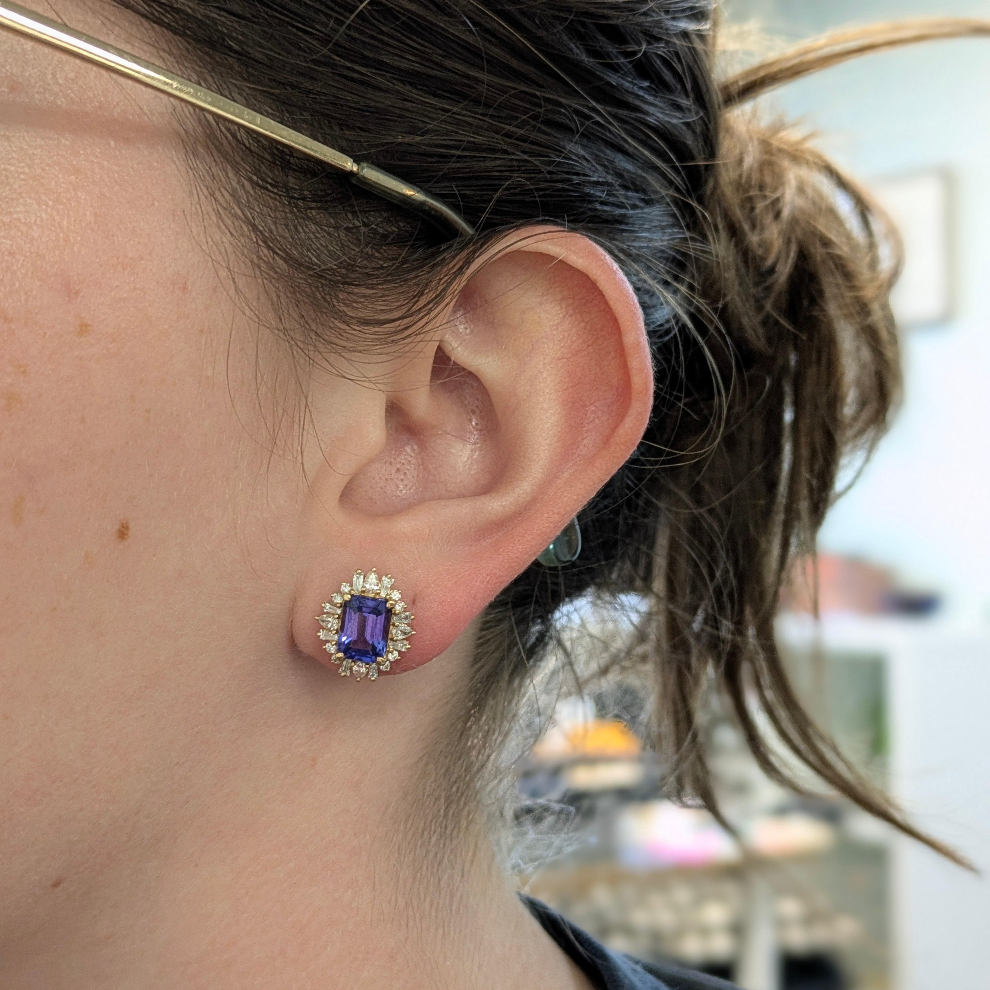 Lyra 14k Solid White Gold Tanzanite Ring W Natural Diamond Accents | Emerald, 8x6mm
